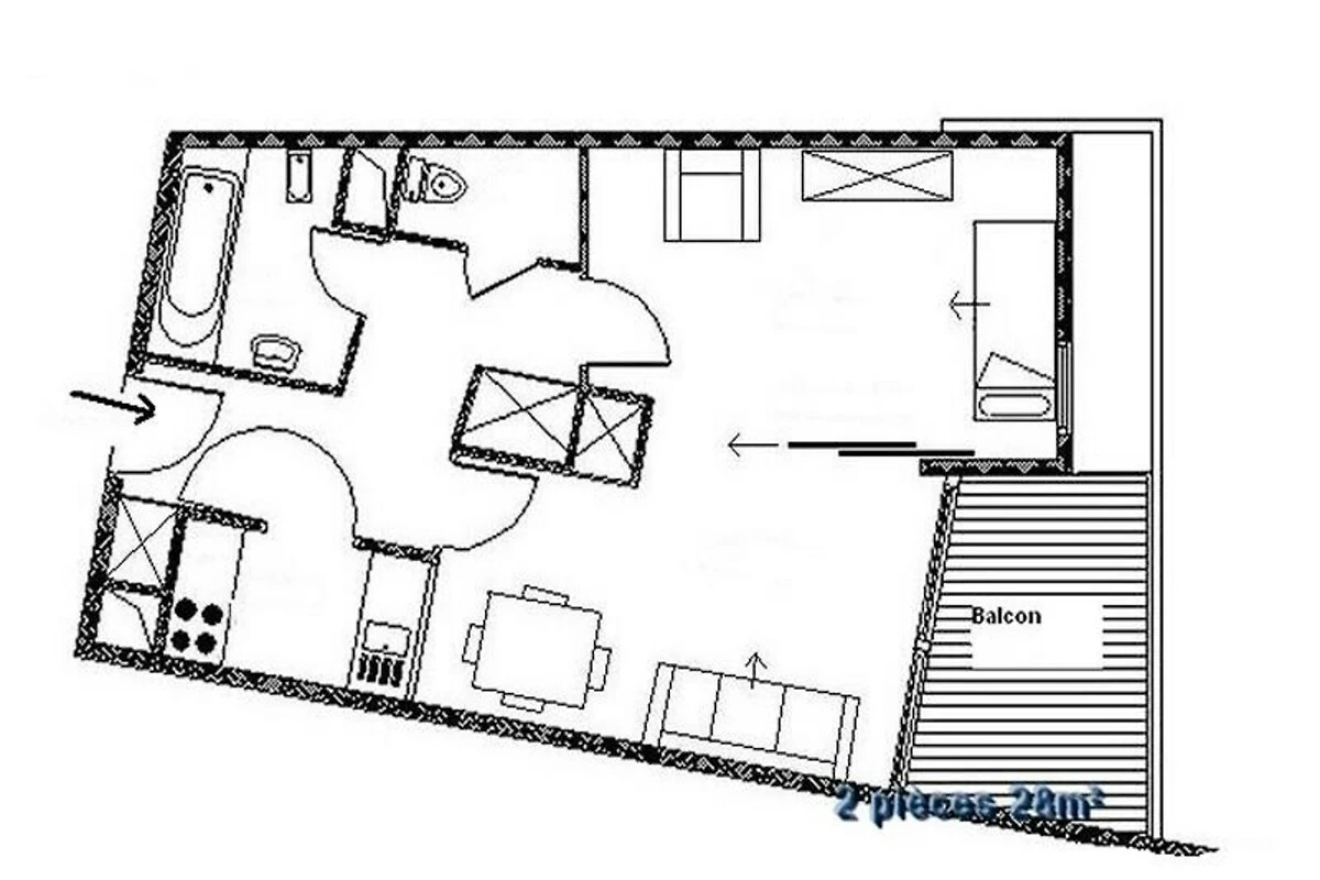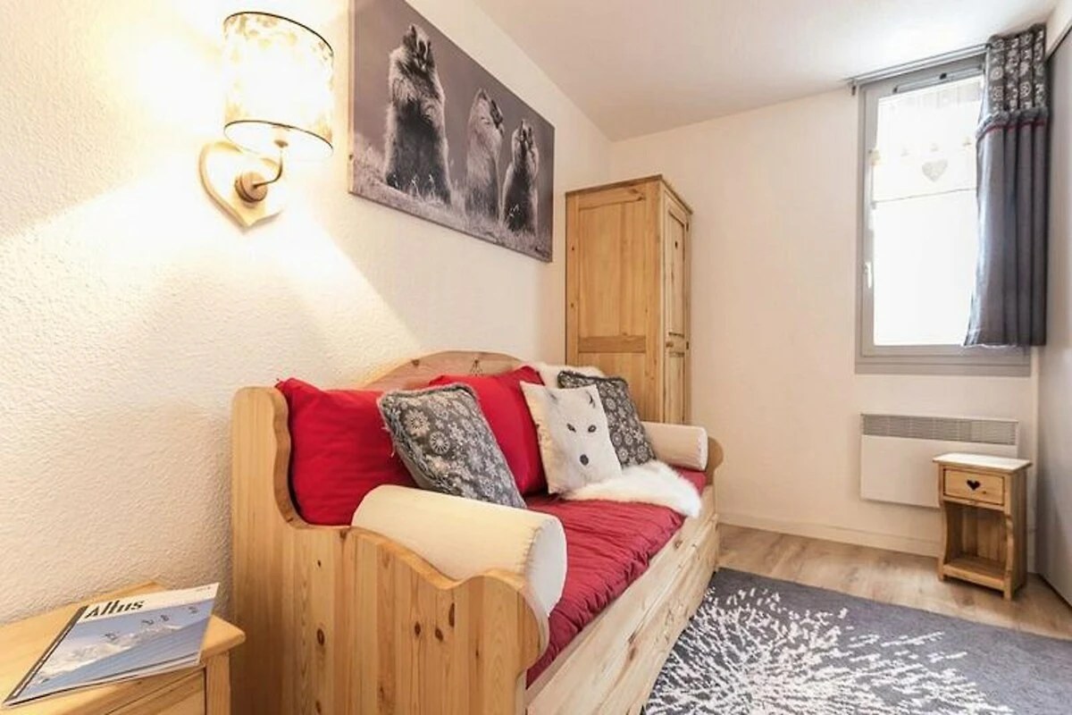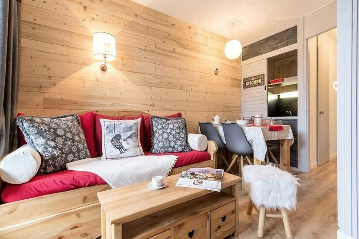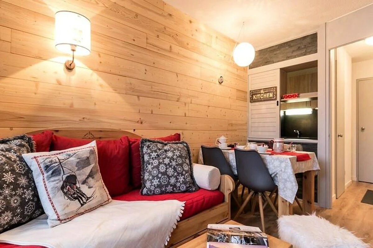 Hoch über dem lebhaften Zentrum von Les Menuires bietet dieses charmante Zweizimmer-Apartment in der Residenz Soldanelles A einen ruhigen Rückzugsort mit direktem Zugang zu den Pisten, nur 10 Meter entfernt. Stellen Sie sich vor, Sie wachen mit der frischen Alpenluft auf und treten auf Ihren Südbalkon, um den atemberaubenden Bergblick zu genießen, während Sie Ihren erlebnisreichen Tag im legendären Skigebiet Trois Vallées planen. Ob Sie nun aufregende Abfahrten oder entspannte Wanderungen suchen, diese gemütliche Oase verspricht einen unvergesslichen Aufenthalt in den französischen Alpen. Das kürzlich im warmen Bergstil renovierte Apartment erstreckt sich über 28 m² und ist durchdacht gestaltet, um bis zu vier Gäste zu beherbergen. Das Wohnzimmer verfügt über ein Schlafsofa und ein Ausziehbett, das sich in ein Doppelbett verwandeln lässt. Das durch eine Schiebetür abgetrennte Schlafzimmer bietet eine ähnliche Aufteilung für flexible Schlafmöglichkeiten. Eine voll ausgestattete Küche lädt mit Cerankochfeld, Kombi-Backofen, Geschirrspüler und sogar einem Fondue- und Raclette-Set für authentische alpine Küche zum Zubereiten herzhafter Mahlzeiten ein. Moderne Annehmlichkeiten wie ein Fernseher und ein überdachter Parkplatz erhöhen Ihren Komfort, während der nach Süden ausgerichtete Balkon der perfekte Ort zum Entspannen nach einem Tag auf der Piste ist. Die Unterkunft selbst bietet praktische Merkmale wie einen Aufzug und einen digitalen Zugangscode. Kostenloses WLAN steht Ihnen in der Lobby des Nachbargebäudes zur Verfügung. In der Nähe finden Sie kleine Geschäfte und Restaurants, und kostenlose Shuttlebusse bringen Sie bequem ins lebhafte Zentrum von La Croisette. Auch das Viertel Bruyères ist fußläufig über einen öffentlichen Aufzug und eine Fußgängerbrücke erreichbar, sodass Sie den lebendigen Charme der Gegend ganz einfach entdecken können. Ob Sie Abenteuer oder Entspannung suchen – dieses Apartment vereint Komfort, Bequemlichkeit und eine atemberaubende Aussicht und ist somit der perfekte Ort für eine Auszeit in den Bergen. Dank der erstklassigen Lage und der durchdachten Ausstattung erwartet Sie Ihr Bergurlaub.