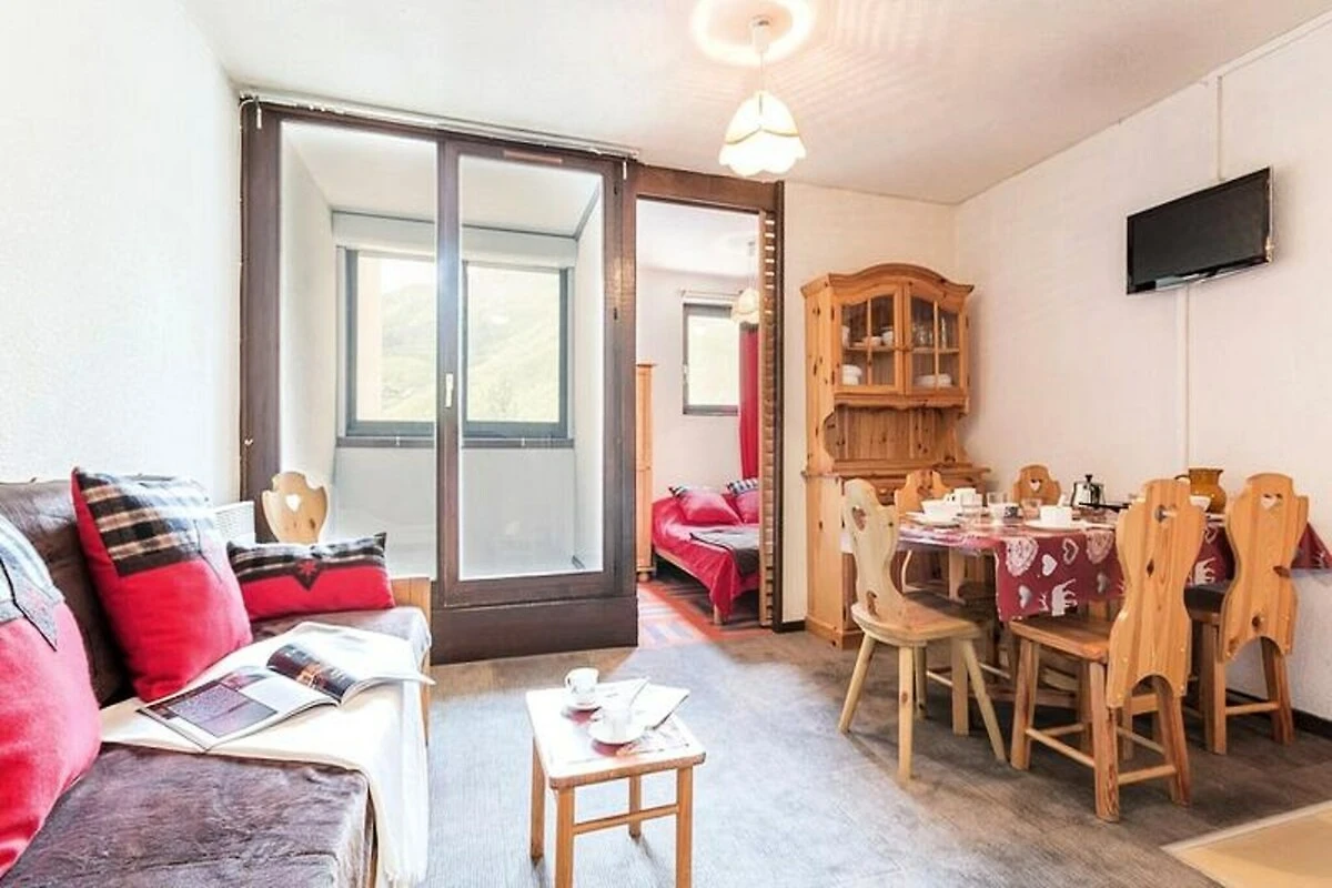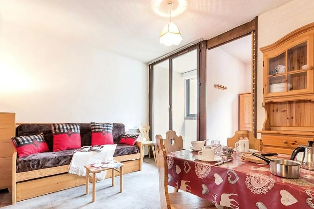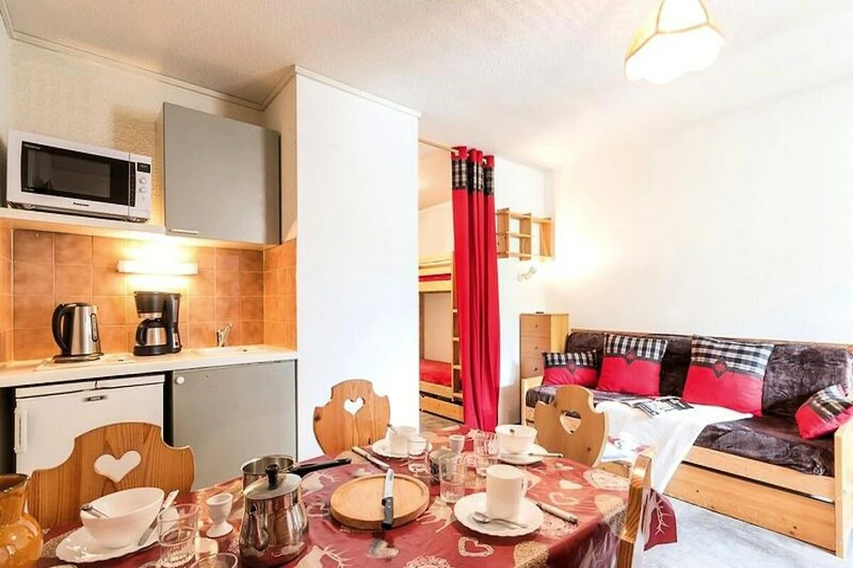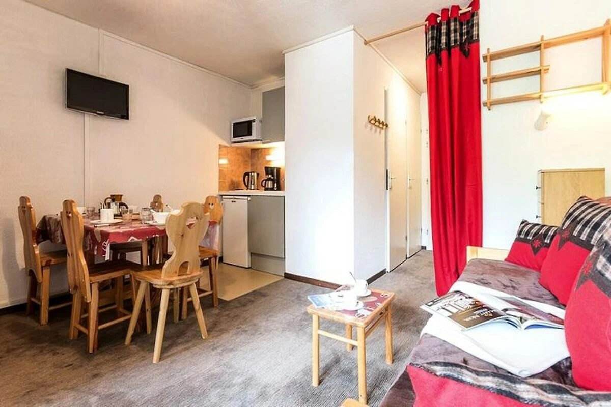 Dieses charmante 25 m² große Apartment ist durchdacht gestaltet und bietet Platz für bis zu vier Gäste. Es verfügt über ein Wohnzimmer mit Schlafsofa und Ausziehbett, ein kleines Schlafzimmer mit einem komfortablen Doppelbett, das durch eine Schiebetür abgetrennt ist, sowie einen Eingangsbereich mit zwei Einzelbetten (Etagenbetten). Die Küche ist komplett ausgestattet mit allen wichtigen Geräten, darunter Mikrowelle, Kühlschrank und Kaffeemaschine, sodass Sie sich nach einem Tag auf der Piste ganz einfach verpflegen können. Das Badezimmer bietet eine Badewanne zum Entspannen, und das separate WC sorgt für zusätzlichen Komfort. Moderne Annehmlichkeiten wie Fernseher und kostenpflichtiges WLAN garantieren einen komfortablen und vernetzten Aufenthalt.