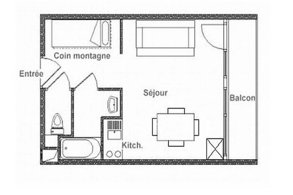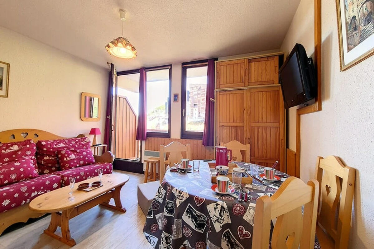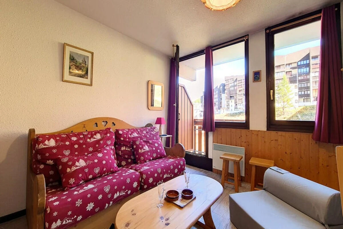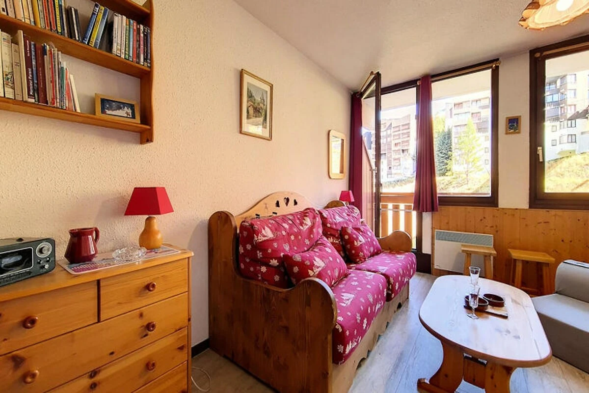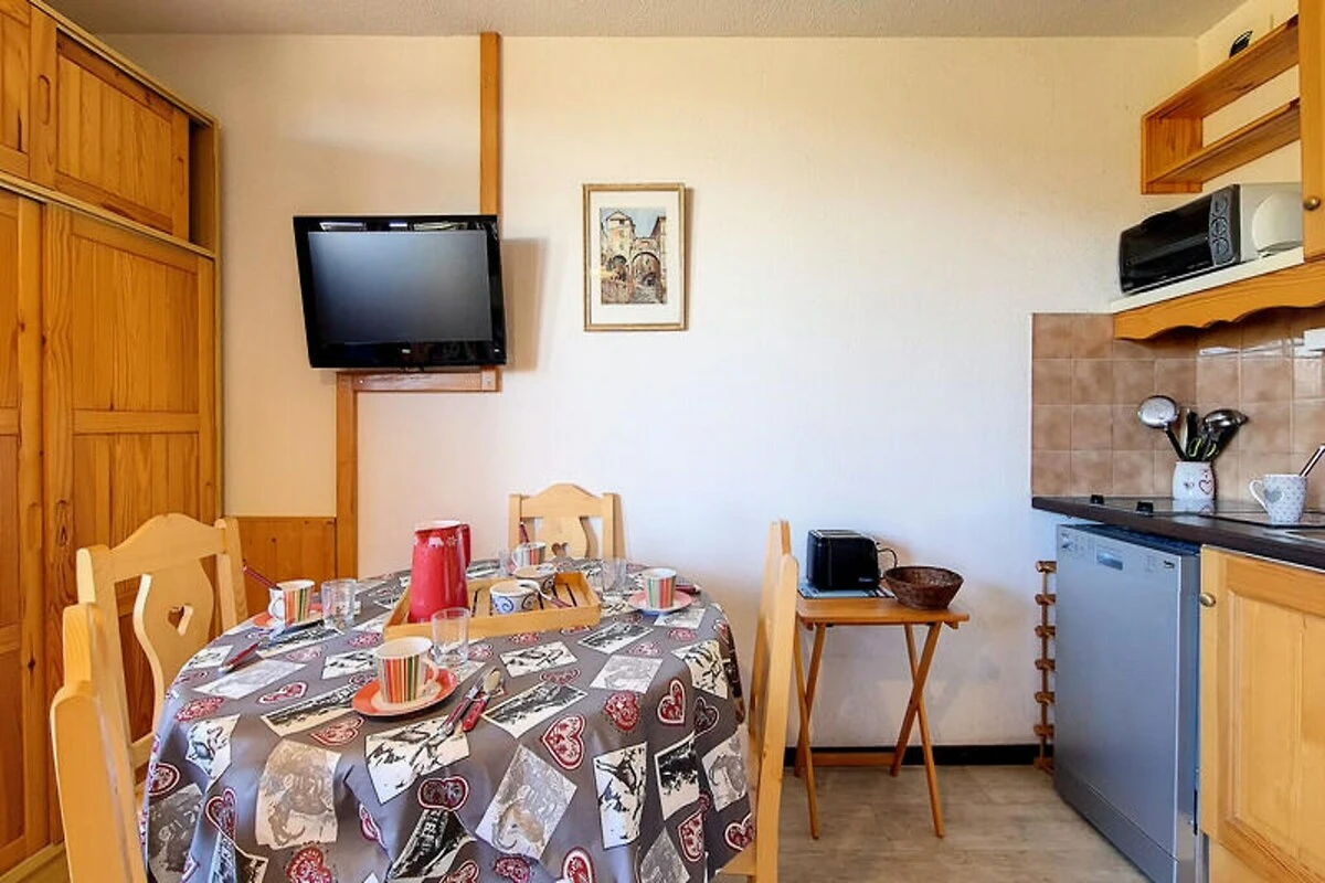 Hoch oben im Herzen der französischen Alpen, wo schneebedeckte Gipfel auf den Charme von Bergdörfern treffen, bietet dieses gemütliche Studio-Apartment in der Ski Soleil Residence einen einladenden Rückzugsort für Ihre Bergabenteuer. Die Residence liegt im Bezirk Bruyères, direkt am Fuße der Pisten, sodass Sie sowohl Wintersport als auch Sommerwanderungen mühelos genießen können. Stellen Sie sich vor, wie Sie morgens auf Ihrem nach Norden ausgerichteten Balkon Ihren Kaffee trinken und den Blick über die friedliche Alpenlandschaft schweifen lassen. Ob Sie nun aufregende Abfahrten oder erholsame Auszeiten in den Bergen suchen – diese Unterkunft verspricht einen unvergesslichen Aufenthalt. \n\nDas 23 m² große Studio ist durchdacht gestaltet und bietet Platz für bis zu vier Gäste. Das Wohnzimmer verfügt über ein bequemes Doppelschlafsofa, während eine Schlafnische mit zwei Einzelbetten zusätzlichen Platz bietet. Eine gut ausgestattete Küche mit Cerankochfeld, Minibackofen, Mikrowelle, Geschirrspüler und vielem mehr lädt zum Kochen und Genießen ein. Das Badezimmer ist mit einer entspannenden Badewanne ausgestattet, und ein separates WC sorgt für zusätzlichen Komfort. Mit Laminatboden, Fernseher, DVD-Player und kostenpflichtigem WLAN wurde an jedes Detail gedacht, um Komfort und Funktionalität zu gewährleisten. Bitte beachten Sie, dass Haustiere nicht erlaubt sind und die Etagenbetten für Kinder unter sechs Jahren ungeeignet sind. \n\nEntdecken Sie das lebendige Viertel Bruyères mit seinen zahlreichen Annehmlichkeiten für einen gelungenen Aufenthalt. Von Restaurants und Geschäften bis hin zu Kino und Wellnesscenter – alles, was Sie brauchen, ist nur wenige Schritte entfernt. Familien freuen sich über die Skischule, die Rodelbahn und den Kinderspielplatz, während Abenteurer die Pisten und Wanderwege direkt vor der Tür erkunden können. Ob Sie alpine Abenteuer oder erholsame Ruhe suchen – dieses Studio ist der perfekte Ausgangspunkt für Ihren Urlaub in den französischen Bergen.