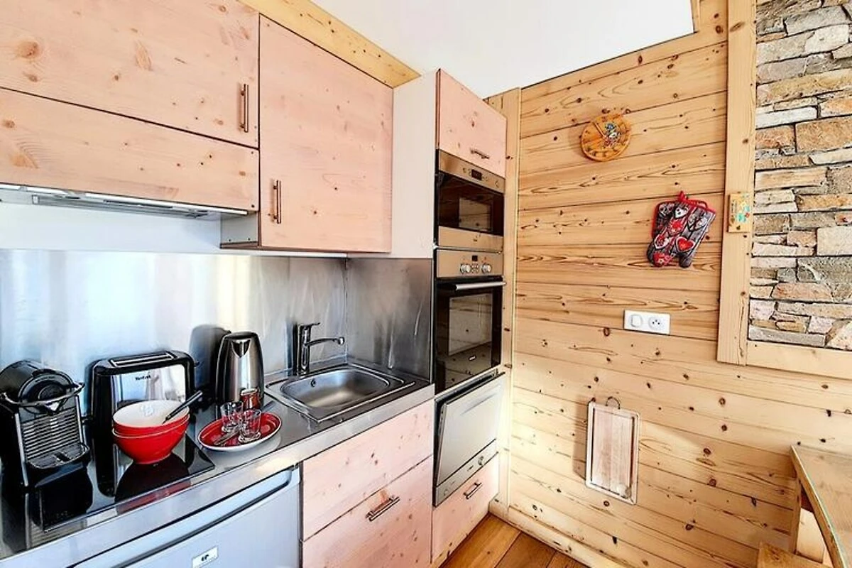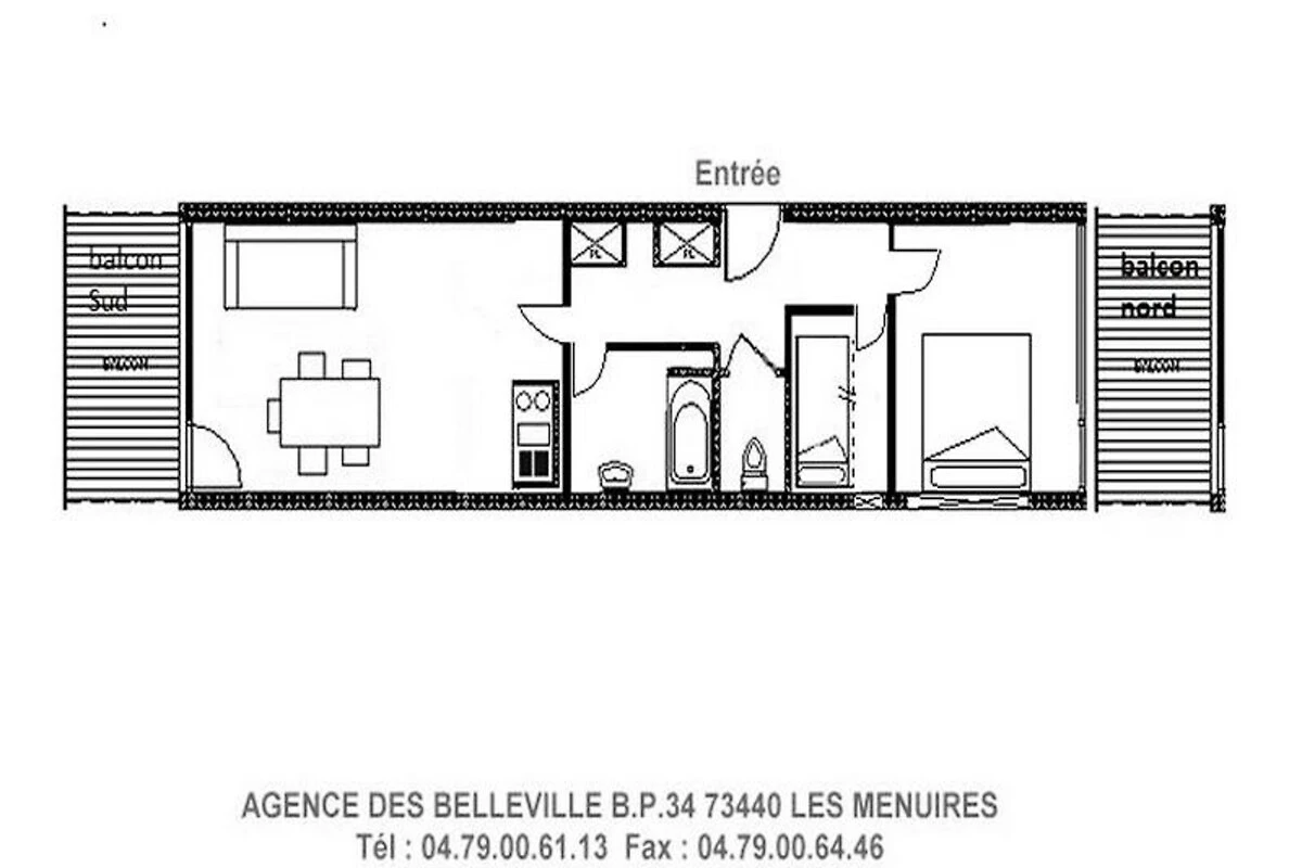 Hoch über den belebten Straßen von Les Menuires bietet dieses charmante Apartment im Gebäude Charmettes einen gemütlichen Rückzugsort für Skifahrer und Bergliebhaber. Dank der erstklassigen Lage, nur 50 Meter von den Pisten entfernt, können Sie direkt vor die Tür treten und in die verschneite Traumlandschaft der Trois Vallées eintauchen, einem der größten Skigebiete der Welt. Der nach Süden ausgerichtete Balkon bietet einen atemberaubenden Blick auf die Pisten und lädt dazu ein, die alpine Schönheit bei einer Tasse Kaffee zu genießen, während der nach Norden ausgerichtete Balkon den Blick auf den lebhaften Ort freigibt und Sie mit seiner pulsierenden Atmosphäre verbindet. \n\nDas Apartment wurde liebevoll renoviert und vereint modernen Komfort mit alpinem Charme. Die 36 m² große Wohnung ist ideal für bis zu vier Gäste und verfügt über ein Schlafzimmer mit Doppelbett und eine Nische mit zwei Einzelbetten (Etagenbetten). Das helle und einladende Wohnzimmer ist perfekt zum Entspannen nach einem Tag auf der Piste. Die voll ausgestattete Küche bietet alles, was Sie für die Zubereitung köstlicher Mahlzeiten benötigen, vom Backofen und der Mikrowelle bis hin zum Geschirrspüler und der Kaffeemaschine. Ein modernes Duschbad mit Waschmaschine sorgt für zusätzlichen Komfort, während die elektrische Heizung an kühlen Abenden für wohlige Wärme sorgt. Familien werden die Nähe zur Kindertagesstätte und zum Skigarten direkt am Fuße des Gebäudes zu schätzen wissen. Die Einkaufspassage La Croisette mit ihren Geschäften, Restaurants und Après-Ski-Angeboten ist nur 100 Meter entfernt. Dank einer Bushaltestelle nur 50 Meter von der Unterkunft und dem Busbahnhof, der in nur zwei Minuten erreichbar ist, lässt sich die Umgebung mühelos erkunden. Ob Sie aufregende Skiabenteuer oder erholsame Bergausflüge suchen – dieses Apartment ist Ihr Tor zu unvergesslichen Momenten im Herzen von Les Menuires. Genießen Sie die atemberaubende Aussicht und die komfortable Ausstattung, die Ihren Aufenthalt in den Alpen zu einem ganz besonderen Erlebnis machen.