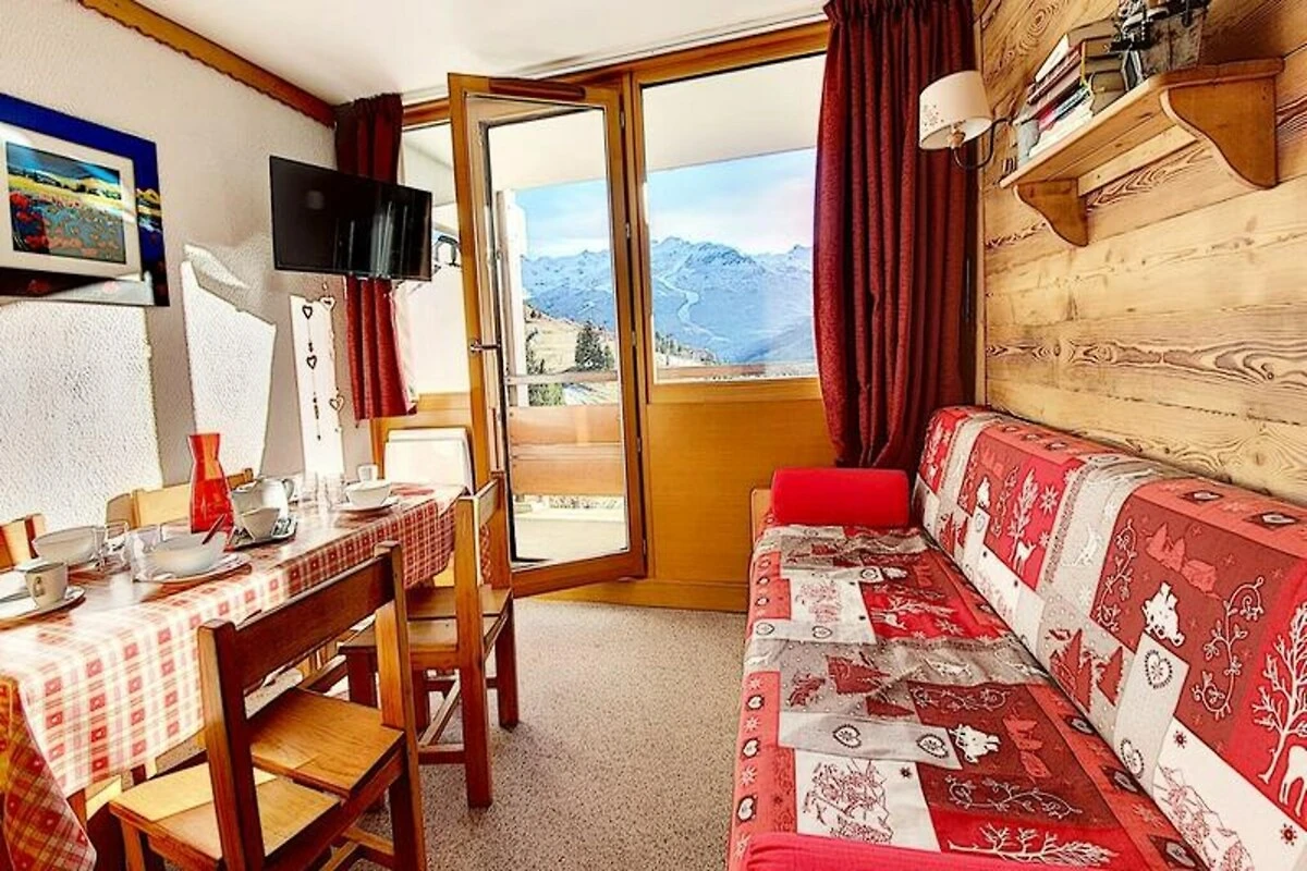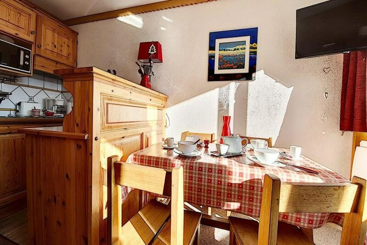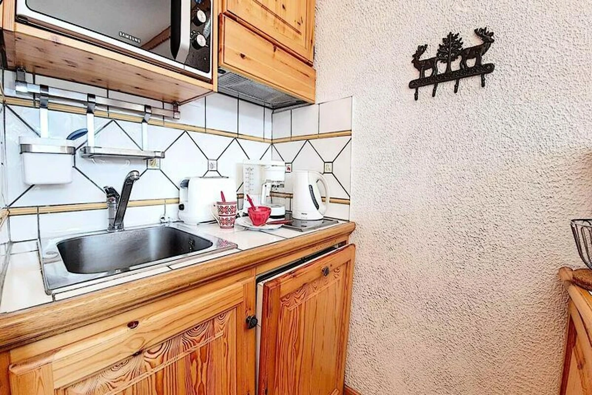 Hoch über dem pulsierenden Herzen des Ferienortes bietet dieses charmante Studio-Apartment einen gemütlichen Rückzugsort für Reisende, die Komfort und alpines Flair gleichermaßen schätzen. Gelegen im renommierten Charmettes-Gebäude, nur 100 Meter von der Einkaufspassage La Croisette entfernt, bietet es Ihnen bequemen Zugang zu allem, was Sie für einen unvergesslichen Aufenthalt benötigen. Ob Sie nun die Pisten oder die ruhige Bergatmosphäre genießen möchten – diese Unterkunft ist perfekt gelegen, um Ihren Urlaub unvergesslich zu machen. Vom nach Süden ausgerichteten Balkon im fünften Stock können Sie die Sonne genießen und den malerischen Ausblick bewundern, der die Essenz der französischen Alpen einfängt. Das Apartment ist für bis zu drei Gäste ausgelegt und verfügt über eine clevere Raumaufteilung mit einer Schlafnische und einem Wohnzimmer mit komfortablen Betten. Die voll ausgestattete Küche bietet moderne Geräte wie Induktionskochfeld, Backofen mit Grillfunktion, Kühlschrank, Geschirrspüler, Mikrowelle und sogar eine Waschmaschine – ideal, um nach einem erlebnisreichen Tag leckere Mahlzeiten zuzubereiten. Das Badezimmer mit Badewanne und WC sorgt für Entspannung und Komfort. Zusätzliche Annehmlichkeiten wie ein Fernseher und kostenpflichtiges WLAN (je nach Verfügbarkeit) tragen zum Komfort Ihres Aufenthalts bei. Skischränke im Untergeschoss erleichtern die Vorbereitung auf die Piste, während die elektrische Heizung die Räume in Winternächten warm und gemütlich hält.\n\nNur 50 Meter von den Pisten entfernt ist diese Unterkunft ein Traum für Skibegeisterte. Familien schätzen die Nähe zur Kindertagesstätte und zum Schneegarten, die eine perfekte Balance zwischen Spaß und Entspannung ermöglichen. Eine Bushaltestelle befindet sich nur 50 Meter entfernt, und der Busbahnhof ist in nur zwei Minuten erreichbar – so ist eine bequeme Fortbewegung im Skigebiet garantiert. Ob Sie die lebhafte Flaniermeile La Croisette erkunden oder die unberührten Pisten hinabgleiten – alles ist in greifbarer Nähe.\n\nMit seiner erstklassigen Lage, den durchdachten Annehmlichkeiten und der einladenden Atmosphäre ist dieses Studio-Apartment der perfekte Ausgangspunkt für Ihren alpinen Urlaub. Erleben Sie die Magie der Berge und schaffen Sie unvergessliche Erinnerungen in diesem charmanten Refugium.