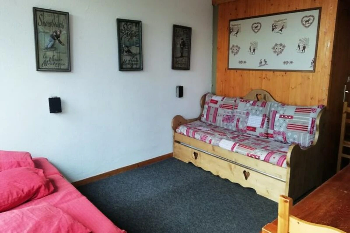 Das 33 m² große Studio befindet sich im dritten Stock eines traditionellen Hauses und bietet bequem Platz für bis zu vier Gäste. Der Wohnbereich verfügt über ein Schlafsofa, während eine Schlafnische im Eingangsbereich mit Etagenbetten ausgestattet ist – ideal für Familien oder kleine Gruppen. Die voll ausgestattete Küche bietet ein Cerankochfeld, einen Backofen, eine Mikrowelle, einen Geschirrspüler und einen Kühlschrank, sodass Sie nach einem erlebnisreichen Tag alles für die Zubereitung leckerer Mahlzeiten haben. Zur weiteren Ausstattung gehören ein Fernseher, eine Waschmaschine und ein Skischrank. Kostenloses WLAN sorgt für beste Verbindung, und Haustiere sind gegen eine zusätzliche Gebühr willkommen. Hier fühlen Sie sich wie zu Hause. Direkt am Fuße der Pisten und Skilifte gelegen, bietet diese Residenz unvergleichlichen Zugang zum Skigebiet Paradiski, einem der größten der Welt. Im Sommer verwandeln sich die umliegenden Wanderwege und Almwiesen in ein Paradies für Wanderer und Naturliebhaber. Das Ortszentrum mit seinen zahlreichen Geschäften und Restaurants ist nur wenige Schritte entfernt, sodass Sie alles Notwendige in wenigen Minuten erreichen. Ob Sie Abenteuer auf der Piste suchen oder inmitten atemberaubender Landschaft entspannen möchten – dieses Studio ist der ideale Ausgangspunkt für einen unvergesslichen Aufenthalt in den Alpen. Lassen Sie sich vom Zauber von Arc 1600 verzaubern und schaffen Sie Erinnerungen, die ein Leben lang halten.