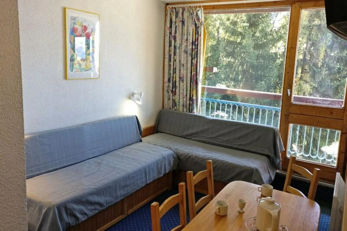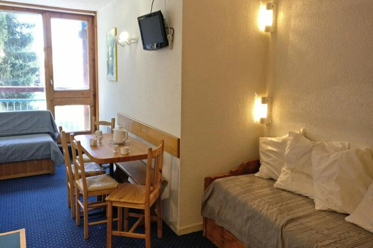 Hoch über dem geschäftigen Einkaufszentrum Charvet bietet diese charmante Studio-Hütte einen gemütlichen Rückzugsort für alle, die ein Ski-in/Ski-out-Erlebnis im Herzen der französischen Alpen suchen. Stellen Sie sich vor, wie Sie mit der frischen Bergluft aufwachen, auf Ihren nach Südwesten ausgerichteten Balkon treten und die lebhafte Atmosphäre des Ortes genießen oder Ihren Blick nach Nordosten auf die ruhigen Tannen und den majestätischen Mont Blanc schweifen lassen. Ob Sie nun die unberührten Pisten hinunterfahren oder einfach nur das alpine Ambiente genießen möchten – diese Unterkunft bringt Sie mitten hinein. Die 24 m² große Studio-Hütte ist für bis zu vier Gäste ausgelegt und durchdacht eingerichtet, um maximalen Komfort und Funktionalität zu gewährleisten. Der Wohnbereich verfügt über ein Schlafsofa und ein Ausziehbett für zwei Personen sowie zwei weitere 80 cm breite Schlafsofas, die für erholsame Nächte für alle sorgen. Die gut ausgestattete Küchenzeile umfasst ein elektrisches Kochfeld, einen Mini-Backofen, eine Mikrowelle, einen Geschirrspüler, einen Kühlschrank, einen Toaster, einen Wasserkocher und eine Filterkaffeemaschine – perfekt, um nach einem Tag auf der Piste herzhafte Mahlzeiten zuzubereiten. Das Badezimmer, praktischerweise direkt am Eingang gelegen, erhöht den Komfort dieser Unterkunft. \n\nTreten Sie vor die Tür und Sie befinden sich am Fuße der Pisten und Geschäfte. Die Haltestelle des Shuttlebusses zwischen den Resorts in Charvet ist bequem zu erreichen. Überdachte und offene Parkplätze stehen in der Nähe zur Verfügung und sorgen für einen unkomplizierten Aufenthalt. Im Winter verwandelt sich das Resort in ein Skiparadies, während der Sommer atemberaubende Wanderwege und Bergabenteuer bietet. Kostenloses WLAN im gesamten Resort sorgt dafür, dass Sie immer in Verbindung bleiben, und umweltfreundliche Bettwäsche und Reinigungsdienste tragen zu einem nachhaltigen Aufenthalt bei. \n\nOb Sie der Nervenkitzel des Skifahrens, die Schönheit des Mont Blanc oder die zentrale Lage lockt – diese Studio-Hütte bietet Ihnen einen unvergesslichen alpinen Urlaub. Nutzen Sie sie als Ausgangspunkt, um die bezaubernde Landschaft von Les Arcs zu erkunden.