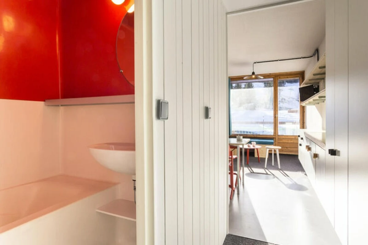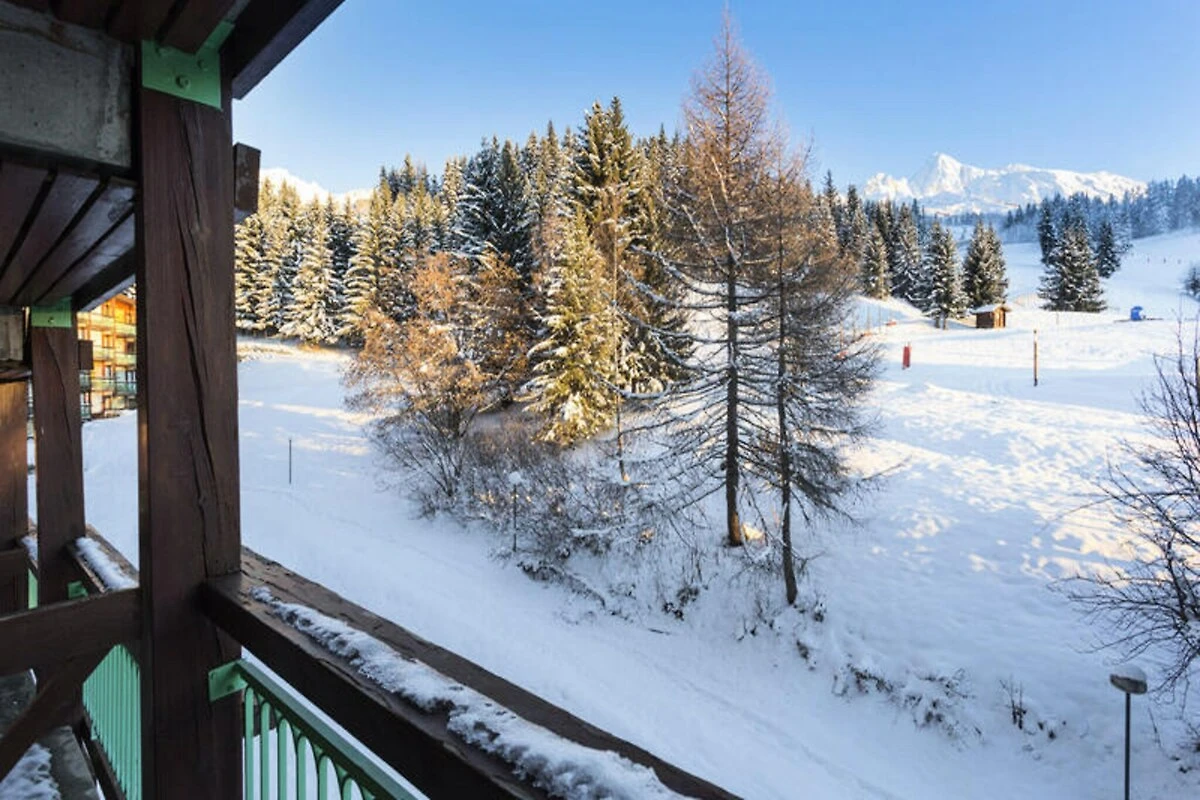 Hoch über dem charmanten Einkaufszentrum Charvet bietet dieses gemütliche Bergstudio den perfekten Rückzugsort für Skifahrer und Naturliebhaber. Dank direktem Zugang zur Piste und atemberaubendem Blick auf den Mont Blanc vereint diese Unterkunft Komfort mit alpinem Charme und ist somit die ideale Wahl für Ihren nächsten Urlaub. Stellen Sie sich vor, Sie wachen auf und genießen den friedlichen Anblick schneebedeckter Hänge oder üppiger Tannen, treten auf Ihren Südbalkon, atmen die frische Bergluft ein und sind nur wenige Schritte von der Piste entfernt. \n\nDieses kürzlich renovierte, 27 m² große Studio ist durchdacht gestaltet und bietet Platz für bis zu fünf Gäste. Die vom Bergstil inspirierte Einrichtung schafft eine warme und einladende Atmosphäre, während die funktionale Raumaufteilung Komfort und Praktikabilität garantiert. Das Studio verfügt über eine gemütliche Ecke mit zwei Etagenbetten und einem Ausziehbett sowie ein Wohnzimmer mit Schlafsofa und einem weiteren Ausziehbett, das sich in ein Doppelbett verwandeln lässt. Eine gut ausgestattete Küchenzeile mit Cerankochfeld, Mikrowellen-Kombinationsgerät, Kühl-/Gefrierschrank, Geschirrspüler, Wasserkocher, Kaffeemaschine und Toaster erleichtert die Zubereitung von Mahlzeiten nach einem erlebnisreichen Tag. Das moderne Badezimmer verfügt über ein WC. Umweltfreundliche Bettwäsche und eine Endreinigung sind inklusive.\n\nDie Unterkunft liegt direkt an den Pisten und in der Nähe des lebhaften Einkaufszentrums Charvet und bietet somit bequemen Zugang zu Geschäften, Restaurants und dem Kinderclub ESF Skimômes. Die nahegelegene Shuttle-Haltestelle sorgt für bequemes Reisen innerhalb der Region. Für Gäste, die mit dem Auto anreisen, stehen überdachte und offene Parkplätze zur Verfügung. Ob Sie zum Skifahren, Wandern oder einfach nur zum Genießen der alpinen Atmosphäre hier sind – dieses Studio ist der perfekte Ausgangspunkt für unvergessliche Bergerlebnisse. Haustiere sind gegen eine zusätzliche Gebühr willkommen. Kostenloses WLAN im Resort sorgt dafür, dass Sie während Ihres gesamten Aufenthalts in Verbindung bleiben. Erleben Sie die Schönheit der französischen Alpen und machen Sie dieses charmante Studio zu Ihrem zweiten Zuhause.