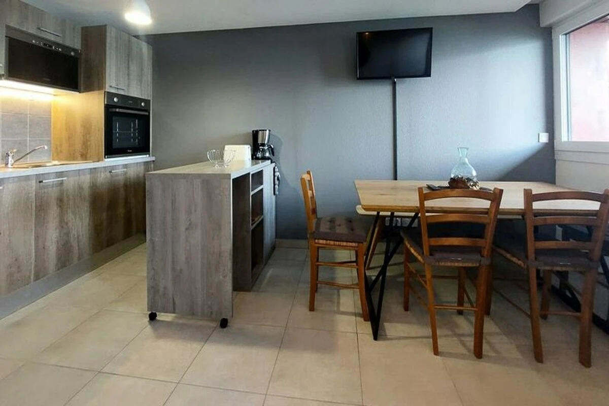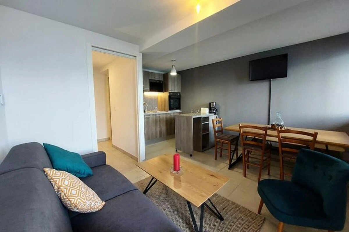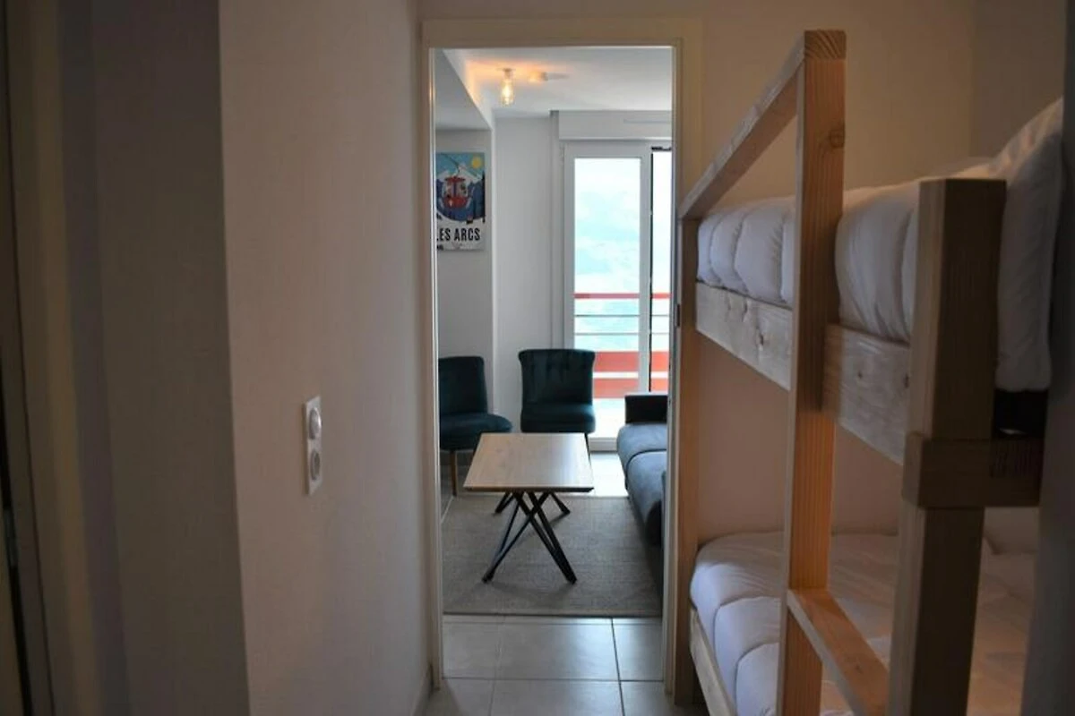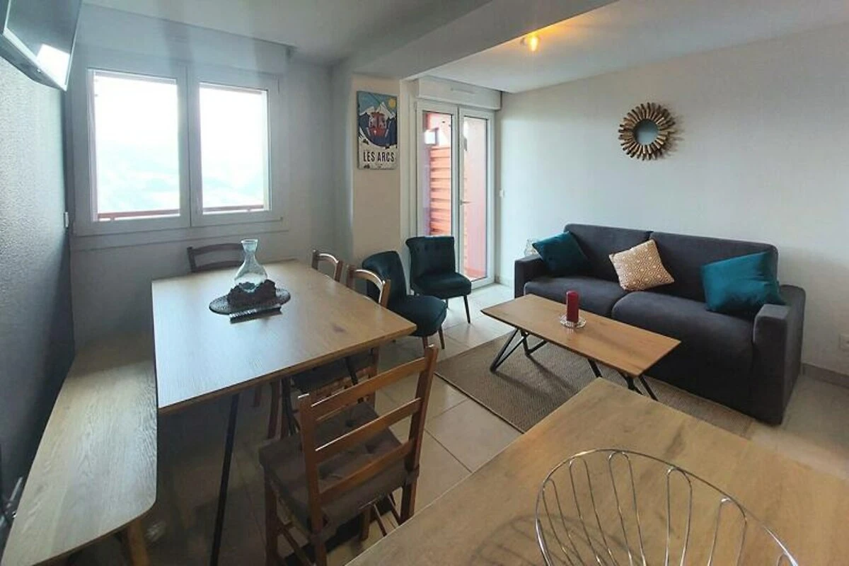 Am Rande des charmanten Dorfes Charvet in Les Arcs gelegen, bietet dieses gemütliche Studio einen ruhigen Rückzugsort in den Alpen mit atemberaubendem Blick auf den Mont Blanc und das umliegende Tal. Ob Sie Abenteuer auf der Piste oder eine friedliche Auszeit suchen – diese Unterkunft vereint Komfort und Bequemlichkeit im Herzen der französischen Alpen. Der nach Westen ausgerichtete Balkon lädt zum Entspannen bei einer Tasse Kaffee ein, während die Sonne hinter den majestätischen Gipfeln untergeht – der perfekte Moment, um die Ruhe des Berglebens zu genießen. Das Studio ist für bis zu vier Gäste ausgelegt und verfügt über einen gut ausgestatteten Wohnbereich mit Schlafsofa und Schlafnische mit Etagenbetten. Es ist ideal für Paare oder kleine Familien. Die offene Küche ist mit modernen Geräten ausgestattet, darunter ein Cerankochfeld, ein Backofen und eine Mikrowelle, sodass Sie nach einem Tag in der Natur leckere Mahlzeiten zubereiten können. Das Duschbad ist kompakt, aber funktional. Die Unterkunft ist durchdacht gestaltet, um Ihnen einen komfortablen Aufenthalt zu ermöglichen, inklusive umweltfreundlicher Bettwäsche und zusätzlichem Reinigungsservice. Der Zugang zu den Pisten ist mühelos: Ein kostenloser Shuttle-Service oder ein nur 8-minütiger Spaziergang verbinden Sie mit dem lebhaften Ferienort. Für Winterurlauber stehen Skischließfächer und gebührenpflichtige Parkplätze zur Verfügung, sodass Ihr Aufenthalt unkompliziert ist. Im Sommer verwandelt sich die Region in ein Paradies für Wanderer und Naturliebhaber mit Wanderwegen, die zu atemberaubenden Aussichten und Almwiesen führen. Ob Sie zum Skifahren, Wandern oder einfach nur zum Entspannen kommen möchten – dieses Studio ist der ideale Ausgangspunkt für unvergessliche alpine Abenteuer. Lassen Sie sich von der Schönheit des Mont Blanc und dem Charme von Les Arcs zu Ihrem nächsten Bergurlaub inspirieren.