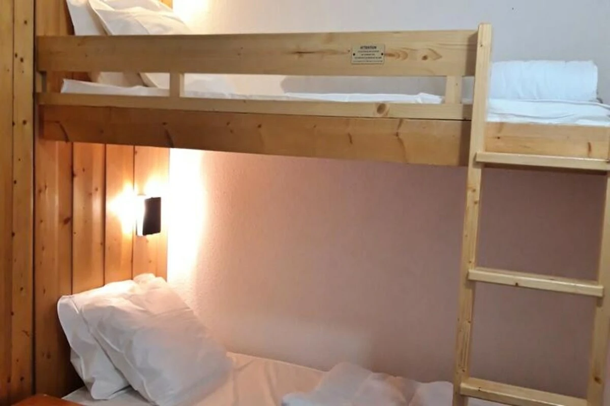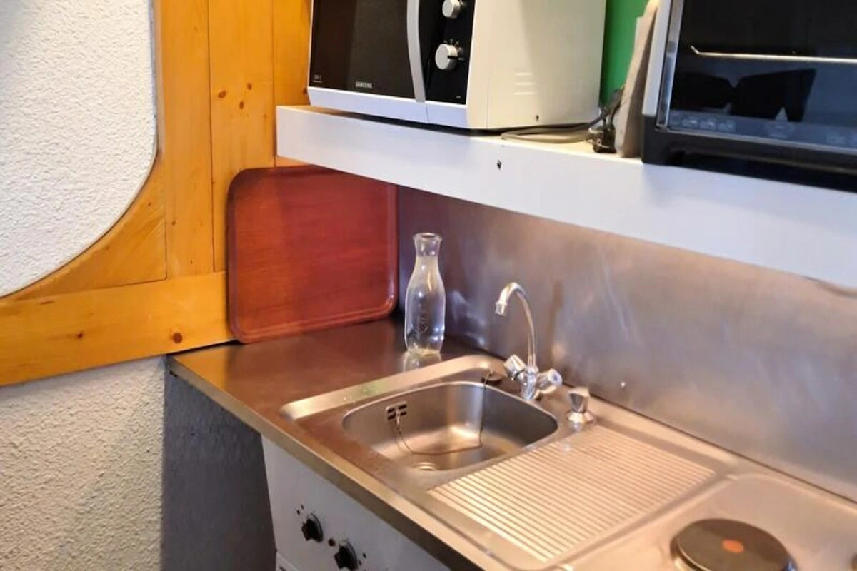 Die 30 m² große Studio-Hütte bietet bequem Platz für bis zu fünf Gäste und ist durchdacht eingerichtet mit einer Schlafnische mit Etagenbetten und einem Ausziehbett sowie einem Wohnbereich mit zwei Einzelbetten. Die Küchenzeile ist komplett mit modernen Geräten ausgestattet, darunter Geschirrspüler, Mikrowelle und Kaffeemaschine, sodass Sie nach einem aktiven Tag alles haben, um sich eine leckere Mahlzeit zuzubereiten. Der gemütliche Wohnbereich mit Fernseher und kostenlosem WLAN lädt zum Entspannen und Austauschen von Ihren Erlebnissen in den Bergen ein.
