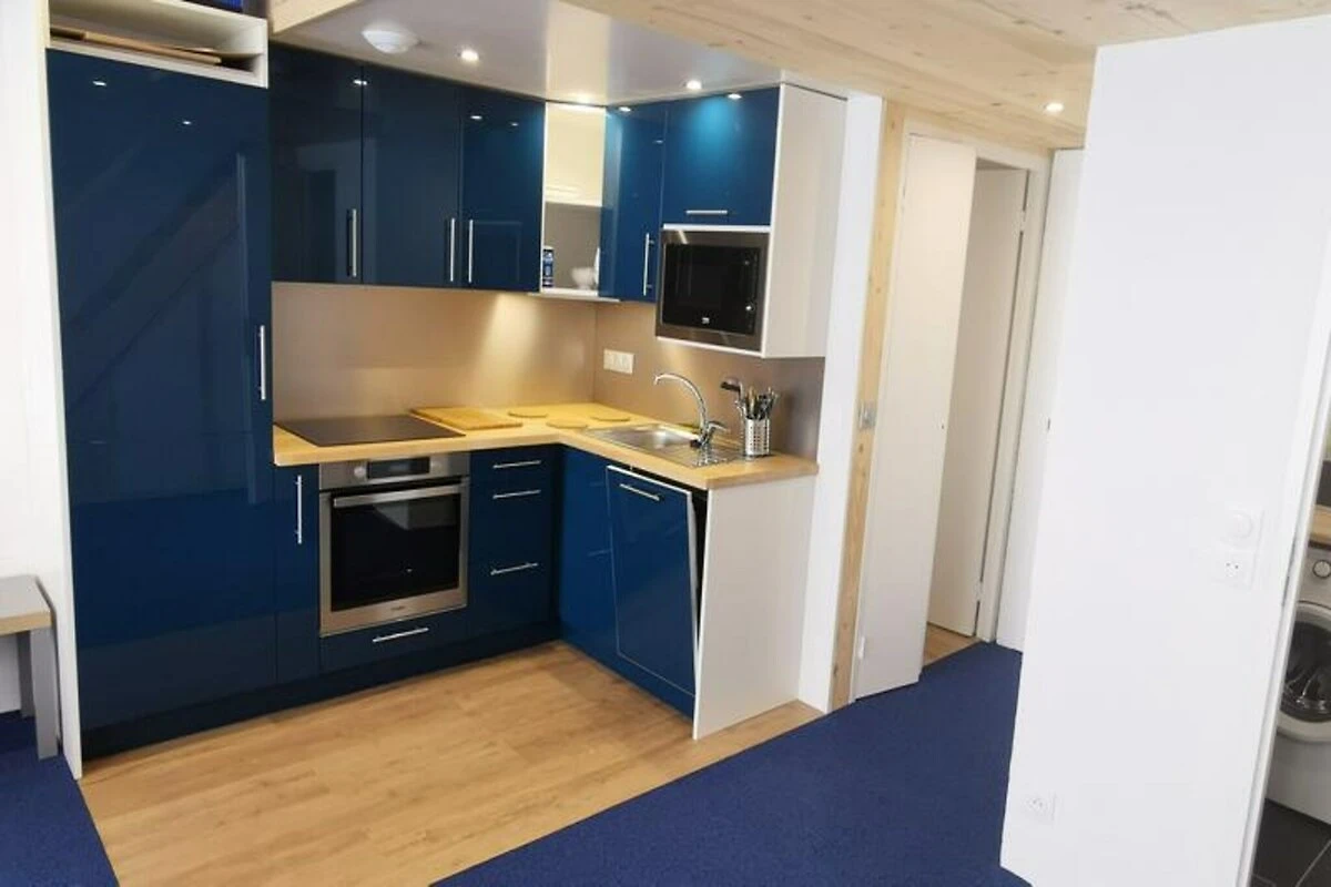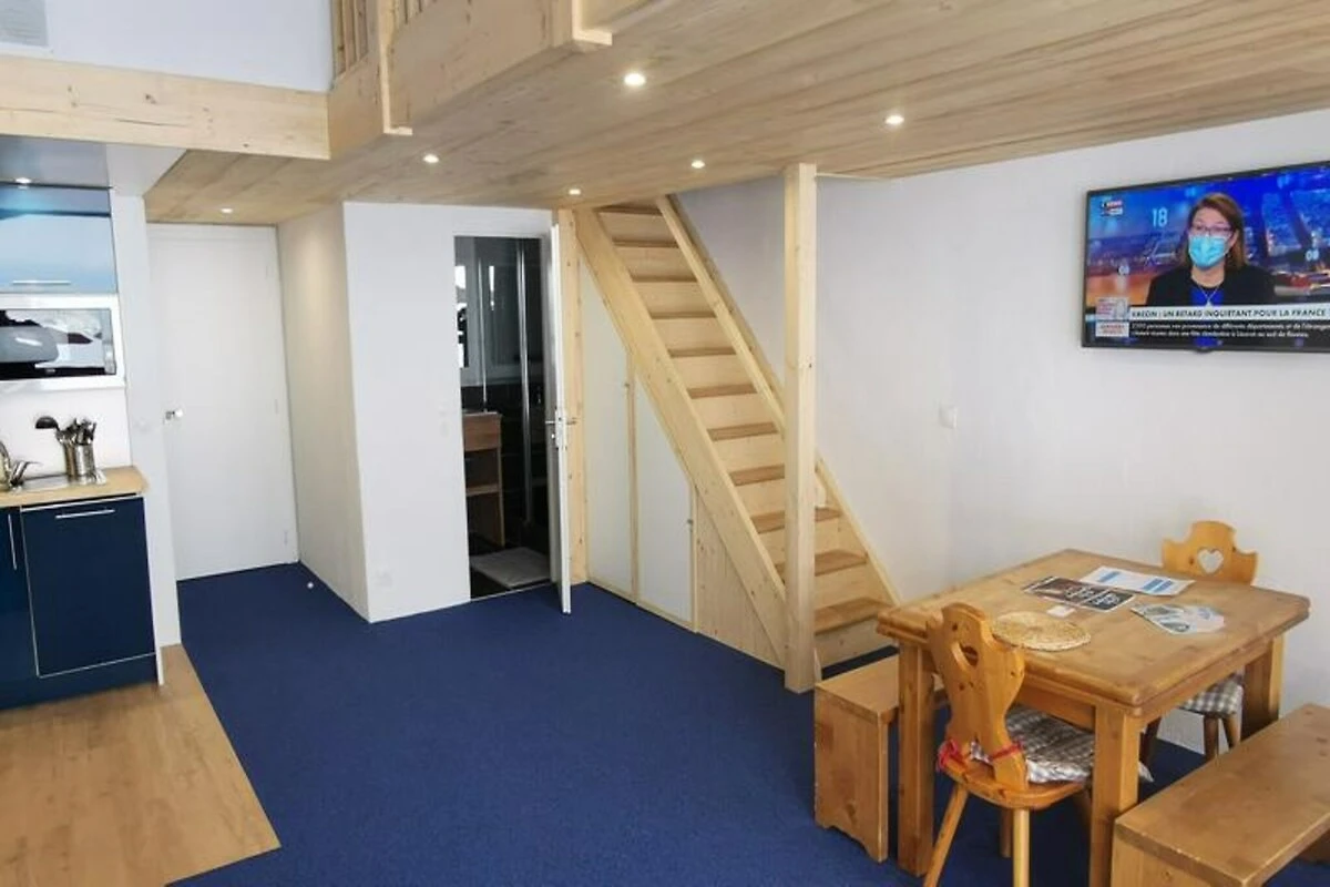 Hoch über dem lebhaften Einkaufszentrum Village des Villards bietet dieses charmante Apartment in der Residenz Tournavelles 2 eine einzigartige Kombination aus alpinem Komfort und praktischer Lage im Herzen von Les Arcs 1800. Stellen Sie sich vor, wie Sie morgens von der sanften Morgensonne auf den schneebedeckten Pisten geweckt werden oder den atemberaubenden Sonnenuntergang über dem Tal von Ihrem nach Südwesten ausgerichteten Balkon aus genießen. Ob Sie Winterabenteuer oder Sommerurlaub planen – dank der Lage mit direktem Zugang zur Piste und der Haltestelle des Shuttlebusses zwischen den Skigebieten sind Sie mittendrin. Das liebevoll renovierte Apartment erstreckt sich über 33 m² und bietet Platz für bis zu sechs Gäste. Auf den gemütlichen Galerien befinden sich zwei Einzelbetten und ein Doppelbett, während das Wohnzimmer mit einem bequemen Schlafsofa ausgestattet ist. Die voll ausgestattete Küche verfügt über Induktionskochfeld, Backofen, Mikrowelle, Kühlschrank und Geschirrspüler – ideal, um nach einem Tag auf der Piste oder den Wanderwegen Mahlzeiten zuzubereiten. Moderne Annehmlichkeiten wie Flachbildfernseher, kostenloses WLAN und Waschmaschine sorgen für einen entspannten Aufenthalt, während das separate WC und Duschbad zusätzlichen Komfort bieten. \n\nEntdecken Sie die lebendige Atmosphäre von Les Arcs 1800. Von pulsierenden Bars und Nachtclubs bis hin zu charmanten Geschäften und Restaurants – alles, was Sie brauchen, ist bequem zu Fuß erreichbar. Im Winter locken die Pisten mit unzähligen Skimöglichkeiten, während sich die Gegend im Sommer in ein Paradies zum Wandern, Radfahren und Paragliding verwandelt. Die umweltfreundliche Bettwäsche und der optionale Reinigungsservice tragen zu einem angenehmen Aufenthalt bei und garantieren ein reibungsloses Erlebnis. \n\nOb Sie aufregende alpine Abenteuer oder ruhige Momente inmitten atemberaubender Landschaften suchen – diese Unterkunft ist Ihr Tor zu unvergesslichen Erinnerungen in den französischen Alpen.