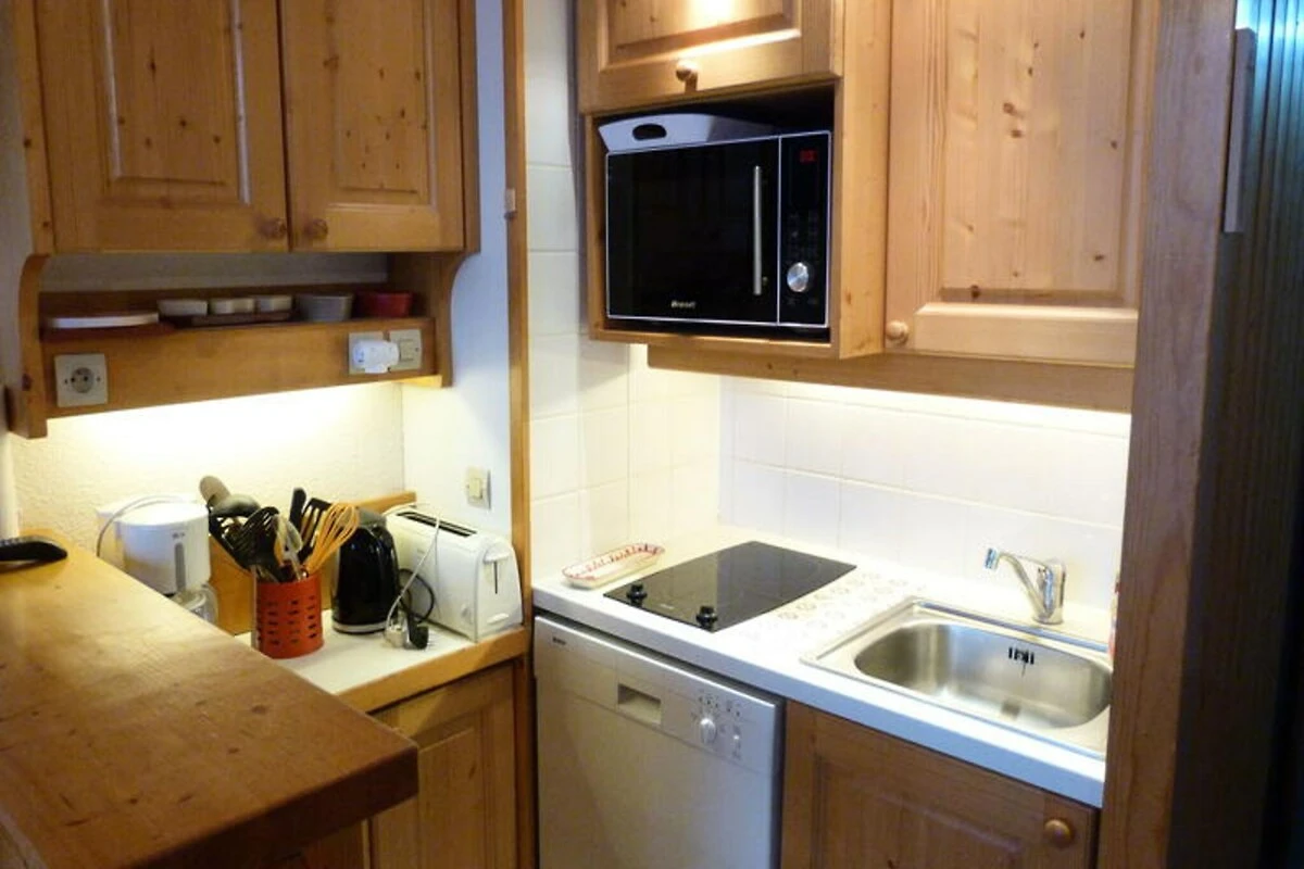 Mitten im malerischen Dorf Charmettoger bietet dieses gemütliche Maisonette-Apartment einen ruhigen Rückzugsort in den Alpen mit atemberaubendem Blick auf den Mont Blanc. Nur 2 Minuten mit der Piste Charmettoger und 3 Gehminuten vom Transarc-Skilift entfernt, ist diese Unterkunft ideal für Wintersportler und Sommerurlauber. Die Umgebung versprüht den Charme der französischen Alpen und lädt zum Eintauchen in ihre natürliche Schönheit und lebendige Atmosphäre ein. Das 35 m² große, durchdacht gestaltete Apartment bietet bequem Platz für bis zu fünf Gäste. Das Wohnzimmer verfügt über ein Schlafsofa für zwei Personen, während die Galerie ein Doppelbett und eine Schlafnische mit Ausziehbett bietet – ideal für Familien oder kleine Gruppen. Die offene Küche ist mit modernen Geräten ausgestattet, darunter eine Mikrowelle mit Backofenfunktion, ein Kühlschrank, ein Toaster, ein Wasserkocher, eine Kaffeemaschine und ein Geschirrspüler. So haben Sie alles, was Sie für die Zubereitung köstlicher Mahlzeiten benötigen. Nach einem Tag auf der Piste oder beim Wandern können Sie im gemütlichen Wohnbereich mit Fernseher und WLAN entspannen oder den atemberaubenden Bergblick von Ihrem nach Nordosten ausgerichteten Balkon genießen. Komfort liegt direkt vor Ihrer Tür: Der überdachte Parkplatz des Charmettoger ist nur 50 Meter entfernt, und eine nahegelegene Shuttle-Haltestelle bietet ganzjährig kostenlosen Transport. Eine Bäckerei erreichen Sie in nur 3 Gehminuten, während der nächste Supermarkt und die ESF-Skischule im lebhaften Dorf Villards in nur 7 Minuten zu Fuß erreichbar sind. Touristinformation und Ärztezentrum sind bequem in 10 Minuten zu Fuß oder mit einer kurzen Shuttle-Fahrt erreichbar.