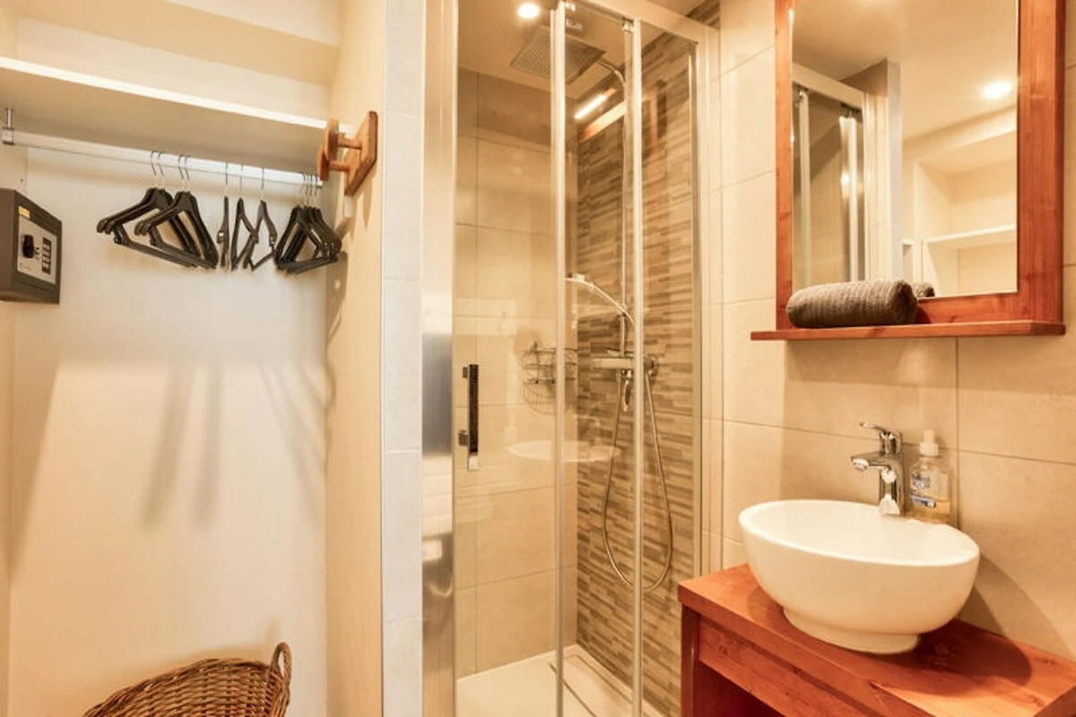 Inmitten der idyllischen Schönheit von Les Arcs 1800 bietet die Résidence les Chardons einen ruhigen Rückzugsort in den Bergen – ideal für Familien und Gruppen, die Abenteuer und Entspannung suchen. Genießen Sie das sanfte Rauschen des Waldes auf Ihrem nach Westen ausgerichteten Balkon und lassen Sie sich von der frischen Alpenluft beleben, während Sie einen Tag voller Entdeckungen und Erholung planen. Diese friedliche Oase ist von einer atemberaubenden Landschaft umgeben und verspricht unvergessliche Momente zu jeder Jahreszeit. Treten Sie ein in diese frisch renovierte Residenz und entdecken Sie die harmonische Verbindung von modernem Komfort und alpinem Charme. Das 88 m² große, durchdacht gestaltete Apartment bietet einen geräumigen Wohnbereich mit vielen Sitzgelegenheiten, eine moderne Küche im amerikanischen Stil, die für kulinarische Genüsse bestens ausgestattet ist, und drei geschmackvoll eingerichtete Schlafzimmer für erholsame Nächte. Zwei makellose Badezimmer und ein separates WC sorgen für zusätzlichen Komfort, während der private, überdachte Parkplatz die Anreise mit dem Auto erleichtert. Der Balkon mit Blick auf den üppigen Wald ist der perfekte Ort für den Morgenkaffee oder entspannte Abende. Nur fünf Gehminuten von Geschäften und Freizeitmöglichkeiten entfernt, vereint die Résidence les Chardons Ruhe und Komfort. Im Winter locken die nahegelegenen Pisten Skifahrer, während der Sommer ein Paradies für Wanderer und Naturliebhaber bietet. Erkunden Sie die Wanderwege, bestaunen Sie die majestätischen Gipfel oder entspannen Sie sich einfach inmitten der alpinen Pracht. Der lebhafte Ferienort Les Arcs 1800 bietet Unterhaltung für jedes Alter, von lokalen Märkten bis hin zu Outdoor-Abenteuern. Wählen Sie die Résidence les Chardons für eine Auszeit in den Bergen, wo jedes Detail darauf ausgerichtet ist, Ihren Aufenthalt zu einem besonderen Erlebnis zu machen. Ob Sie aufregende Aktivitäten oder ruhige Momente suchen, diese Unterkunft verspricht ein unvergessliches alpines Erlebnis.