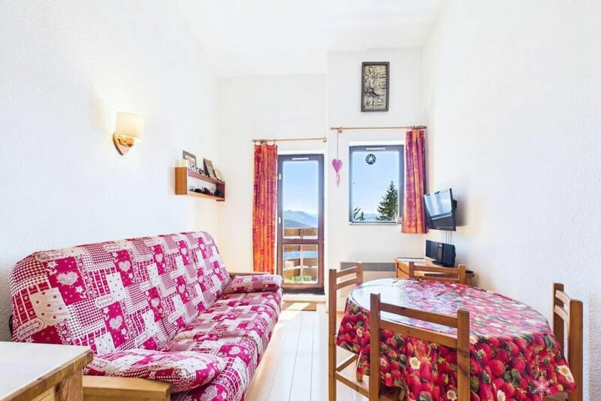 Das 26 m² große Studio ist durchdacht gestaltet und bietet Platz für bis zu vier Gäste. Auf der Mezzanine-Ebene befindet sich ein komfortables Doppelbett, während der Wohnbereich mit einem Doppelschlafsofa und einem Flachbildfernseher mit TNT für gemütliche Abende ausgestattet ist. Der Eingangsbereich verfügt über Etagenbetten und ist somit ideal für Familien oder kleine Gruppen. Die Küchenzeile mit Elektroherd, Kühlschrank, Backofen und Mikrowelle ermöglicht es Ihnen, nach einem erlebnisreichen Tag herzhafte Mahlzeiten zuzubereiten. Der nach Süden ausgerichtete Balkon lädt zum Entspannen bei einer Tasse Kaffee oder einem Glas Wein ein, während Sie den atemberaubenden Bergblick genießen. Einkaufsmöglichkeiten befinden sich nur 200 Meter entfernt und eine Kindertagesstätte nur 50 Meter von der Unterkunft. Im Winter locken die Pisten, während der Sommer zum Wandern, Radfahren und Entdecken der Naturschönheiten der Region einlädt. Die lebendige Dorfatmosphäre, kombiniert mit der Ruhe der Berge, schafft die perfekte Balance für einen unvergesslichen Urlaub. Ob Sie Abenteuer oder Entspannung suchen, dieses Studio in Les Bouquetins A verspricht einen unvergesslichen Aufenthalt in den Alpen. Lassen Sie sich vom Charme von La Rosière und dem Komfort dieses gemütlichen Refugiums verzaubern und genießen Sie einen ganz besonderen Aufenthalt.