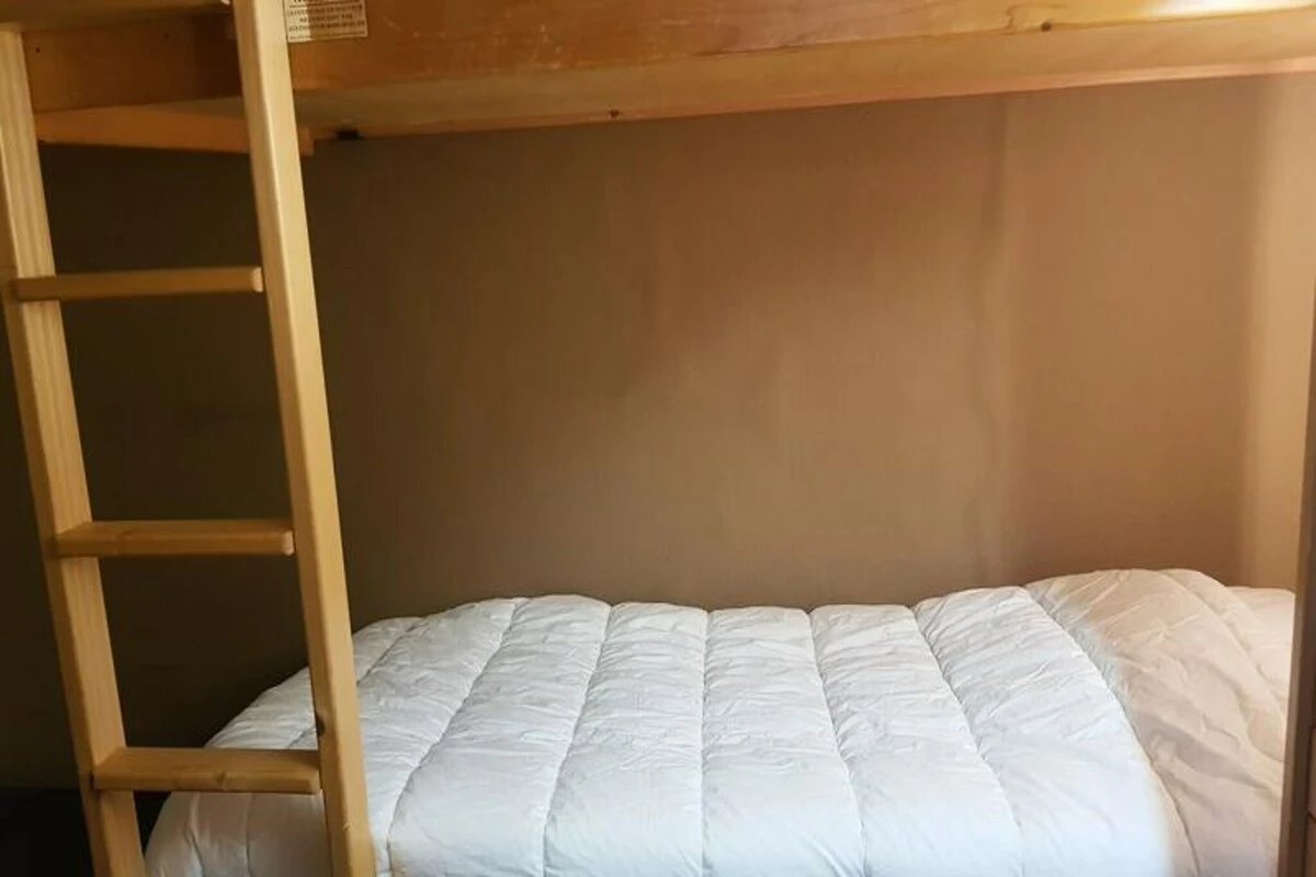 Das 37 m² große Studio ist durchdacht gestaltet und bietet Platz für bis zu vier Gäste. Es ist somit ideal für Paare, kleine Familien oder enge Freunde. Der Wohnbereich verfügt über zwei bequeme Einzelbetten, während eine separate Schlafnische mit Etagenbetten für mehr Privatsphäre sorgt. Die voll ausgestattete Küche bietet Elektroherd, Backofen, Mikrowelle, Geschirrspüler und Kühlschrank – alles, was Sie für die Zubereitung leckerer Mahlzeiten nach einem erlebnisreichen Tag benötigen. Ein Badezimmer mit Badewanne und WC, ein Fernseher und ein Skischrank tragen zum Komfort Ihres Aufenthalts bei.