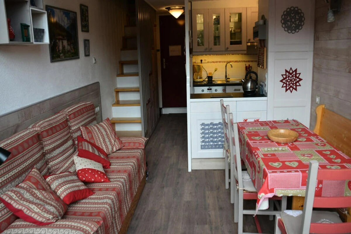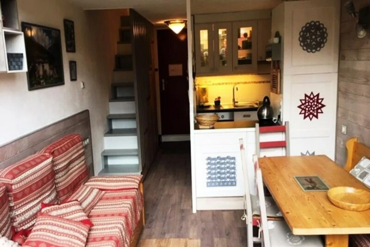Die Unterkunft ist verkehrsgünstig gelegen und bietet Zugang zu den Shuttlebussen zwischen den Skigebieten von Charmettoger. Parkplätze, sowohl überdacht als auch unüberdacht, befinden sich in unmittelbarer Nähe. Ein Supermarkt direkt in der Unterkunft sorgt dafür, dass Sie alles Notwendige vor Ort haben. Im Winter können Sie direkt auf die Pisten fahren, und im Sommer laden die üppigen Wanderwege und Panoramablicke auf die umliegenden Gipfel zum Erkunden ein. Der Charme des Mont Blanc und die lebendige alpine Atmosphäre machen dieses Apartment zur perfekten Wahl für Ihren nächsten Bergurlaub.
