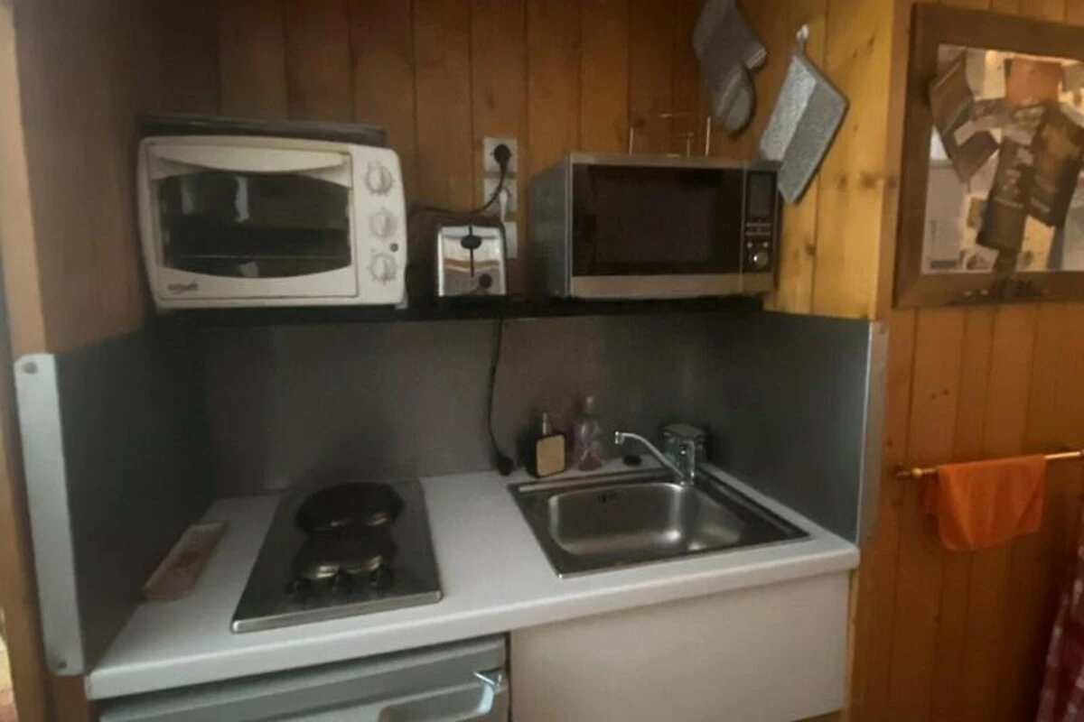 Das 24 m² große Studio ist durchdacht gestaltet und bietet Platz für bis zu vier Gäste, ideal für Familien oder kleine Gruppen. Die Ecklage des Studios umfasst einen einladenden Eingangsbereich mit zwei gemütlichen Etagenbetten, ein Wohnzimmer mit Schlafcouch und eine voll ausgestattete Küchenzeile. Hier finden Sie alles, was Sie zum Kochen benötigen, vom Elektroherd bis zur Tassimo-Kaffeemaschine, und der Geschirrspüler sorgt für eine einfache Reinigung. Nach einem erlebnisreichen Tag können Sie im komfortablen Wohnbereich entspannen oder ein warmes Bad im eleganten Badezimmer genießen. Moderne Annehmlichkeiten wie kostenloses WLAN und ein Fernseher sorgen für zusätzlichen Komfort.