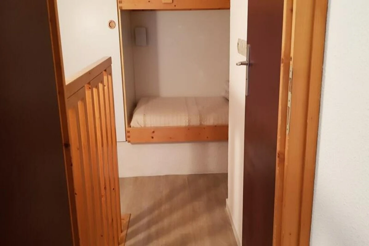 Das 39 m² große Apartment ist durchdacht gestaltet und bietet bequem Platz für bis zu sechs Gäste. Im Obergeschoss befinden sich drei gemütliche Schlafbereiche: ein Doppelzimmer, ein Zweibettzimmer und eine charmante Nische mit Etagenbetten – ideal für Familien oder Freundesgruppen. Die voll ausgestattete Küche mit Cerankochfeld, Backofen und Geschirrspüler geht in ein einladendes Wohnzimmer über, sodass Sie nach einem erlebnisreichen Tag entspannt Ihre Mahlzeiten zubereiten können. Moderne Annehmlichkeiten wie ein Fernseher und ein abschließbarer Skischrank sorgen für einen entspannten Aufenthalt.
