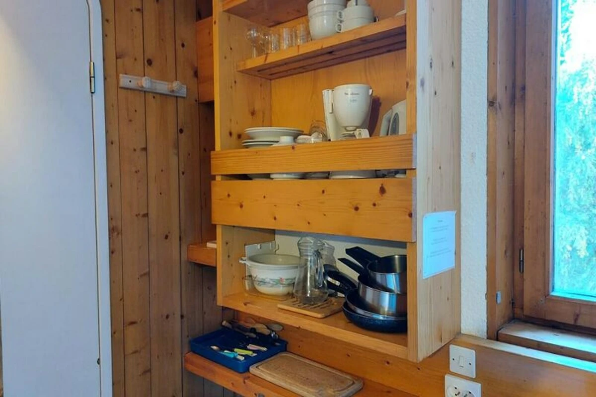 Das kompakte, aber durchdacht gestaltete Studio ist nach Nordosten ausgerichtet und lässt sanftes Morgenlicht herein. Der Wohnbereich ist ideal für zwei Personen und verfügt über ein bequemes Schlafsofa. Die Küchenzeile ist mit allem Notwendigen ausgestattet, darunter Backofen, Kühlschrank, Toaster, Wasserkocher und Kaffeemaschine. Nach einem erlebnisreichen Tag können Sie im gemütlichen Wohnbereich mit Fernseher und WLAN entspannen oder sich im modernen Duschbad mit separatem WC erfrischen. Zusätzliche Annehmlichkeiten wie überdachte Parkplätze (gegen Gebühr) und die Möglichkeit, Haustiere mitzubringen, machen Ihren Aufenthalt noch angenehmer.