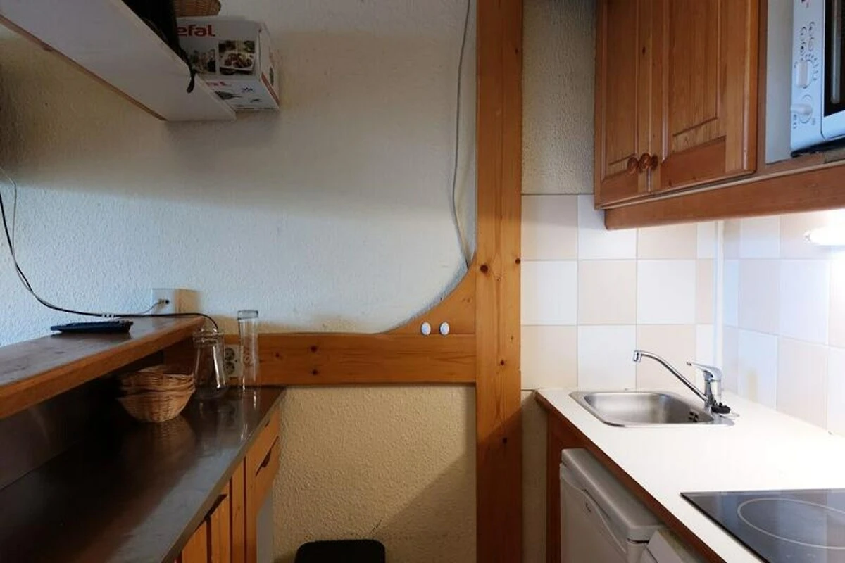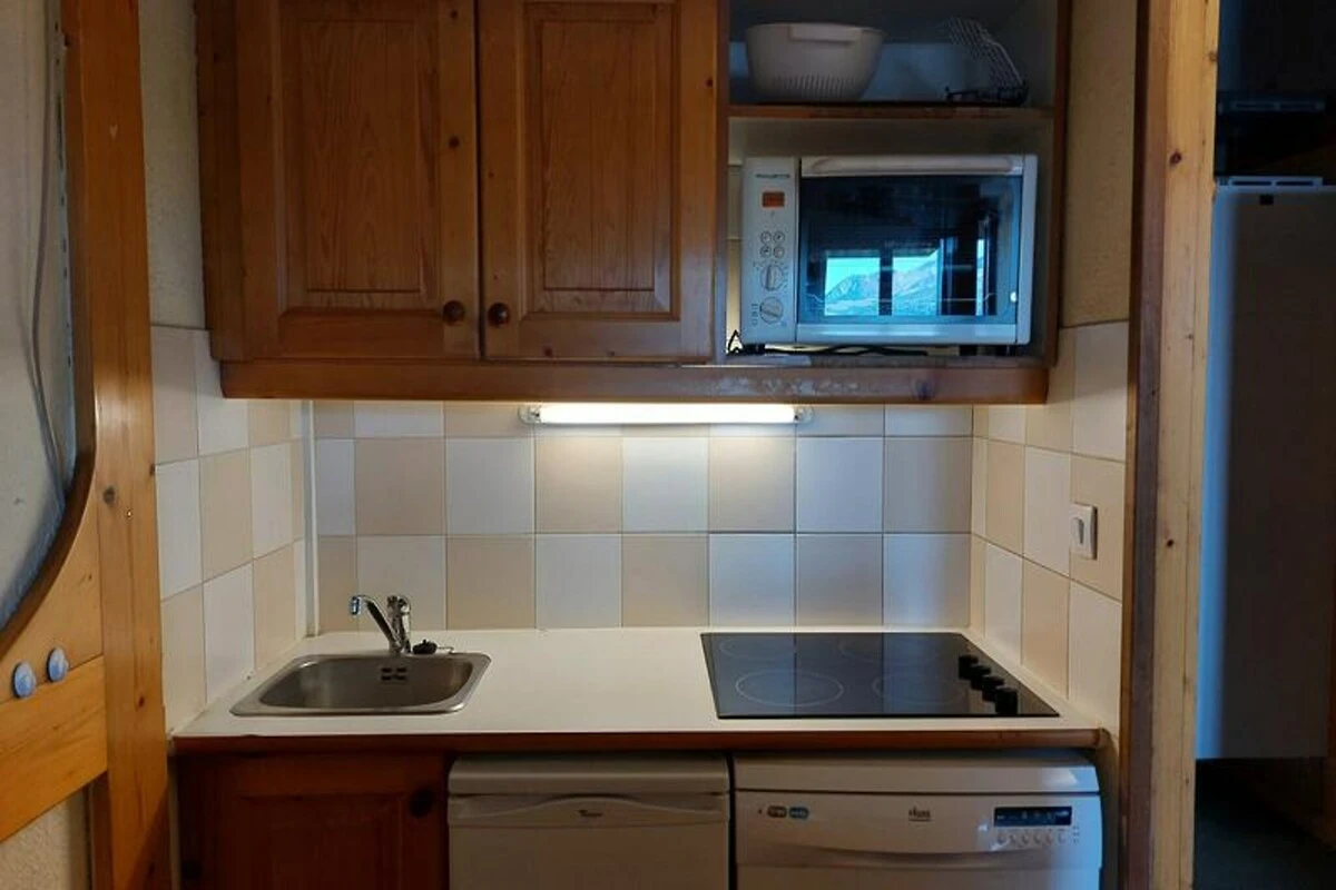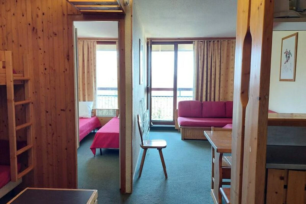 Hoch über dem Tarentaise-Tal, wo der Charme alpiner Dörfer auf den Nervenkitzel erstklassigen Skifahrens trifft, bietet die Nova Residence einen gemütlichen Rückzugsort für Ihre Bergabenteuer. Dank ihrer erstklassigen Lage an der Grenze zwischen Villards und Charvet erreichen Sie von hier aus in wenigen Schritten den Vagère-Sessellift und die Villards-Gondelbahn und haben somit direkten Zugang zum weitläufigen Skigebiet Paradiski. Ob Wintersport oder Sommerwanderungen – dies ist Ihr Tor zu den schönsten Seiten von Les Arcs 1800. Das 40 m² große Apartment im 6. Stock des Nova 3 bietet bequem Platz für bis zu sechs Gäste. Der nach Südwesten ausgerichtete Balkon bietet einen atemberaubenden Blick auf die umliegenden Berge und das Tal und bildet die perfekte Kulisse für Ihre Morgen- oder Abendstunden. Im Inneren befinden sich zwei Einzelbetten im Wohnzimmer sowie ein separates Schlafzimmer mit zwei weiteren Einzelbetten und eine gemütliche Schlafnische mit Etagenbetten. Die voll ausgestattete Küche mit Backofen, Mikrowelle, Geschirrspüler und vielem mehr ermöglicht Ihnen die unkomplizierte Zubereitung von Mahlzeiten nach einem erlebnisreichen Tag. Ein Badezimmer mit Badewanne und separatem WC sorgt für zusätzlichen Komfort, während WLAN und Fernseher modernen Komfort bieten.
