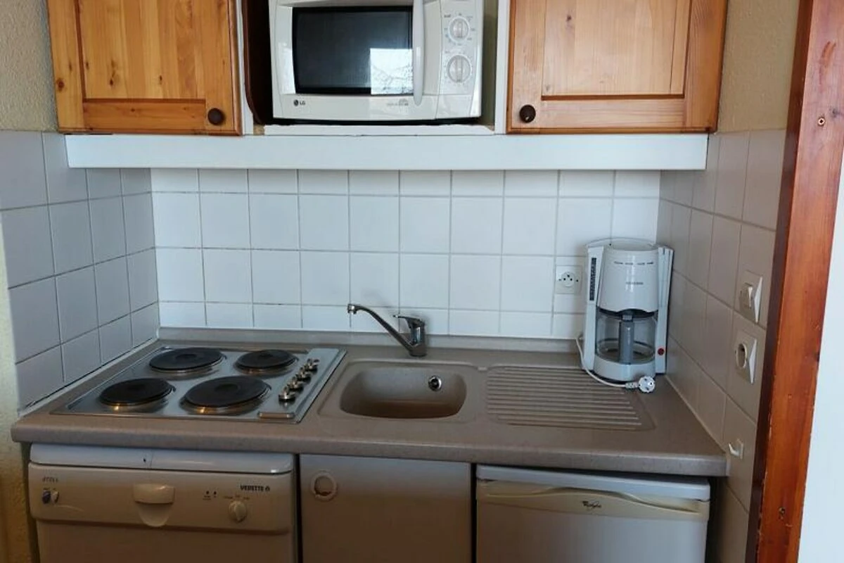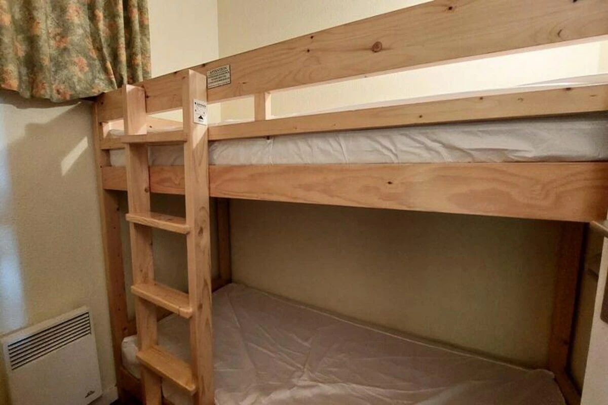 Das Apartment befindet sich im 4. Stock eines Gebäudes mit Aufzug und bietet bequem Platz für bis zu sechs Gäste. Die durchdachte Aufteilung umfasst ein Wohnzimmer mit Schlafcouch, ein Schlafzimmer mit zwei Einzelbetten und ein zweites Schlafzimmer mit Etagenbett (Hinweis: Das obere Bett ist nicht für Kinder unter sechs Jahren geeignet). Die voll ausgestattete Küche mit Kühlschrank, Toaster, Wasserkocher, Kaffeemaschine, Geschirrspüler und Mikrowelle ermöglicht Ihnen die unkomplizierte Zubereitung Ihrer Mahlzeiten. Nach einem Tag auf der Piste oder beim Wandern können Sie im Badezimmer mit Badewanne oder im separaten Duschraum mit WC entspannen. Moderne Annehmlichkeiten wie ein Fernseher und ein Skischrank sorgen für zusätzlichen Komfort.