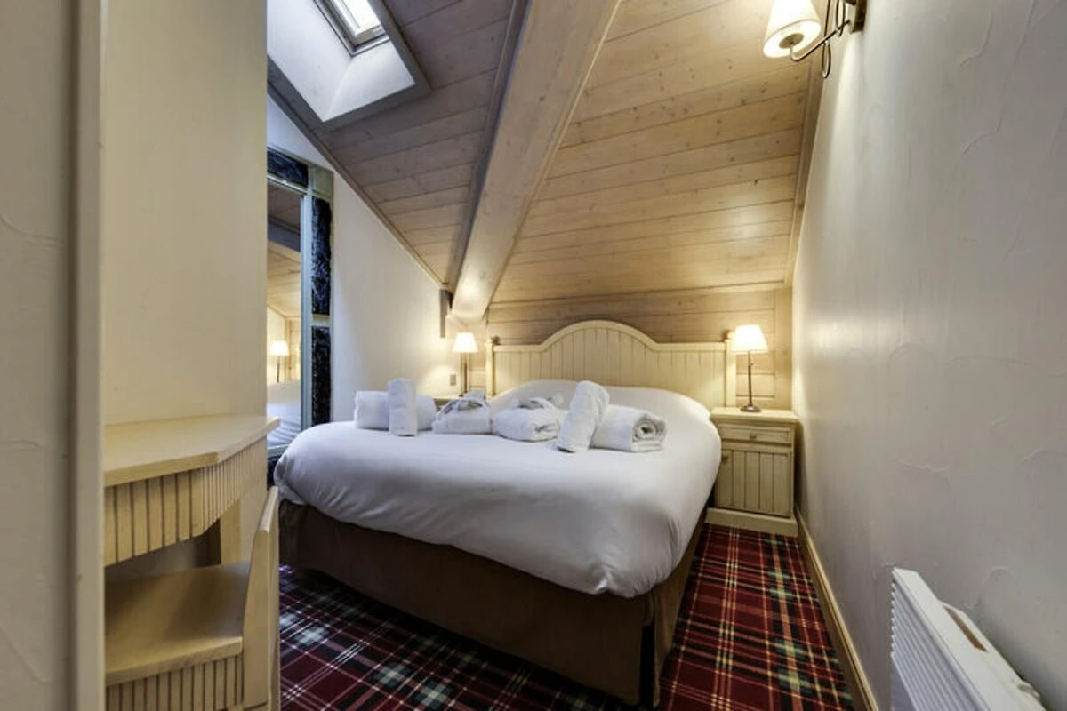 Im bezaubernden Alpendorf Arc 1950, wo Kopfsteinpflastergassen auf die Stille schneebedeckter Gipfel treffen, bietet die Hameau du Glacier Residence einen luxuriösen Rückzugsort für Reisende, die Abenteuer und Entspannung gleichermaßen suchen. Diese autofreie Anlage ist direkt mit dem renommierten Skigebiet Paradiski verbunden, das 425 Kilometer unberührte Pisten für Skifahrer und Snowboarder aller Könnensstufen bietet. Stellen Sie sich vor, Sie wachen mit der klaren Bergluft auf, betreten das Herz der Alpen und können von dieser Ski-in/Ski-out-Residenz direkt auf die Piste fahren. Der Charme von Arc 1950 mit seiner lebendigen Atmosphäre und der malerischen Umgebung schafft die perfekte Kulisse für unvergessliche Momente. \n\nDas 55 Quadratmeter große Apartment ist durchdacht gestaltet und bietet Platz für bis zu vier Erwachsene und zwei Kinder. Es verfügt über zwei gemütliche Schlafzimmer, darunter ein Doppelzimmer mit eigenem Bad und ein Zweibettzimmer, die Familien oder Gruppen optimalen Komfort bieten. Das Wohnzimmer lädt mit seinem Schlafsofa und der warmen Atmosphäre zum Entspannen ein. Die voll ausgestattete Küche und der Essbereich bieten die perfekte Gelegenheit, nach einem Tag voller alpiner Abenteuer gemeinsam zu essen und zu lachen. Moderne Annehmlichkeiten wie WLAN, ein Skischrank und ein separates Duschbad sorgen für zusätzlichen Komfort. Die inkludierten Serviceleistungen – bezogene Betten bei Ankunft, Bademäntel und Endreinigung – garantieren einen unbeschwerten Aufenthalt. Gäste der Hameau du Glacier Residence haben Zugang zu einem umfassenden Wellnessbereich mit Außenpool, Whirlpool, Sauna, Dampfbad und Fitnessgeräten. Ob Sie im Whirlpool unter dem Sternenhimmel entspannen oder sich in der Sauna erholen – der Wellnessbereich bietet den perfekten Ausgleich zu den aufregenden Pisten. Das nahegelegene Dorf lockt mit charmanten Restaurants, Geschäften und Après-Ski-Aktivitäten und ist somit ein lebendiger Treffpunkt für Entspannung und Unterhaltung. Wählen Sie diese Residenz aufgrund ihrer unschlagbaren Lage, der erstklassigen Ausstattung und des einzigartigen Charmes von Arc 1950. Ob Sie nun den Nervenkitzel des Skifahrens oder die Ruhe der Berge suchen, die Residenz Hameau du Glacier verspricht einen Urlaub voller Komfort, Abenteuer und unvergesslicher Erinnerungen.