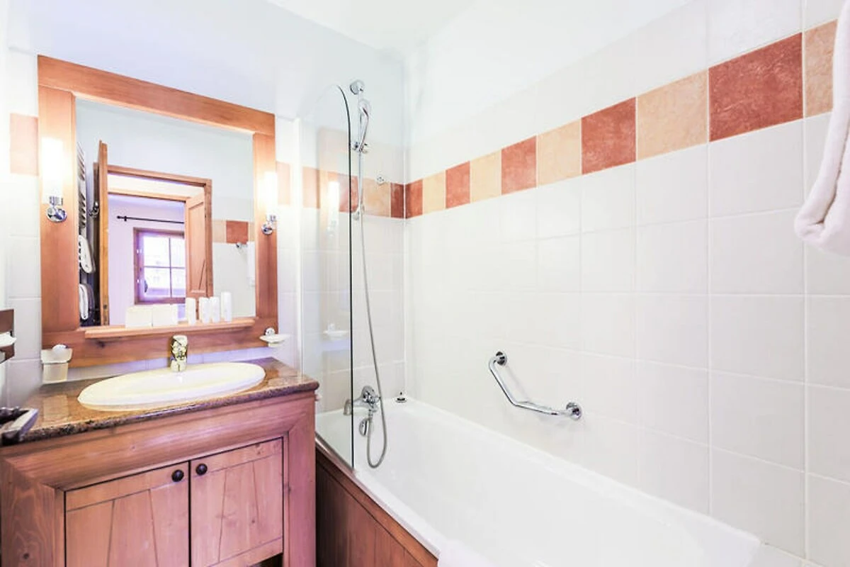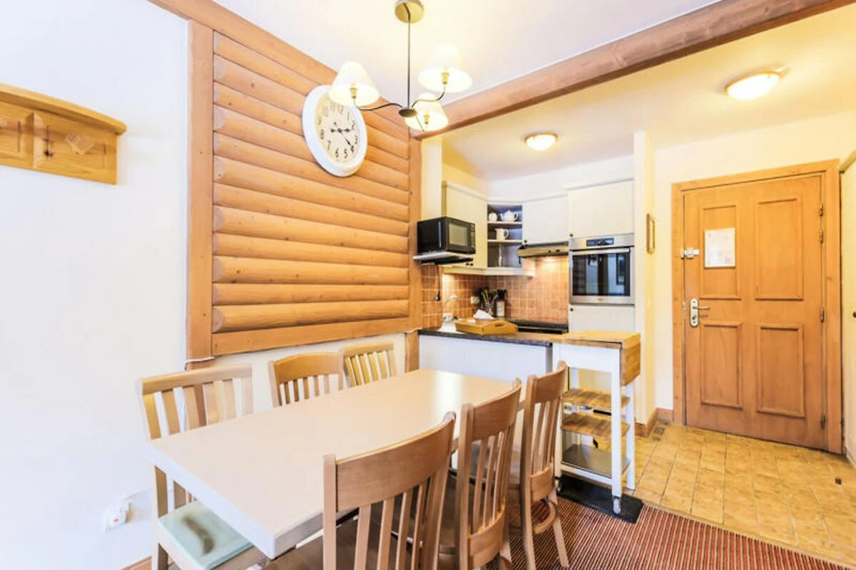 Ihr geräumiges 55 m² großes Apartment im 3. Stock des Gebäudes Auberge de Jérôme bietet bequem Platz für bis zu sechs Gäste. Die Aufteilung umfasst einen hellen Wohnbereich mit Schlafsofa, eine offene Küche und zwei einladende Schlafzimmer, eines mit Doppelbett und eines mit zwei Einzelbetten. Zwei moderne Badezimmer und ein separates WC sorgen für Komfort für alle. Nach einem erlebnisreichen Tag können Sie im Wellnessbereich der Residenz entspannen. Hier erwarten Sie ein beheizter Außenpool, Sauna, Dampfbad und ein Fitnesscenter. WLAN ist inklusive, sodass Sie auch in dieser idyllischen Berglandschaft in Verbindung bleiben.