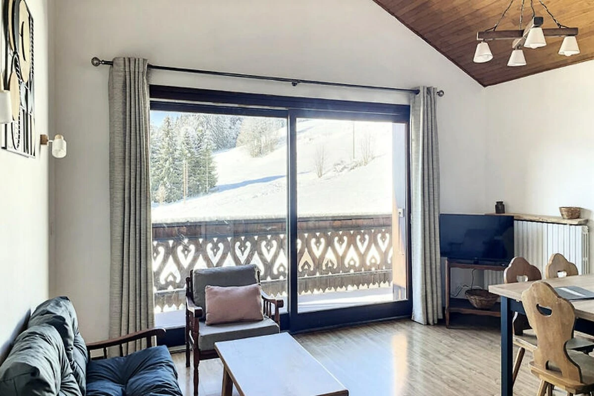 Umgeben von den majestätischen Gipfeln der französischen Alpen, lädt dieses charmante Apartment in Les Gets Sie zu einem perfekten Mix aus Komfort und Abenteuer ein. Mit seinem warmen Ambiente und dem atemberaubenden Bergblick ist es ein Paradies für Familien und kleine Gruppen, die einen unvergesslichen Alpenurlaub suchen. Ob Sie zum Skifahren, Wandern oder einfach nur zum Entspannen kommen – die natürliche Schönheit der Region schafft die ideale Atmosphäre für einen inspirierenden Aufenthalt. \n\nDas 53 Quadratmeter große Apartment bietet Platz für bis zu fünf Gäste und verfügt über ein gemütliches Schlafzimmer sowie durchdacht gestaltete Wohnräume. Die voll ausgestattete Küche ist ideal, um herzhafte Mahlzeiten zuzubereiten, während Sie den atemberaubenden Alpenpanorama genießen. Moderne Annehmlichkeiten wie WLAN, Waschmaschine und Bügeleisen sorgen für einen reibungslosen und komfortablen Aufenthalt. Für zusätzlichen Komfort bietet die Unterkunft eine sichere Garage im Gebäude, sodass das Parken unkompliziert ist. \n\nNur 600 Meter von den Skipisten der „Chairiège des Perrières“ entfernt, haben Sie direkten Zugang zu aufregenden Wintersportarten und malerischen Wanderwegen. Die Gegend bietet eine Vielzahl an Restaurants, Supermärkten und öffentlichen Verkehrsmitteln – alles, was Sie brauchen, ist bequem zu erreichen. Ob Sie das charmante Dorf erkunden oder die umliegende Natur entdecken möchten, Les Gets verspricht unzählige Möglichkeiten zum Erkunden. \n\nDieses Apartment ist mehr als nur eine Unterkunft – es ist ein einladendes Zuhause, in dem Sie nach einem Tag voller alpiner Abenteuer entspannen können. Lassen Sie sich von der Schönheit der französischen Alpen für Ihren nächsten Urlaub inspirieren und schaffen Sie unvergessliche Erinnerungen in diesem idyllischen Refugium.