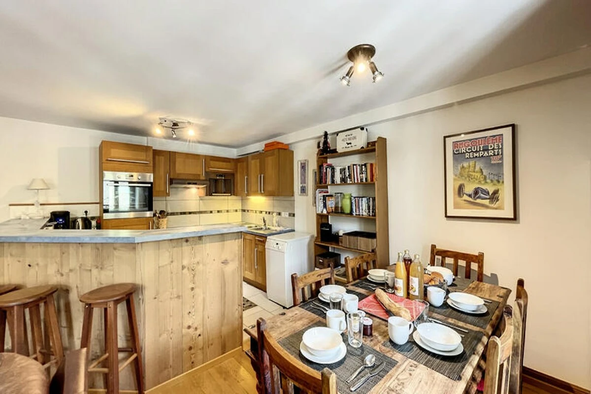 Mitten im bezaubernden Dorf Les Gets lädt dieses charmante Apartment Sie ein, den Zauber der französischen Alpen zu jeder Jahreszeit zu erleben. Stellen Sie sich vor, Sie wachen mit der frischen Bergluft auf, nur wenige Schritte von malerischen Gassen mit Geschäften, Restaurants und der lebendigen Atmosphäre dieses alpinen Paradieses entfernt. Ob Sie Abenteuer auf den Pisten suchen oder ruhige Momente am Lac des Écoles genießen möchten – diese Unterkunft bietet den perfekten Ausgangspunkt für Ihren Urlaub. Die Lage verbindet Komfort und die Ruhe der Natur und macht sie zu einem idealen Rückzugsort für Familien und Freunde. \n\nDas 75 m² große Apartment bietet bequem Platz für bis zu sechs Gäste in drei gemütlichen Schlafzimmern. Der offene Wohnbereich strahlt Wärme aus und verfügt über eine voll ausgestattete Küche, die zum Kochen und Genießen einlädt, sowie einen einladenden Treffpunkt nach einem erlebnisreichen Tag. Moderne Annehmlichkeiten wie WLAN und eine Waschmaschine sorgen für einen entspannten Aufenthalt, während das durchdachte Design und die einladende Einrichtung ein Gefühl von Zuhause auf Zeit vermitteln. Ob Sie gemeinsam ein Essen genießen oder mit einem guten Buch entspannen möchten – jede Ecke dieser Unterkunft ist auf Erholung und Geselligkeit ausgerichtet. Les Gets bietet eine Fülle an Aktivitäten: Skifahren und Snowboarden im Winter, Wandern und Mountainbiken im Sommer. Der nahegelegene Lac des Écoles lädt zu malerischen Picknicks und Wassersport ein, während das Dorf selbst mit kulturellen Veranstaltungen und lokalen Märkten eine lebendige Atmosphäre schafft. Wer den Charme der Alpen erleben möchte, findet hier alles, was das Herz begehrt. Lassen Sie sich vom Zauber Les Gets verzaubern. Dank seiner erstklassigen Lage und des einladenden Ambientes verspricht dieses Apartment unvergessliche Erinnerungen inmitten der Berge.
