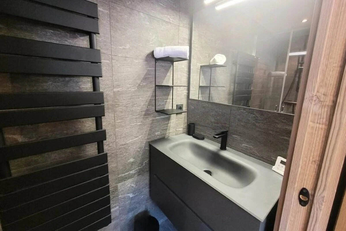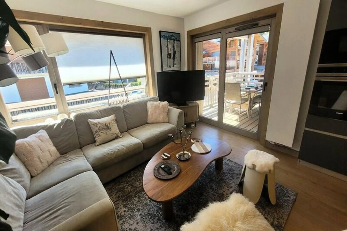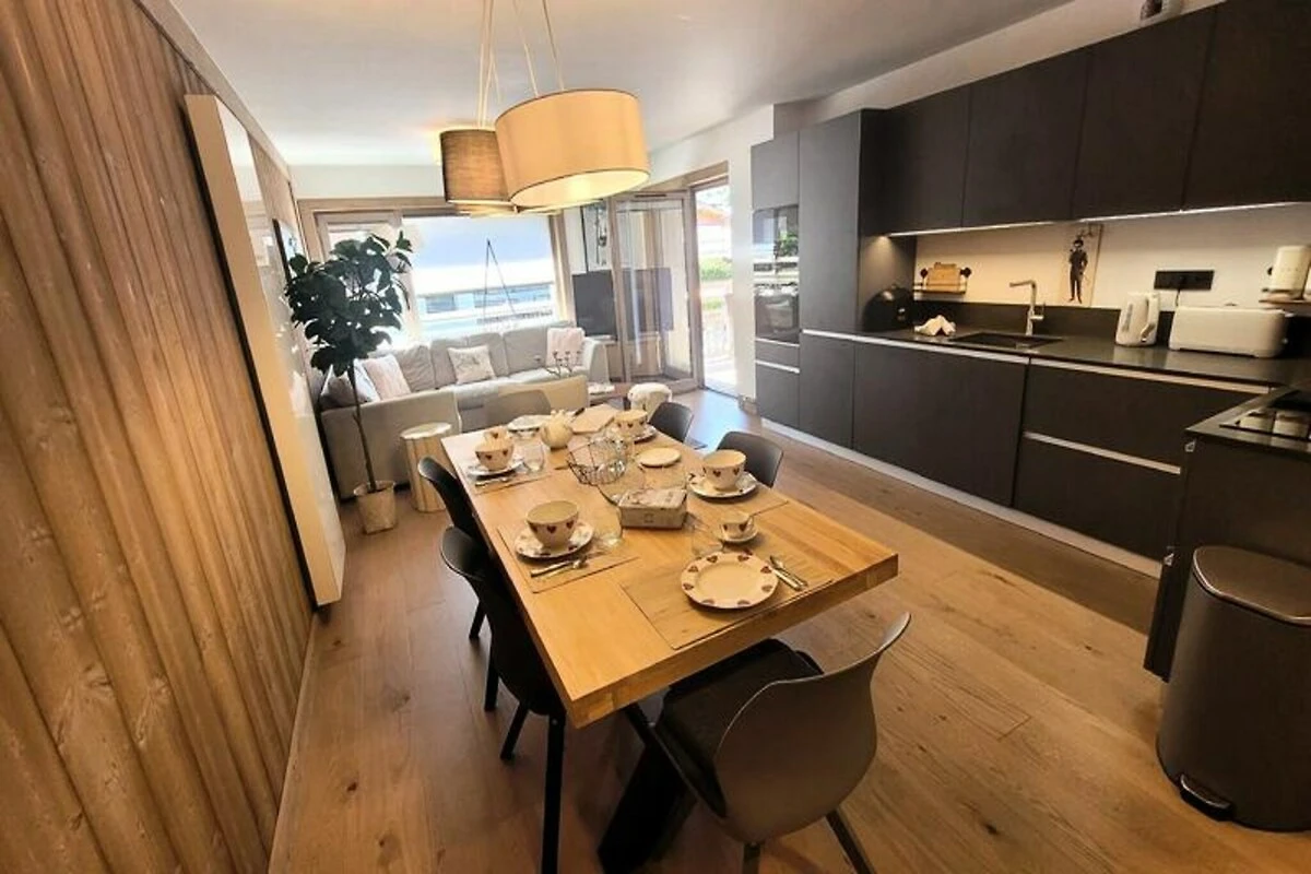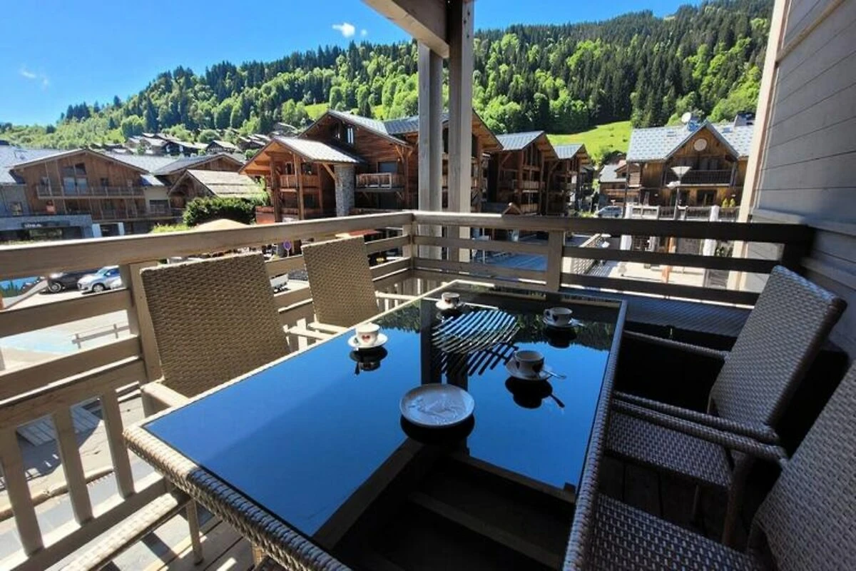 Mitten im malerischen Dorf Les Gets bietet dieses elegante Apartment die perfekte Mischung aus alpinem Charme und modernem Komfort. Stellen Sie sich vor: Sie treten aus der Tür und finden sich umgeben von charmanten Geschäften, einladenden Restaurants und der lebendigen Atmosphäre des Ortes. Dank der nur wenige Schritte entfernten Skilifte können Ihre Bergabenteuer mühelos beginnen – ob Sie im Winter durch den Pulverschnee gleiten oder im Sommer malerische Loipen erkunden. Die Lage des Apartments im ersten Stock, bequem mit dem Aufzug erreichbar, garantiert Komfort und bietet gleichzeitig einen gemütlichen Rückzugsort nach einem erlebnisreichen Tag. Das Apartment bietet Platz für bis zu sechs Gäste und besticht durch ein warmes und stilvolles Interieur, ideal für Familien oder Freunde. Es verfügt über zwei Doppelzimmer, eines davon mit eigenem Bad und viel Stauraum, sowie eine Schlafnische mit Etagenbetten, perfekt für Kinder. Der offene Wohn-, Ess- und Küchenbereich ist lichtdurchflutet und bietet direkten Zugang zu einem Balkon mit Gartenmöbeln – ideal zum Entspannen mit Blick auf das Dorf. Moderne Annehmlichkeiten wie WLAN, eine voll ausgestattete Küche mit hochwertigen Geräten und durchdachte Extras wie ein Fondue-Set und ein Skischuhtrockner sorgen für einen reibungslosen und angenehmen Aufenthalt.