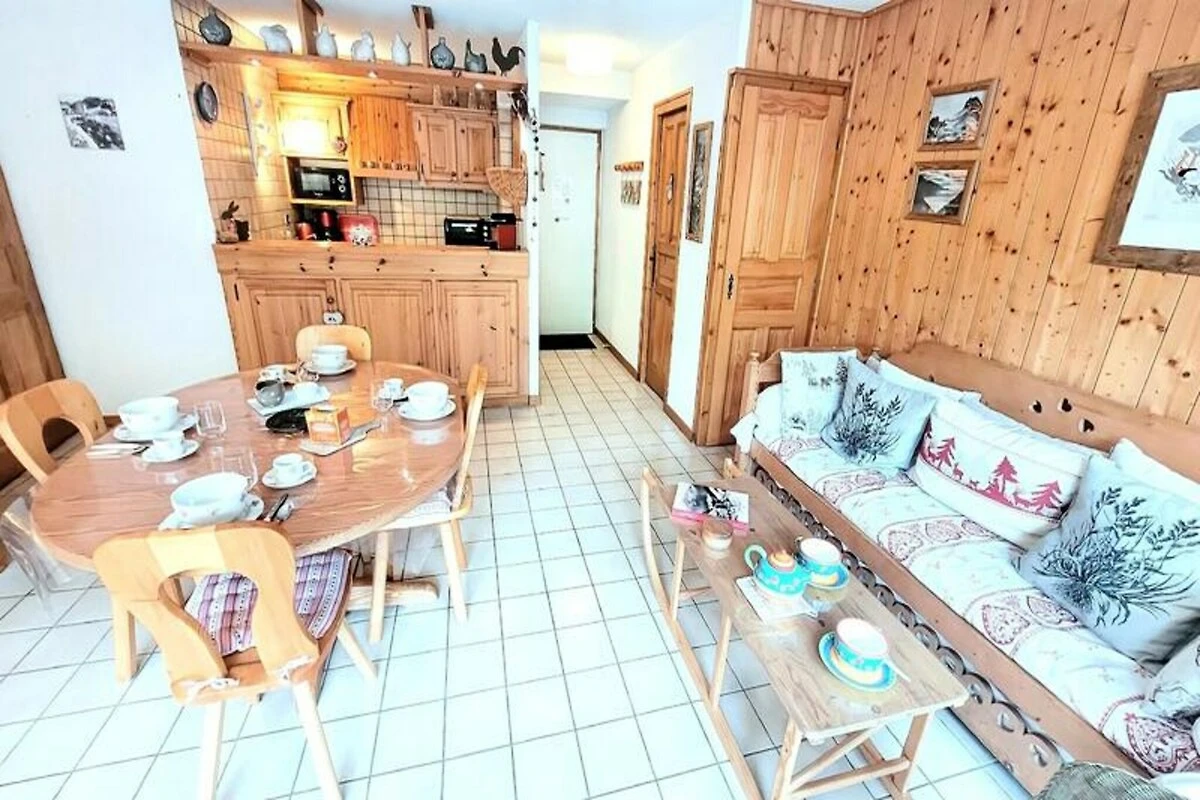 Inmitten des lebendigen Charmes von Les Gets bietet dieses charmante Apartment eine einzigartige Kombination aus Komfort und alpinem Flair. Gelegen in der Rue du Centre, befinden Sie sich nur wenige Schritte von belebten Geschäften, gemütlichen Cafés und dem pulsierenden Après-Ski-Angebot entfernt. Bei Sonnenuntergang verwandelt sich der nach Westen ausgerichtete Balkon in Ihren privaten Rückzugsort, von dem aus Sie den Blick auf die umliegenden Berge und die funkelnden Lichter des Dorfes genießen können. Ob Sie nun ein Winter-Skiabenteuer oder einen Sommerurlaub planen – diese Unterkunft garantiert Ihnen die perfekte Lage. Das 54 m² große Apartment ist durchdacht gestaltet und bietet Platz für bis zu fünf Gäste. Das helle Wohnzimmer mit Flügeltüren zum Balkon lädt nach einem Tag auf der Piste zum Entspannen ein. Die offene Küche ist mit allem ausgestattet, was Sie benötigen, vom Raclette-Set bis zur Nespresso-Kaffeemaschine, sodass Sie problemlos herzhafte Mahlzeiten oder ein schnelles Frühstück zubereiten können, bevor Sie losziehen. Zwei gemütliche Schlafzimmer bieten erholsame Rückzugsorte, darunter ein Doppelzimmer mit viel Stauraum und ein zweites Zimmer mit Etagenbetten und Schlafsofa. Moderne Annehmlichkeiten wie WLAN, Fernseher und Geschirrspüler sorgen für einen komfortablen Aufenthalt. Nur 50 Meter von den Skipisten und der Shuttle-Haltestelle sowie 250 Meter von der renommierten Skischule ESF entfernt, ist dieses Apartment ideal für Skibegeisterte und Familien. Im Sommer laden malerische Loipen zum Erkunden ein oder Sie genießen die lebhafte Atmosphäre des Ortes. Die Bars im Haus tragen zur pulsierenden Stimmung bei, gelegentlich kann es jedoch etwas lauter sein. Wählen Sie dieses Apartment wegen seiner unschlagbaren Lage, der durchdachten Ausstattung und der Möglichkeit, in den dynamischen Geist von Les Gets einzutauchen. Ob Sie durch den Tiefschnee carven oder lokale Spezialitäten genießen – unvergessliche Erinnerungen erwarten Sie in dieser alpinen Oase.