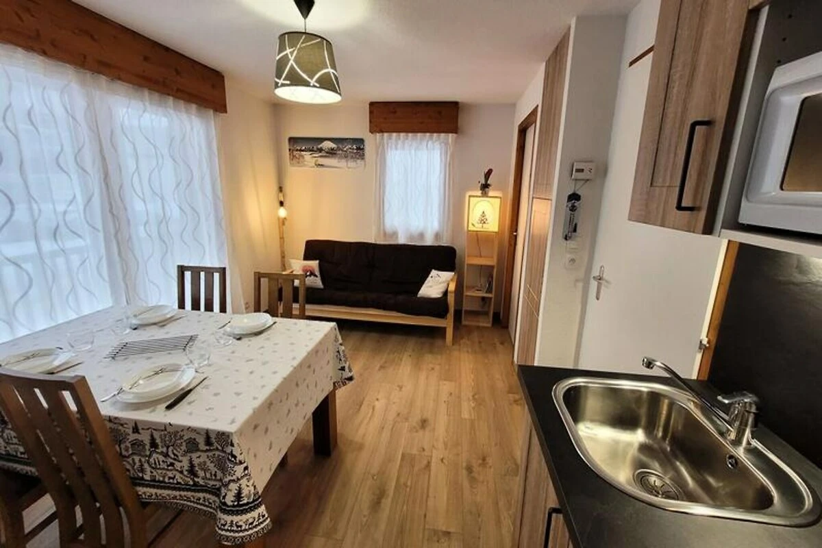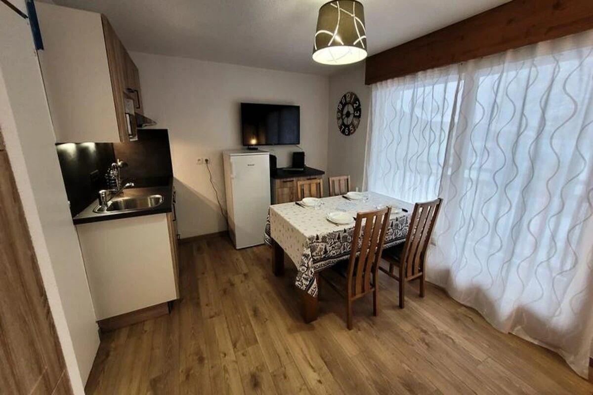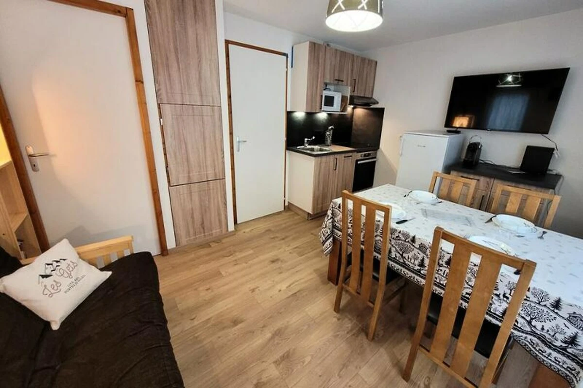 Erwecken Sie Ihre Sinne in diesem idyllischen Refugium in den Alpen, wo die klare Bergluft und die friedliche Umgebung die perfekte Kulisse für Ihre Auszeit bilden. Nur 400 Meter vom lebhaften Ortskern und 350 Meter von den nächsten Skipisten entfernt, bietet dieses frisch renovierte Apartment eine harmonische Verbindung von modernem Komfort und alpinem Charme. Ob Sie die Pisten hinunterwedeln oder einfach nur inmitten der Natur entspannen möchten – diese Unterkunft verspricht einen unvergesslichen Aufenthalt. Treten Sie ein in dieses helle und funktionale 35 m² große Apartment, das 2024 mit viel Liebe zum Detail neu gestaltet wurde, um maximalen Komfort und Stil zu bieten. Im ersten Stock eines ruhigen Gebäudes mit Aufzug gelegen, verfügt es über ein gemütliches Wohnzimmer mit voll ausgestatteter Küche, einen Essbereich und eine Lounge mit Zugang zu einer privaten Terrasse. Die nach Nordosten ausgerichteten Fenster tauchen das Apartment in sanftes Morgenlicht und schaffen eine warme und einladende Atmosphäre. Die Schlafmöglichkeiten umfassen ein Schlafzimmer mit Doppelbett und Balkonzugang sowie eine Schlafnische mit Etagenbetten – ideal für Familien oder kleine Gruppen bis zu vier Personen. Moderne Annehmlichkeiten wie WLAN, Waschtrockner und ein Raclette-Set sorgen für einen reibungslosen und angenehmen Aufenthalt. Dank kostenloser Shuttlebusse, die nur 100 Meter entfernt halten, erreichen Sie die Pisten und Sehenswürdigkeiten der Umgebung bequem und schnell. Nach einem Tag auf der Piste oder beim Erkunden der Umgebung kehren Sie in Ihre private Garage oder auf Ihren Außenstellplatz zurück und entspannen sich in Ihrer komfortablen Bergoase. Die nahegelegene Skischule ESF und die Geschäfte des täglichen Bedarfs tragen zu einem unkomplizierten Urlaub bei, während die atemberaubende Alpenkulisse unzählige Möglichkeiten für Abenteuer und Erholung bietet. Ob Sie Ihren Morgenkaffee auf der Terrasse genießen oder sich ein gemütliches Raclette-Abendessen gönnen – dieses Apartment ist Ihr Tor zu den schönsten Seiten der französischen Alpen. Erleben Sie die perfekte Balance zwischen Aktivität und Ruhe in diesem charmanten Bergrefugium.