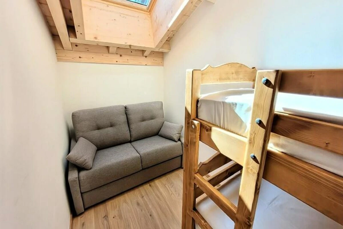 Das Apartment bietet bequem Platz für bis zu sechs Gäste und verfügt über ein Hauptschlafzimmer mit einem komfortablen Doppelbett, ein zweites Schlafzimmer mit gemütlichen Etagenbetten und ein Schlafsofa im Wohnbereich. Die voll ausgestattete Küche lädt dazu ein, nach einem Tag auf der Piste leckere Mahlzeiten zuzubereiten, während das Wohnzimmer zum Entspannen bei einem Film oder einfach zum Genießen der atemberaubenden Aussicht einlädt. Moderne Annehmlichkeiten wie WLAN, eine Nespresso-Kaffeemaschine und ein Geschirrspüler sorgen für einen angenehmen Aufenthalt. Ein privater Skiraum und ein sicherer Tiefgaragenstellplatz stehen den Gästen ebenfalls zur Verfügung.