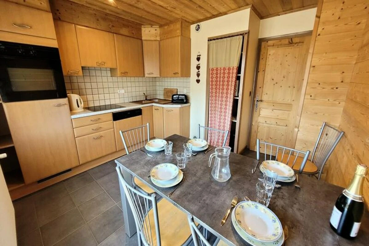 Das Apartment verfügt über ein gemütliches Wohnzimmer mit Schlafbereich, ausgestattet mit einem Schlafsofa und einem Doppelbett, und öffnet sich zu einem nach Süden ausgerichteten Balkon, auf dem Sie die Sonne der Berge genießen können. Treten Sie vor die Tür und Sie befinden sich nur wenige Schritte von der französischen Skischule, lokalen Geschäften und sogar einer Shuttle-Haltestelle entfernt (nur 10 Meter). Das lebhafte Nachtleben des Ortes trägt zwar zu seinem Charme bei, kann aber gelegentlich etwas lauter sein – ein kleiner Preis für die unschlagbare Lage. Im Winter genießen Sie Inklusivleistungen wie Bettwäsche, Handtücher und Endreinigung, während die Sommermieten flexible, optionale Services bieten, die auf Ihre Bedürfnisse zugeschnitten werden können.