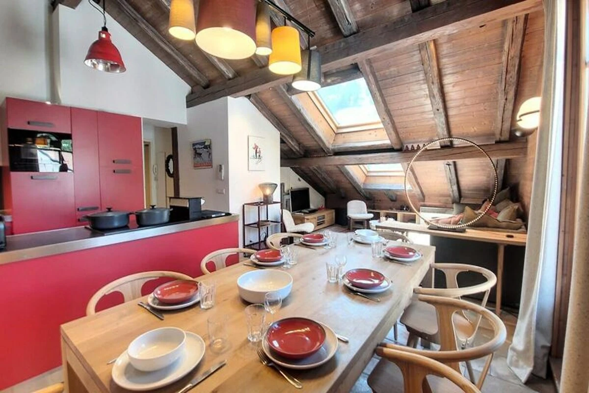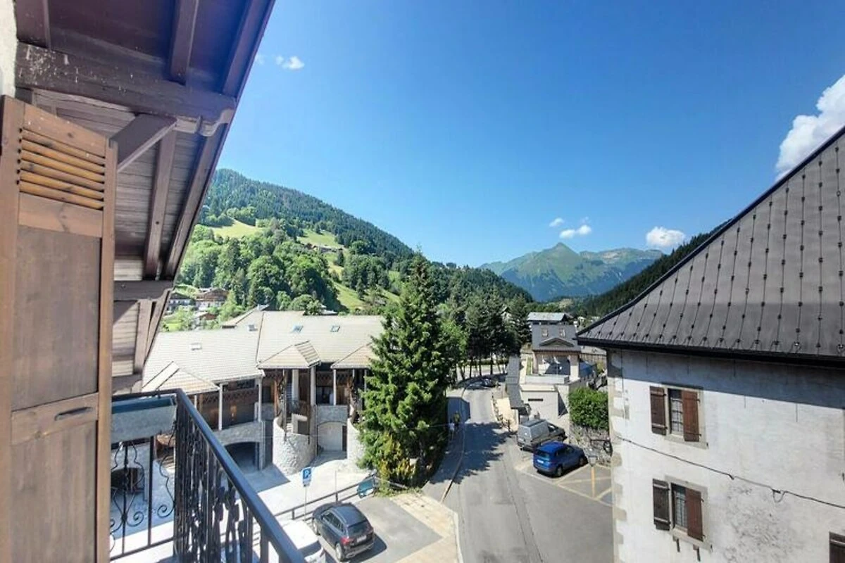 Mitten im charmanten alten Dorf Les Gets bietet dieses Penthouse-Apartment einen ruhigen Rückzugsort, nur wenige Schritte vom pulsierenden Dorfleben und den Skipisten des Mont Chery entfernt. Stellen Sie sich vor, Sie wachen morgens mit malerischem Blick auf das Dorf von Ihrem Wohnzimmer aus auf, umgeben vom sanften Summen des alpinen Lebens. Ob Wintersport oder Sommerabenteuer – diese Residenz vereint authentischen savoyischen Charme mit modernem Komfort und schafft so ein unvergessliches Urlaubserlebnis. \n\nDas 5-Zimmer-Apartment mit 70 m² Wohnfläche und insgesamt 95 m² ist durchdacht gestaltet und bietet Platz für bis zu acht Gäste. Die Lage im dritten Stock, bequem mit dem Aufzug erreichbar, garantiert Privatsphäre und Ruhe. Das geräumige Wohnzimmer verfügt über eine voll ausgestattete Küche, einen gemütlichen Essbereich und eine schräge Lounge mit Oberlicht. Vier Schlafzimmer mit eigenem Bad bieten hohen Komfort, darunter eine Master-Suite mit Westausrichtung – perfekt zum Entspannen nach einem erlebnisreichen Tag. Moderne Annehmlichkeiten wie individuell regulierbare Heizung, Fernseher in allen Zimmern und ein Kaminofen tragen zur warmen und einladenden Atmosphäre bei. \n\nNur 100 Meter vom Ortskern und 150 Meter von den nächsten Skipisten entfernt. Geschäfte, Restaurants und die französische Skischule sind bequem zu Fuß erreichbar – die Lage ist ideal für alle, die Komfort und Abenteuer suchen. Im Sommer verwandelt sich die Gegend in ein Paradies für Wanderer und Radfahrer, deren Wege sich durch atemberaubende Alpenlandschaften schlängeln. \n\nOb Sie aufregende Skitage, beschauliche Bergwanderungen oder einfach nur einen gemütlichen Ort zum Entspannen mit Ihren Lieben suchen – dieses Penthouse-Apartment in Les Gets verspricht einen Urlaub voller Komfort, Charme und unvergesslicher Erinnerungen.