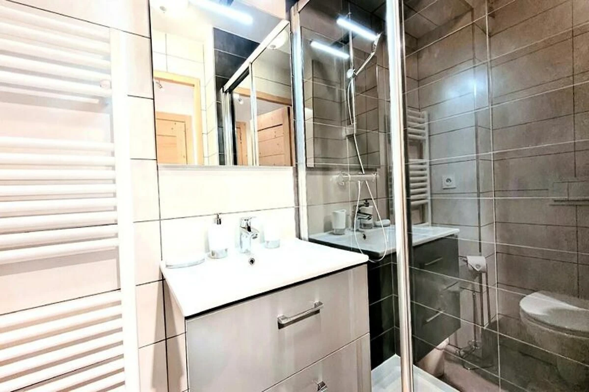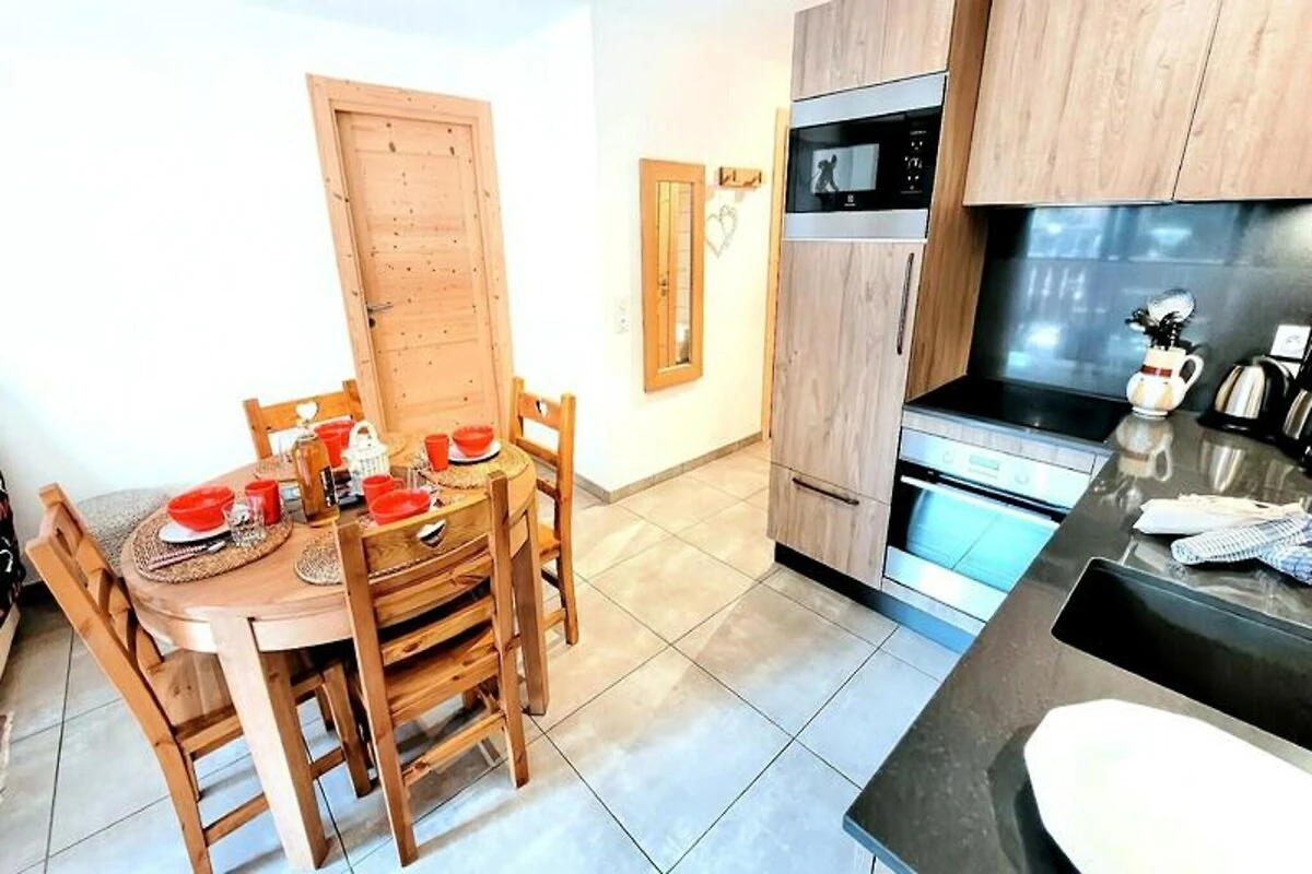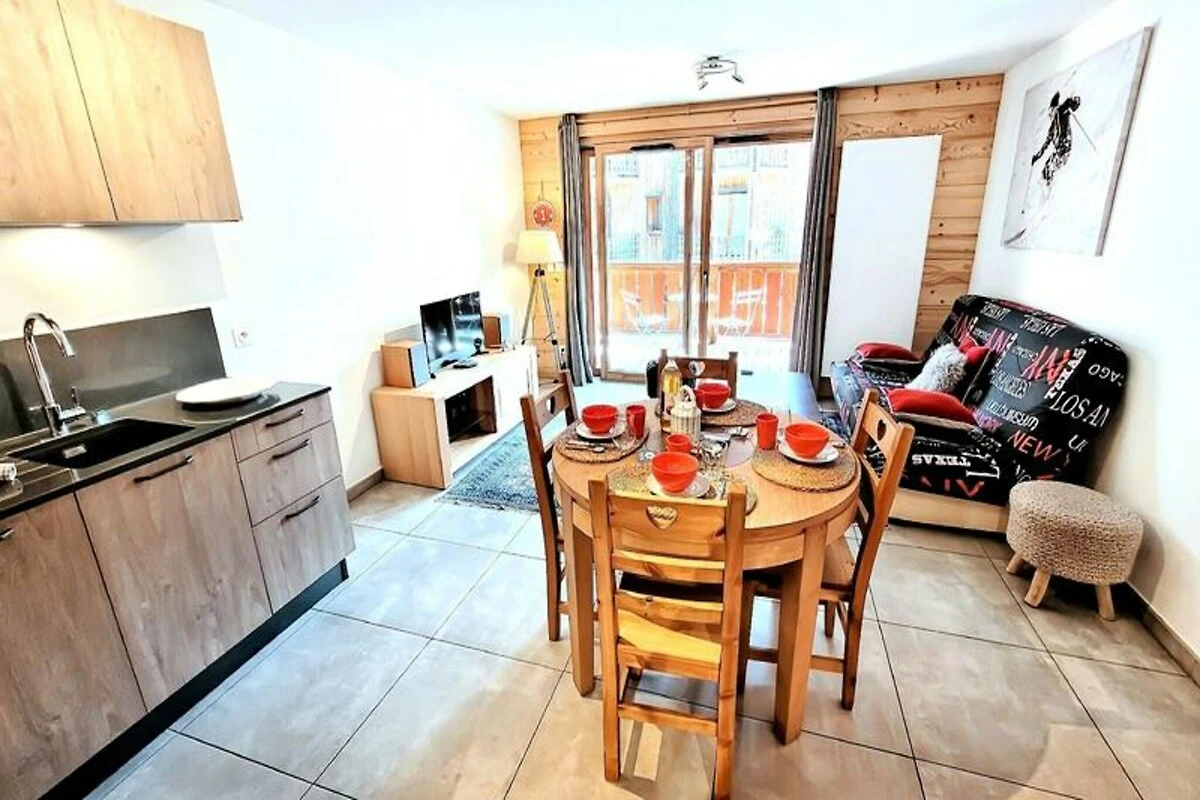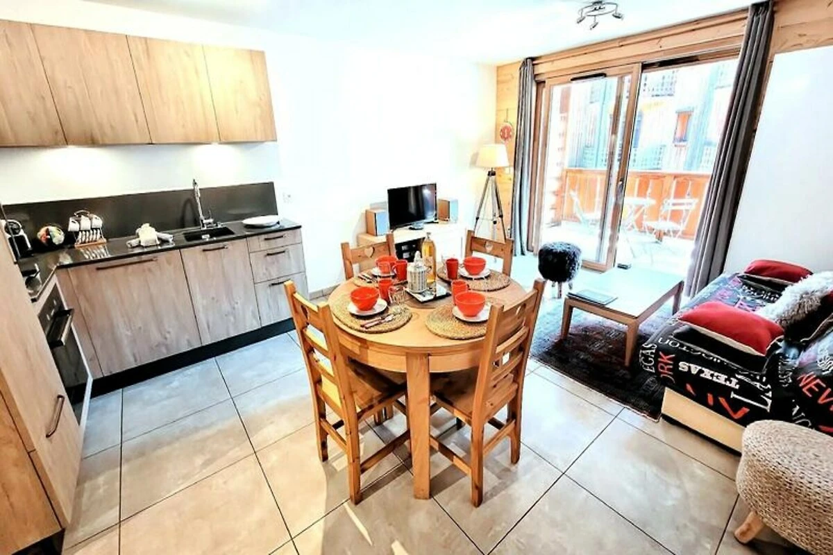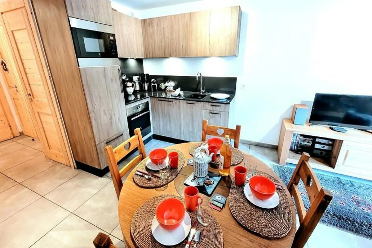 Inmitten des lebendigen Charmes der französischen Alpen bietet dieses elegante Apartment einen luxuriösen Rückzugsort im Herzen des Ferienortes. Die perfekte Kombination aus modernem Design und alpiner Gemütlichkeit lädt Sie ein, das Leben in den Bergen von seiner schönsten Seite zu erleben. Genießen Sie die sanften Sonnenstrahlen auf Ihrem nach Osten ausgerichteten Balkon, trinken Sie Ihren Kaffee und lassen Sie die frische Bergluft und die friedliche Schönheit der umliegenden Gipfel auf sich wirken. Ob Wintersport oder Sommerabenteuer – dieses Apartment ist der Schlüssel zu unvergesslichen Erinnerungen. Treten Sie ein und entdecken Sie einen durchdacht gestalteten Raum, der Komfort und Funktionalität vereint. Das helle Wohnzimmer mit offener Küche schafft eine einladende Atmosphäre für entspannte Abende nach einem Tag auf der Piste. Das Hauptschlafzimmer mit eigenem Bad bietet einen privaten Rückzugsort mit Dusche und Fernseher, während die gemütliche Hütte mit Etagenbetten ideal für Kinder oder weitere Gäste ist. Moderne Annehmlichkeiten wie WLAN, zwei Fernseher und eine voll ausgestattete Küche – inklusive Nespresso-Kaffeemaschine und Raclette-Grill – garantieren einen reibungslosen Aufenthalt. Der private Balkon mit Terrasse verleiht dem Apartment einen Hauch von Outdoor-Charme und lädt zum Entspannen bei einem Glas Wein im Sonnenuntergang ein.