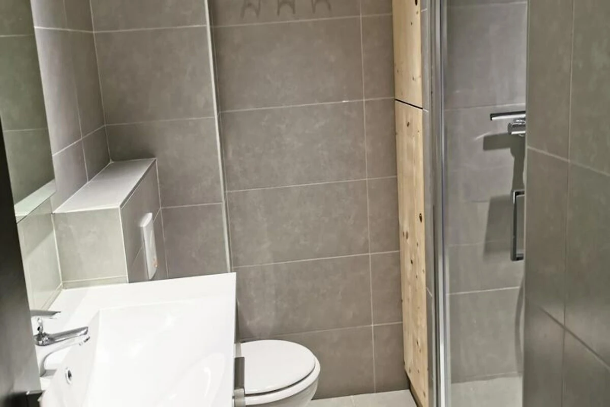 Das 3-Sterne-Apartment bietet bequem Platz für bis zu vier Gäste. Im Inneren erwartet Sie ein durchdacht gestalteter Wohnraum mit einem gemütlichen Wohnbereich, einer voll ausgestatteten Küche und einem privaten Balkon zum Entspannen. Die Schlafgelegenheiten umfassen ein Schlafzimmer mit Doppelbett und viel Stauraum sowie eine separate Nische mit Etagenbetten – perfekt für Familien oder kleine Gruppen. Moderne Annehmlichkeiten wie Geschirrspüler, Induktionskochfeld und Nespresso-Maschine sorgen für einen komfortablen Aufenthalt. Der Verzicht auf WLAN lädt dazu ein, abzuschalten und die ruhige Alpenatmosphäre zu genießen.