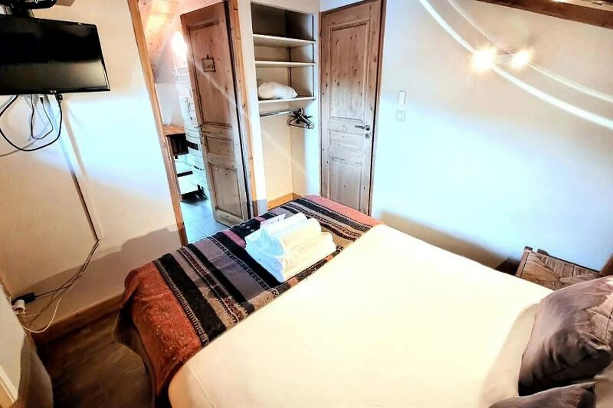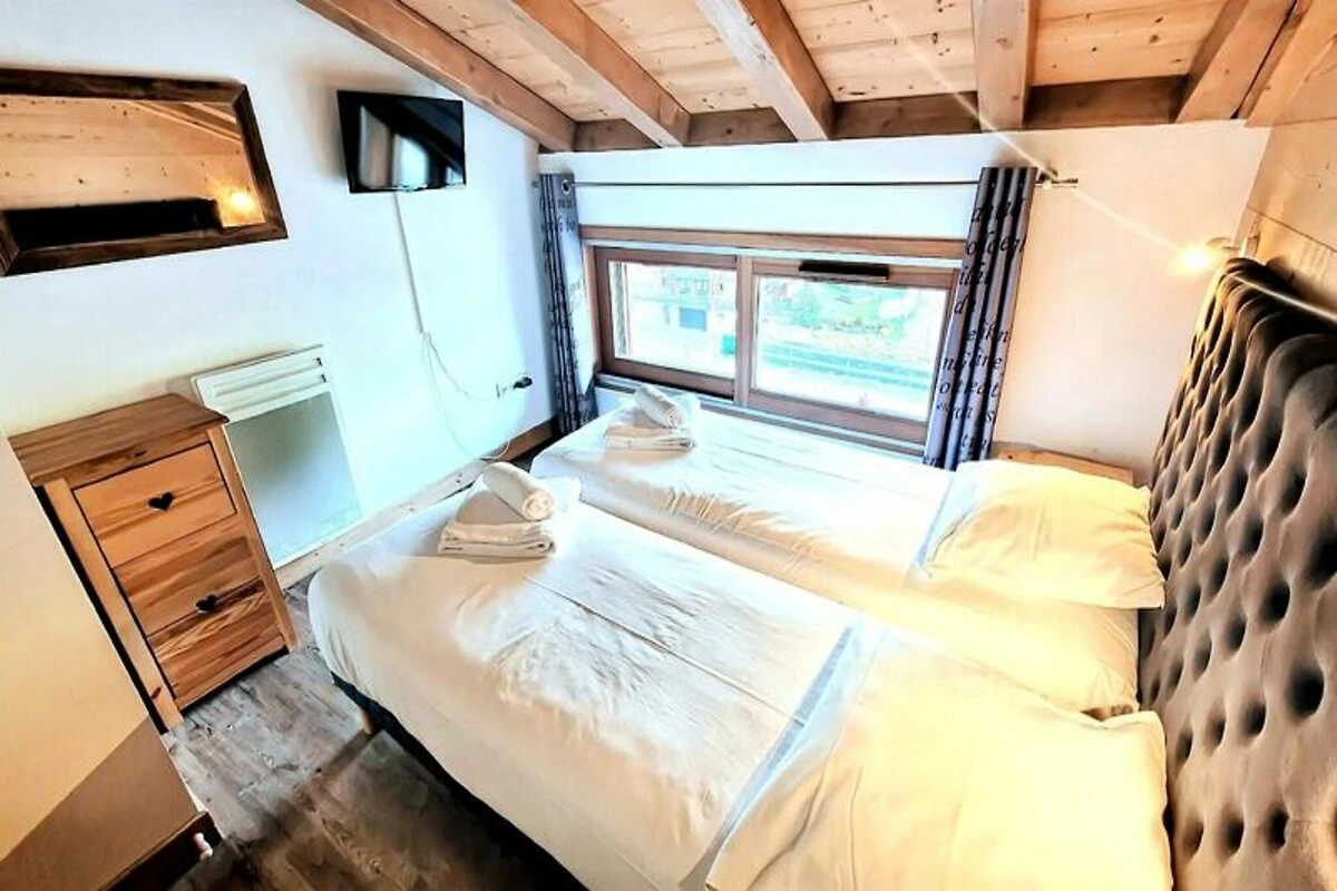 Im idyllischen Örtchen Les Gets bietet dieses charmante Maisonette-Apartment einen gemütlichen Rückzugsort für alle, die Ruhe und alpine Abenteuer suchen. In erhöhter Lage gelegen, bietet es einen atemberaubenden Blick über das weitläufige Skigebiet und lädt dazu ein, die Schönheit der französischen Alpen zu genießen. Auf der nach Südosten ausgerichteten Terrasse können Sie mit der sanften Wärme der Sonne erwachen und einen friedlichen Morgen mit Blick auf die schneebedeckten Hänge verbringen. Die Lage des Apartments bietet die perfekte Balance zwischen Abgeschiedenheit und Komfort: Das Dorfzentrum und alle wichtigen Annehmlichkeiten sind nur 800 Meter entfernt. \n\nDas 37 m² große Apartment ist durchdacht gestaltet und bietet maximalen Komfort und Funktionalität. Im Erdgeschoss befinden sich ein geräumiger Eingangsbereich mit viel Stauraum, eine voll ausgestattete Küche sowie ein gemütlicher Wohn- und Essbereich mit großen Fenstern zur Terrasse. Im Obergeschoss erwarten Sie zwei einladende Schlafzimmer: eines mit zwei Einzelbetten, die zu einem Doppelbett zusammengestellt werden können, und ein Hauptschlafzimmer mit eigenem Bad, Fernseher und DVD-Player. Moderne Annehmlichkeiten wie Geschirrspüler, Backofen und Raclette-Grill sorgen für einen unbeschwerten Aufenthalt, während die warme Bergdekoration eine einladende Atmosphäre schafft. Die Unterkunft liegt nur 500 Meter von den Skipisten von Perrières und Chavannes entfernt und ist somit ein idealer Ausgangspunkt für Wintersportbegeisterte. Eine Shuttle-Haltestelle nur 50 Meter von der Unterkunft entfernt bietet bequemen Zugang zu den Pisten und der 1 Kilometer entfernten Skischule ESF. Darüber hinaus bietet das nahegelegene Dorf eine Vielzahl von Geschäften, Restaurants und sogar eine Arztpraxis, sodass Sie während Ihres Aufenthalts bestens versorgt sind. Ob Sie nun im unberührten Pulverschnee die Pisten hinunterwedeln oder einfach in der ruhigen Alpenkulisse entspannen möchten – dieses Duplex-Apartment ist die perfekte Wahl für einen unvergesslichen Bergurlaub. Die Endreinigung, Bettwäsche und Handtücher sind inklusive, sodass Sie nur noch ankommen und sich in diesem idyllischen Winterparadies erholen müssen.