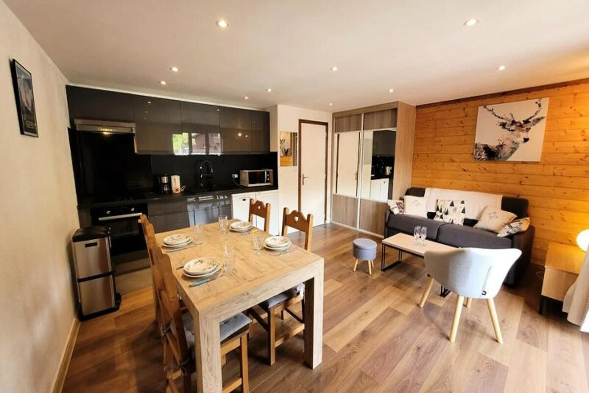 Mitten im charmanten Altstadtdorf Les Gets bietet dieses reizende Apartment die perfekte Kombination aus alpiner Tradition und modernem Komfort. Nur wenige Schritte von den Geschäften des täglichen Bedarfs und einen kurzen Spaziergang von den Skipisten des Mont Chery entfernt, ist diese Unterkunft der ideale Ausgangspunkt, um die Schönheit der französischen Alpen zu entdecken. Das Skigebiet Chavannes und das lebhafte Ortszentrum sind nur fünf Minuten entfernt und somit perfekt für Abenteuer und Entspannung. \n\nDas kürzlich renovierte Apartment befindet sich im zweiten Stock eines malerischen, typischen Alpenhauses und besticht durch seine warme und zugleich praktische Atmosphäre. Der helle Wohnbereich wird durch eine große, voll ausgestattete moderne Küche ergänzt, die sich ideal für die Zubereitung herzhafter Mahlzeiten nach einem Tag auf der Piste eignet. Der nach Osten ausgerichtete Balkon lädt dazu ein, ruhige Morgenstunden mit sanftem Sonnenschein und malerischem Ausblick zu genießen. Das Apartment bietet Platz für bis zu vier Gäste und verfügt über einen gemütlichen Eingangsbereich mit einem Etagenbett, ein komfortables Wohnzimmer mit Schlafsofa und ein praktisches Badezimmer mit Handtuchtrockner.\n\nNur 200 Meter von den Skipisten entfernt und mit der französischen Skischule in unmittelbarer Nähe ist diese Lage ein Paradies für Wintersportbegeisterte. Im Sommer verwandelt sich das Dorf in ein lebendiges Zentrum für Wandern, Mountainbiken und andere Outdoor-Aktivitäten. Die nahegelegene Shuttle-Haltestelle ermöglicht es Ihnen, die Umgebung bequem zu erkunden, und dank der Nähe zu Geschäften und Restaurants haben Sie alles Notwendige direkt vor der Tür.\n\nOb Sie einen ruhigen Rückzugsort oder einen aktiven Urlaub suchen – dieses gemütliche Apartment in Les Gets verspricht ein unvergessliches alpines Erlebnis. Mit seinem charmanten Ambiente, der hervorragenden Lage und der durchdachten Ausstattung ist es die perfekte Wahl für Paare, kleine Familien oder Freunde, die in die Magie der Berge eintauchen möchten.