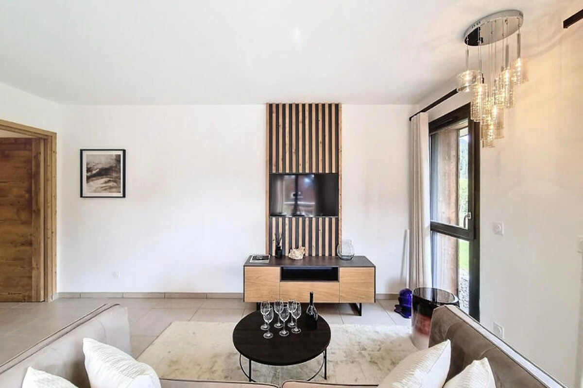 Im malerischen Dorf Les Gets, wo alpiner Charme auf modernen Luxus trifft, lädt dieses elegante 80 m² große Apartment zu einem perfekten Bergurlaub ein. Umgeben von der atemberaubenden Schönheit des Skigebiets Portes du Soleil bietet diese Unterkunft eine Oase der Ruhe und ist gleichzeitig nur 650 Meter von den Pisten entfernt – ideal für Skifahrer und Naturliebhaber. Ob Winter oder Sommer, hier erwartet Sie eine Atmosphäre der Ruhe und des Abenteuers.