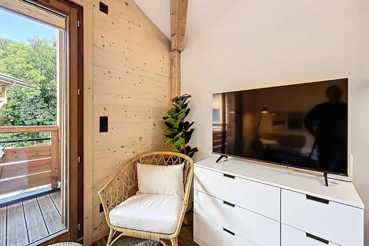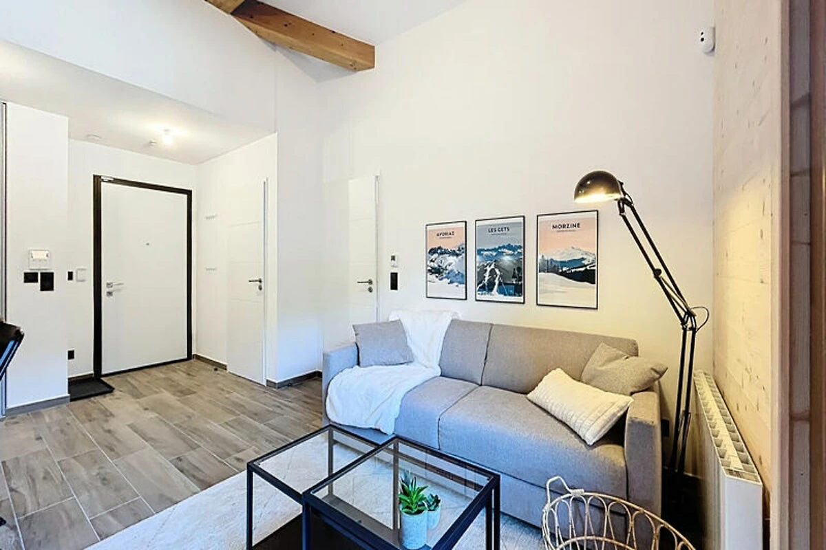 Stellen Sie sich vor, Sie wachen morgens in der frischen Bergluft auf und treten auf Ihren privaten Balkon, um den atemberaubenden Blick auf die französischen Alpen zu genießen. Dieses charmante Apartment in Les Gets ist der perfekte Rückzugsort für eine kleine Familie, ein Paar oder eine Gruppe von Freunden, die einen unvergesslichen Urlaub in den Alpen verbringen möchten. Mit seinem gemütlichen und gleichzeitig modernen Design bietet es eine warme und einladende Atmosphäre für Ihren Bergurlaub, egal ob Sie im verschneiten Winter oder in den lebhaften Sommermonaten reisen.