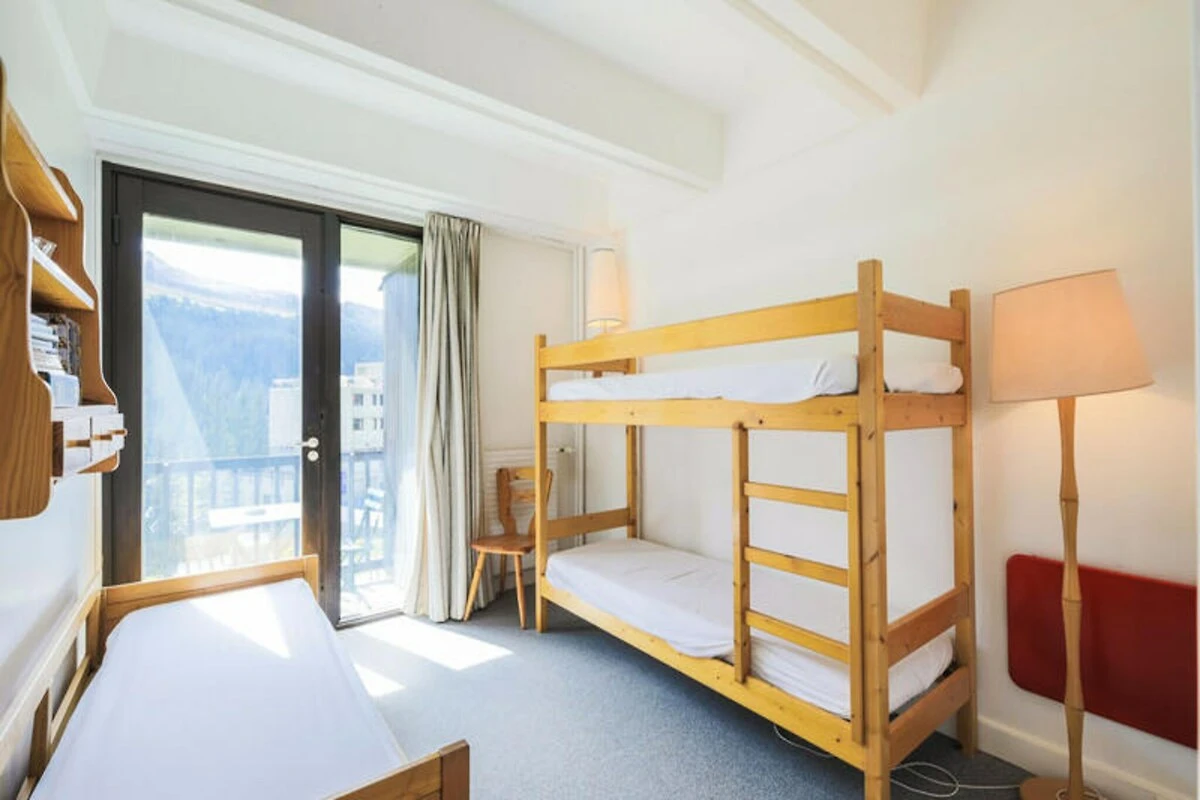 Dieses charmante, 44 m² große Apartment im 3. Stock ist durchdacht gestaltet und bietet Platz für bis zu sechs Gäste. Das gemütliche Wohnzimmer mit Schlafsofa und Sessel lädt zum Entspannen nach einem Tag auf der Piste ein. Die halboffene Küche ist voll ausgestattet und ermöglicht die einfache Zubereitung von Mahlzeiten, die Sie am Esstisch mit seiner einzigartigen Sitzbank genießen können. Das Schlafzimmer bietet flexible Schlafmöglichkeiten, darunter Etagenbetten, ein Einzelbett und ein Ausziehbett, und bietet somit Komfort für Familien oder Freundesgruppen. Ein modernes Badezimmer mit Dusche und separatem WC sorgt für zusätzlichen Komfort, während der Balkon einen ruhigen Ort zum Genießen der frischen Bergluft bietet.