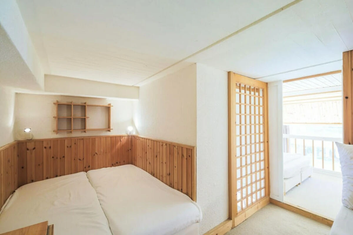 Das gemütliche 32 m² große Apartment ist durchdacht gestaltet und bietet maximalen Komfort und Funktionalität. Das Wohnzimmer mit Sofa und Sessel geht in eine voll ausgestattete Küche mit Essbereich über und ist somit ideal für gemeinsame Mahlzeiten und zum Entspannen nach einem Tag auf der Piste. Die beiden Mezzanine bieten flexible Schlafmöglichkeiten mit zwei Doppelbetten und zwei Einzelbetten und eignen sich für Familien oder Gruppen bis zu sechs Personen. Das Badezimmer verfügt über Badewanne und WC, und der private Balkon lädt zum Genießen der frischen Bergluft und des malerischen Ausblicks ein.