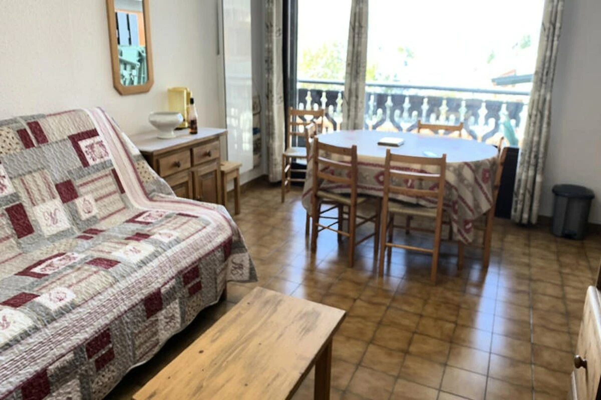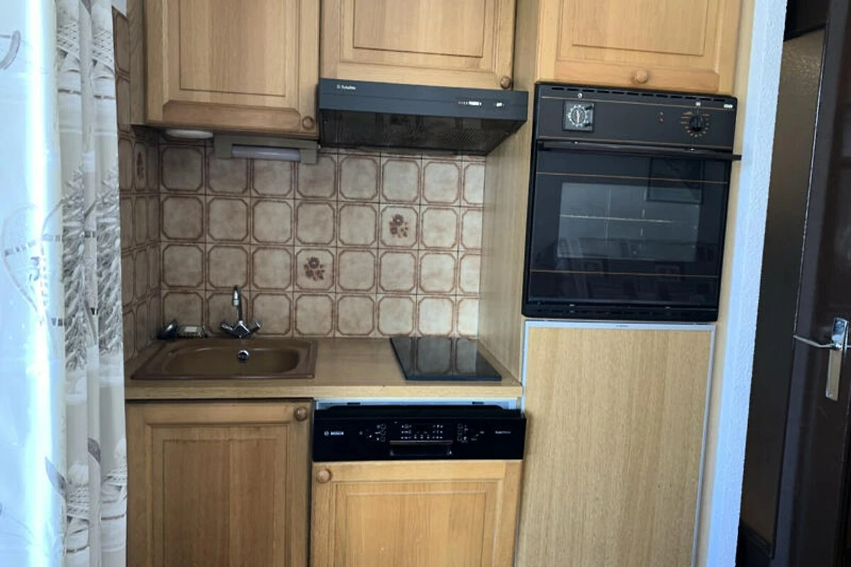 Im Herzen des malerischen Dorfes Les Carroz bietet dieses charmante Studio-Apartment einen gemütlichen Rückzugsort in den Alpen mit modernem Komfort. Perfekt gelegen im ersten Stock einer exklusiven Residenz mit Aufzug, vereint diese Unterkunft Komfort mit einer warmen, einladenden Atmosphäre. Ob Sie einen Skiurlaub im Winter oder eine Auszeit in den Bergen im Sommer planen, dieses Studio ist der ideale Ausgangspunkt für Ihre Abenteuer. Das ca. 28 m² große Studio ist durchdacht gestaltet und bietet Platz für bis zu vier Gäste. Eine separate Schlafnische mit Etagenbetten sorgt für Privatsphäre, während der Wohnbereich mit einem bequemen Schlafsofa und einem Fernseher für entspannte Abende ausgestattet ist. Die Küchenzeile ist komplett ausgestattet mit Backofen, Induktionskochfeld, Geschirrspüler und wichtigen Geräten wie Kaffeemaschine und Wasserkocher, sodass Sie sich nach einem erlebnisreichen Tag problemlos Mahlzeiten zubereiten können. Ein nach Westen ausgerichteter Balkon bietet einen atemberaubenden Blick auf die umliegenden Berge und lädt zum Entspannen bei einer Tasse Kaffee oder einem Glas Wein im Sonnenuntergang ein.