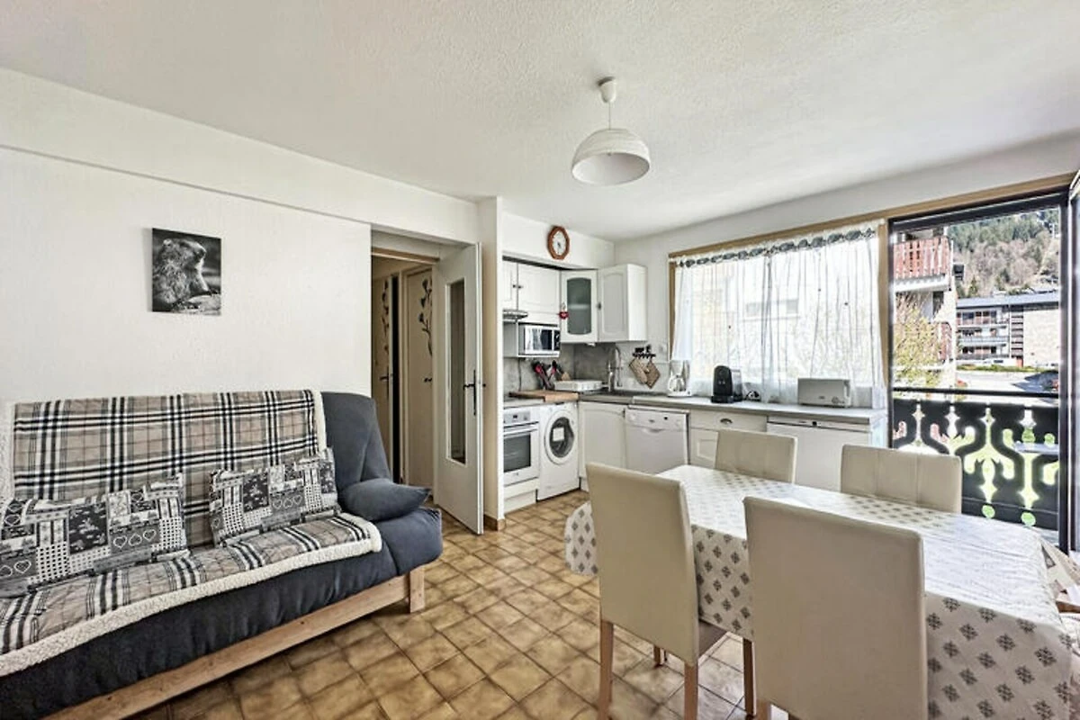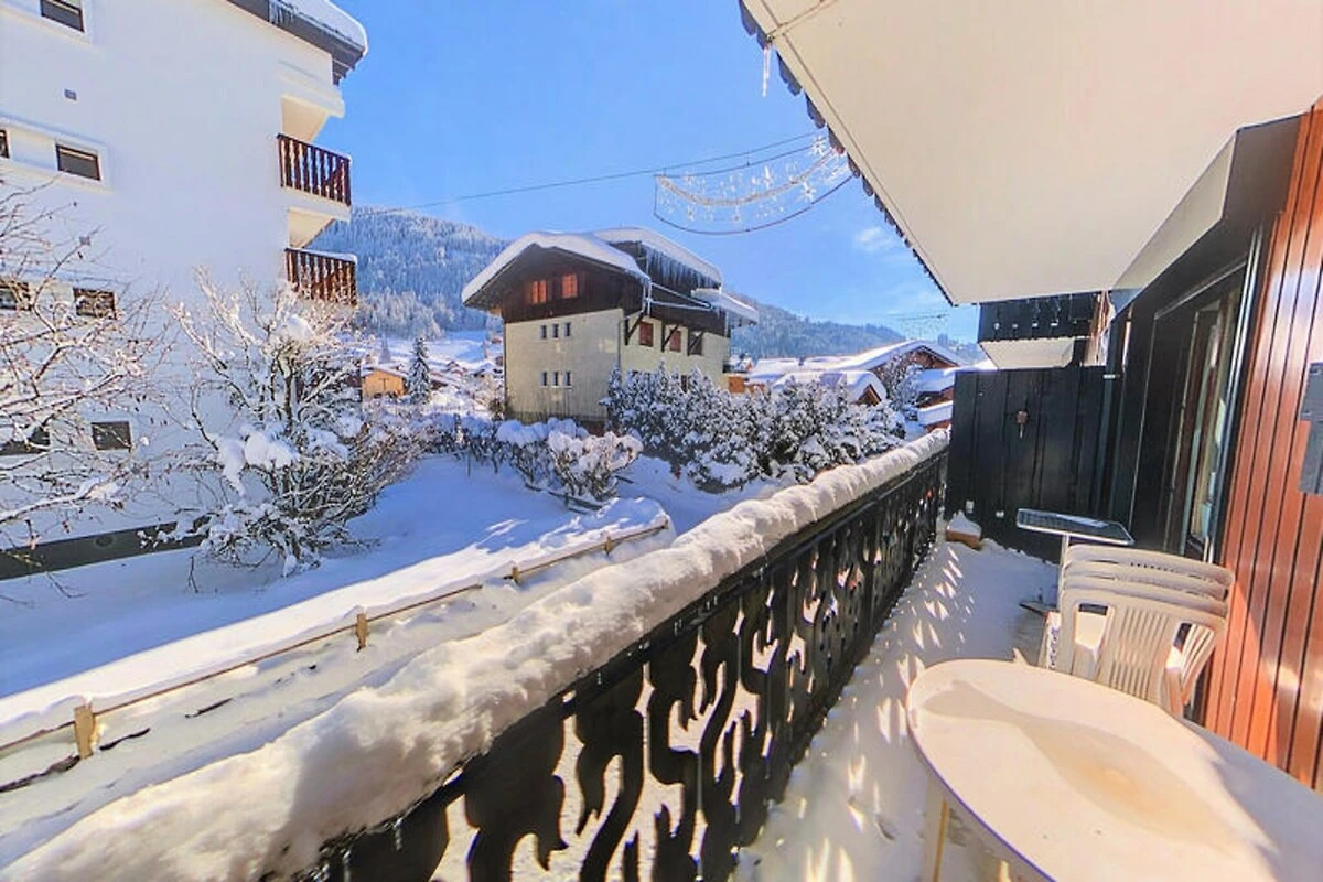Mitten im malerischen Dorf Les Campanules bietet dieses charmante Studio-Apartment einen gemütlichen Rückzugsort für bis zu vier Gäste. Es befindet sich im ersten Stock eines Hauses mit Aufzug und vereint Komfort und Bequemlichkeit mit alpinem Flair. Stellen Sie sich vor, wie Sie von Ihrem nach Osten ausgerichteten Balkon aus mit Blick auf die Skipisten erwachen und bereit sind für einen Tag voller Abenteuer oder Entspannung in dieser idyllischen Bergkulisse. Nur 100 Meter vom Dorfplatz entfernt, genießen Sie hier die perfekte Lage, um sowohl die lebhafte Atmosphäre des Ortes als auch die Ruhe Ihrer eigenen vier Wände zu erleben. Das 29 m² große Studio ist durchdacht gestaltet und verfügt über zwei separate Schlafbereiche: eine Schlafnische mit Etagenbetten und ein Wohnzimmer mit einem bequemen Doppelschlafsofa. Die Küchenzeile ist komplett ausgestattet mit modernen Geräten wie Backofen, Mikrowelle, Induktionskochfeld, Kühlschrank, Geschirrspüler sowie Filterkaffeemaschine und Nespresso-Maschine – ideal für die Zubereitung eines herzhaften Frühstücks oder eines gemütlichen Abendessens nach einem Tag auf der Piste. Ein Badezimmer und ein separates WC erhöhen die Praktikabilität der Unterkunft und sorgen für einen reibungslosen Aufenthalt für Familien oder kleine Gruppen. \n\nTreten Sie hinaus und genießen Sie den Komfort, alles Notwendige in unmittelbarer Nähe zu haben. Im Erdgeschoss der Unterkunft finden Sie eine Bäckerei, ein Käsegeschäft mit regionalen Savoyer Spezialitäten, einen Skiverleih und ein charmantes Restaurant. Ob Sie sich frisches Gebäck zum Frühstück holen oder ein traditionelles Alpenessen genießen möchten – der Charme des Dorfes liegt Ihnen zu Füßen. \n\nDank seiner erstklassigen Lage, des warmen Ambientes und der guten Erreichbarkeit von Annehmlichkeiten und Outdoor-Aktivitäten ist dieses Studio-Apartment der perfekte Ausgangspunkt für unvergessliche Erlebnisse in den französischen Alpen. Ob Sie zum Skifahren, Wandern oder einfach nur zum Genießen der Bergluft hier sind – Les Campanules heißt Sie herzlich willkommen, die Magie des alpinen Lebens zu erleben.
