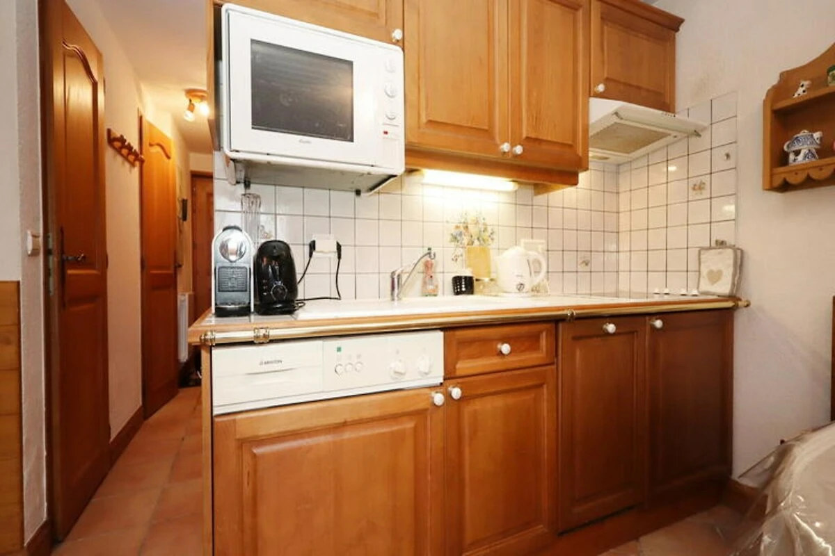 Stellen Sie sich vor, Sie wachen jeden Morgen mit einem atemberaubenden Blick auf die Fiz-Bergkette und den ikonischen Mont Blanc auf – ein Ort wie aus dem Bilderbuch. Dieses charmante 2-Zimmer-Ferienhaus in Les Houches bietet die perfekte Auszeit in den Alpen für Familien oder Freunde und vereint Komfort, Bequemlichkeit und eine traumhafte Naturkulisse. Nur 300 Meter von der Prarion-Seilbahn und 1,9 Kilometer vom Ortskern von Les Houches entfernt, erreichen Sie von hier aus bequem sowohl aufregende Outdoor-Aktivitäten als auch den malerischen Charme des Dorfes. Treten Sie ein in dieses 32 m² große Refugium und entdecken Sie einen durchdacht gestalteten Raum für bis zu sechs Gäste. Das Wohnzimmer lädt mit seinem gemütlichen Schlafsofa, dem Fernseher und dem Essbereich zum Entspannen ein und öffnet sich zu einem Balkon mit Panoramablick. Die voll ausgestattete Küche mit Herd, Backofen, Geschirrspüler, Waschmaschine und Kühlschrank macht die Zubereitung von Mahlzeiten zum Kinderspiel. Das Hauptschlafzimmer verfügt über ein komfortables Doppelbett und viel Stauraum, während das zweite Schlafzimmer mit Etagenbett ideal für Kinder oder weitere Gäste ist. Ein modernes Badezimmer mit Dusche und separatem WC sorgt für zusätzlichen Komfort. Nach einem Tag auf der Piste oder auf den Wanderwegen können Sie im hauseigenen Innenpool entspannen, der täglich von 9:00 bis 21:00 Uhr geöffnet ist. Zur Unterkunft gehören außerdem ein Skiraum und ein gemeinsamer Parkplatz im Freien, sodass Sie einen unbeschwerten Aufenthalt genießen können. Für zusätzlichen Komfort stehen Ihnen optionale Services wie WLAN, Bettwäscheverleih und Kinderbetreuung zur Verfügung. Haustiere sind willkommen – ein echtes Zuhause fernab von Zuhause für die ganze Familie.