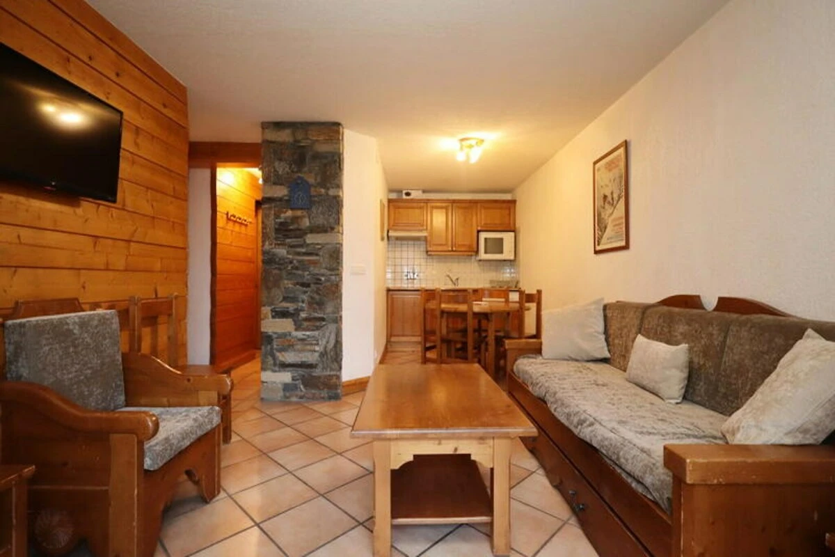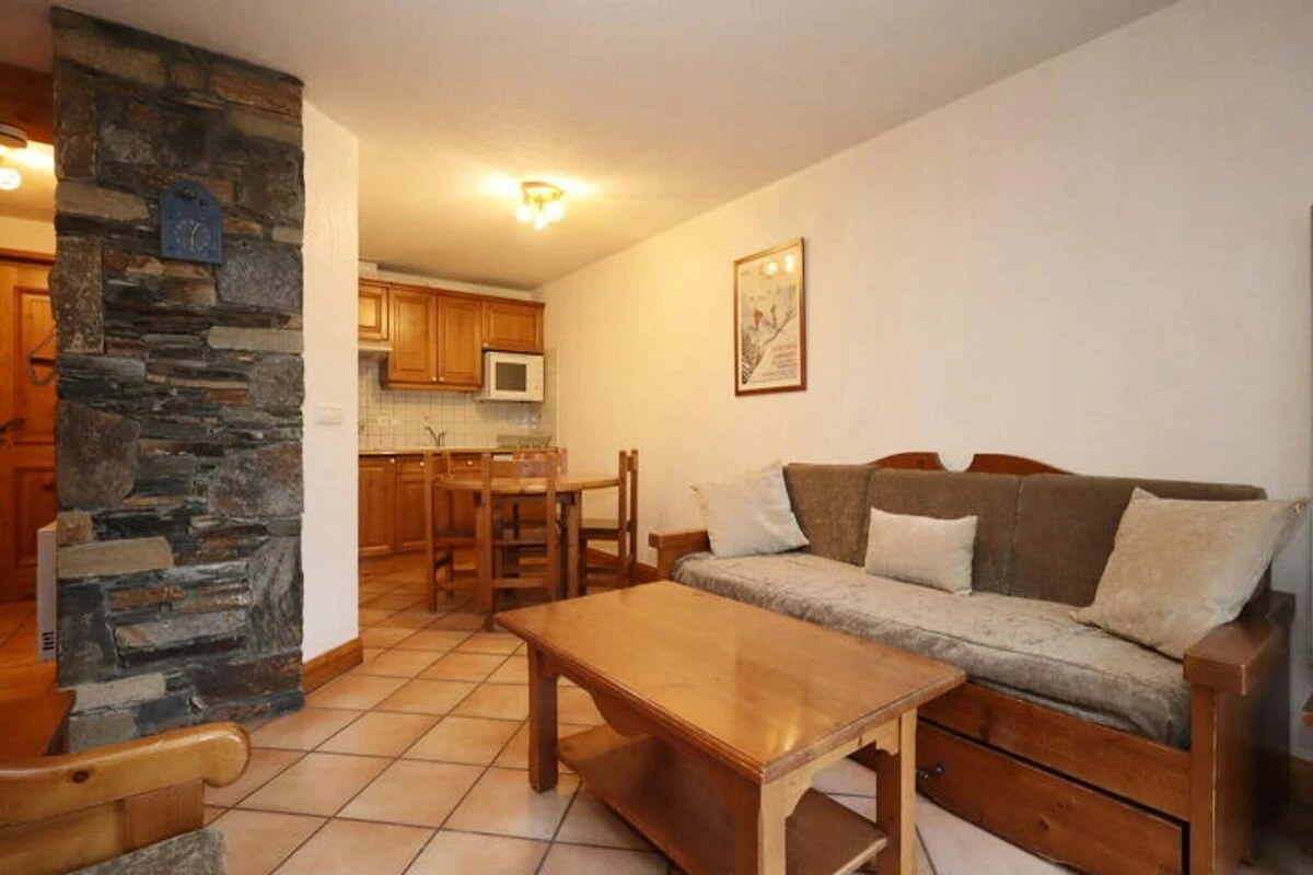 Das 38 m² große Apartment bietet bequem Platz für bis zu fünf Gäste. Das Wohnzimmer verfügt über ein Schlafsofa mit ausziehbarem Einzelbett, einen Fernseher und einen Essbereich für gemeinsame Mahlzeiten. Die voll ausgestattete Küche mit Geschirrspüler, Backofen, Cerankochfeld und Kühlschrank ermöglicht Ihnen die einfache Zubereitung leckerer Mahlzeiten nach einem Tag auf der Piste. Die Schlafgelegenheiten umfassen ein gemütliches Schlafzimmer mit Doppelbett, eine Schlafnische mit zwei Einzelbetten und ein modernes Duschbad mit separatem WC. Zusätzliche Annehmlichkeiten wie ein Skiraum, ein sicherer Parkplatz und die Nutzung des hauseigenen Hallenbads sorgen für einen komfortablen und angenehmen Aufenthalt.