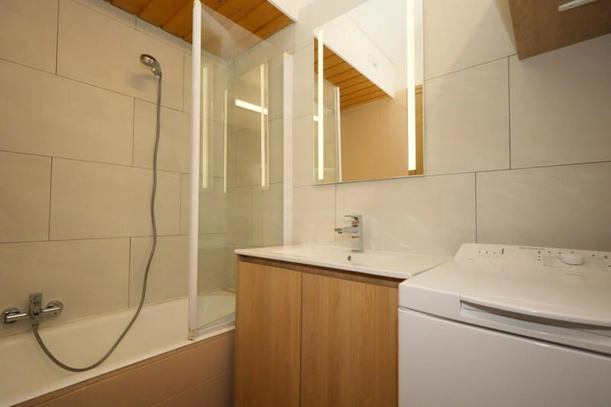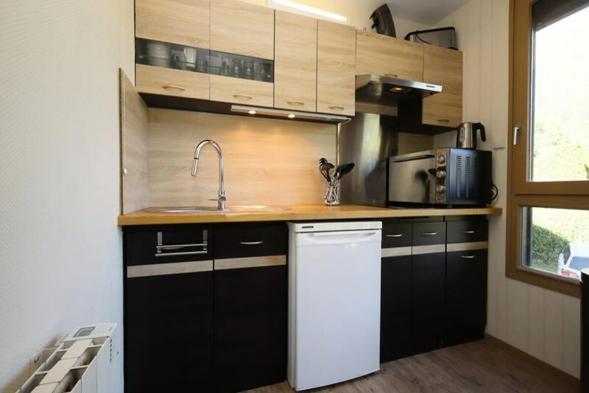 Das 36 m² große Studio ist durchdacht gestaltet und bietet Platz für bis zu vier Gäste. Im Wohnzimmer befindet sich ein bequemes Schlafsofa, während der Schlafbereich mit einem Doppelbett für erholsame Nächte sorgt. Die Küchenzeile ist mit modernen Geräten wie Induktionskochfeld, Backofen, Mikrowelle und Kühlschrank ausgestattet und ermöglicht Ihnen die einfache Zubereitung von Mahlzeiten nach einem erlebnisreichen Tag. Zusätzliche Annehmlichkeiten wie WLAN, eine Waschmaschine und eine abschließbare Garage sorgen für Komfort während Ihres gesamten Aufenthalts. Nur 1,6 Kilometer vom Apartment entfernt liegt das Ortszentrum von Les Houches mit einer Vielzahl an Restaurants, Bars, Skigeschäften und einem Carrefour Contact für alle wichtigen Dinge. Ob Skifahren im Winter oder Wandern im Sommer – die nahegelegenen Wege und Einrichtungen bieten unzählige Möglichkeiten, die Natur zu genießen. Für Familien stehen Babyausstattung und Bettwäsche zur Verfügung, sodass Sie Ihren Aufenthalt unbeschwert genießen können.