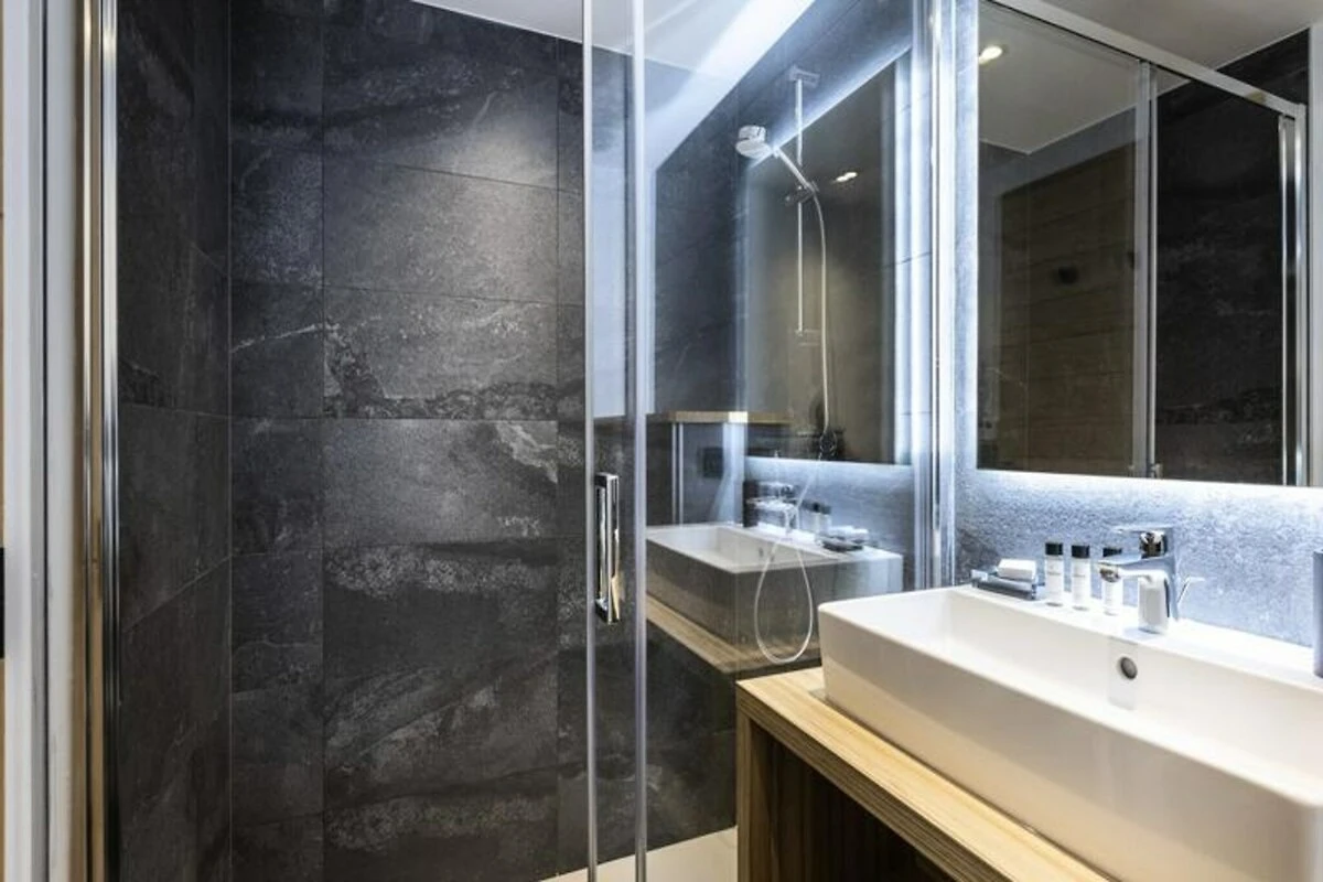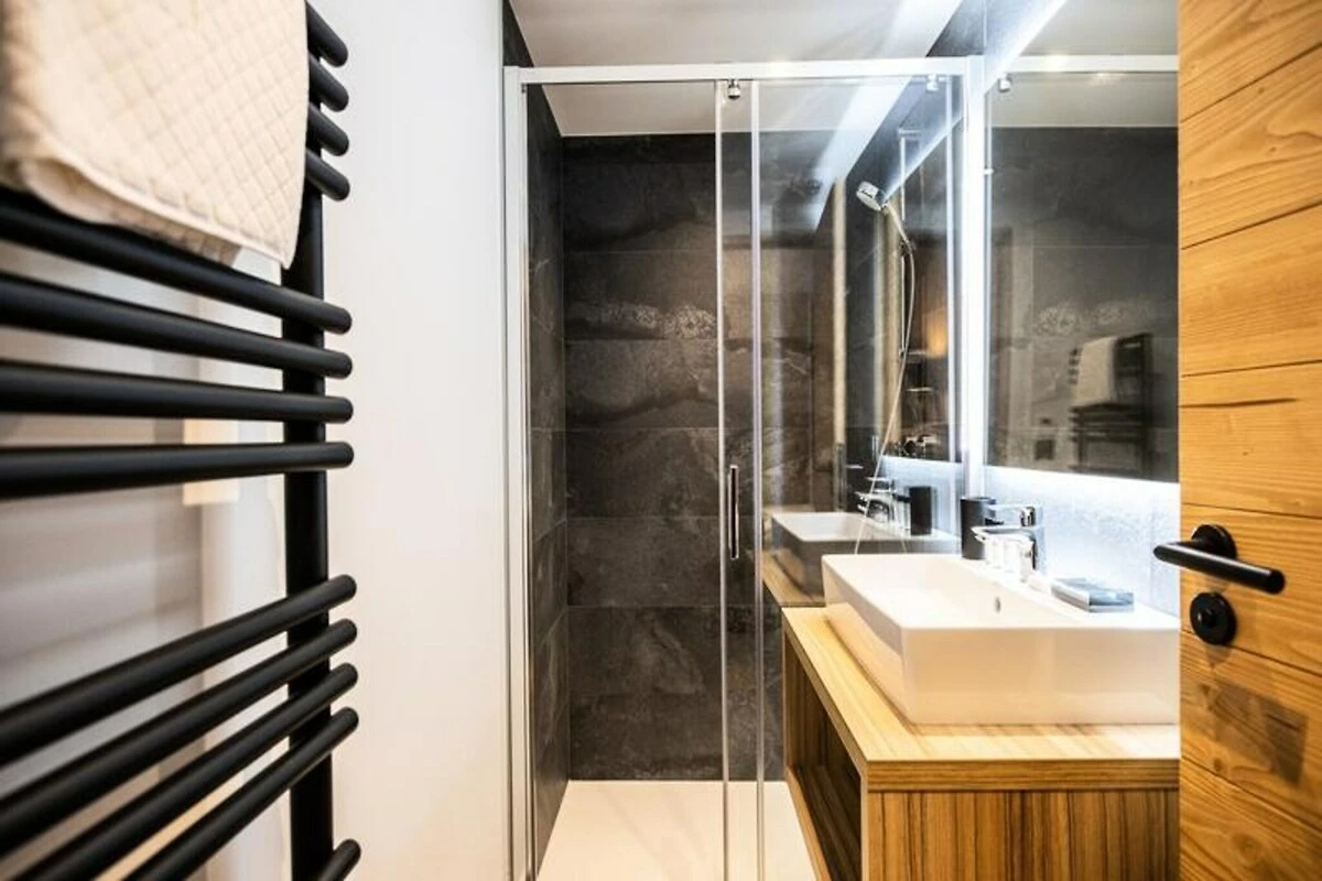 Die Residenz besticht durch geräumige und elegant gestaltete Apartments, die modernen Komfort mit alpinem Charme verbinden. Jede Wohneinheit ist lichtdurchflutet und verfügt über eine voll ausgestattete Küche, ein gemütliches Wohnzimmer mit Schlafsofa und vier einladende Schlafzimmer – zwei mit Doppelbetten und zwei mit Einzelbetten. Mit einem Badezimmer, zwei Duschbädern und zwei WCs bietet die Aufteilung Komfort und Privatsphäre für Familien oder Gruppen. Treten Sie auf Ihren privaten Balkon, um die frische Bergluft zu genießen und die majestätische Aussicht auf das Tal zu bewundern. Zu den weiteren Annehmlichkeiten gehören WLAN, ein Baby-Set auf Anfrage und überdachte Parkplätze, die einen reibungslosen und komfortablen Aufenthalt garantieren.