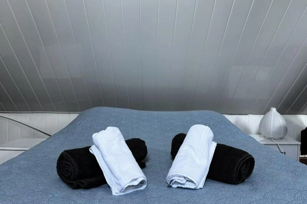 Das Duplex bietet Platz für bis zu vier Gäste und verfügt über zwei geräumige Schlafzimmer, die nach einem Tag am Meer einen gemütlichen Rückzugsort bieten. Das Schlafzimmer im Erdgeschoss ist mit einem 140 cm breiten Bett ausgestattet, das im Obergeschoss mit einem 160 cm breiten Bett – ideal für zwei Paare oder eine kleine Familie. Das helle Wohnzimmer mit angrenzender, voll ausgestatteter Küche bietet den perfekten Raum zum Kochen, Essen oder einfach nur zum Entspannen mit Ihren Lieben. Stellen Sie sich Abende vor, an denen Sie gemeinsam essen, Karten spielen oder einen Aperitif genießen, während die Meeresbrise durch die Fenster weht.