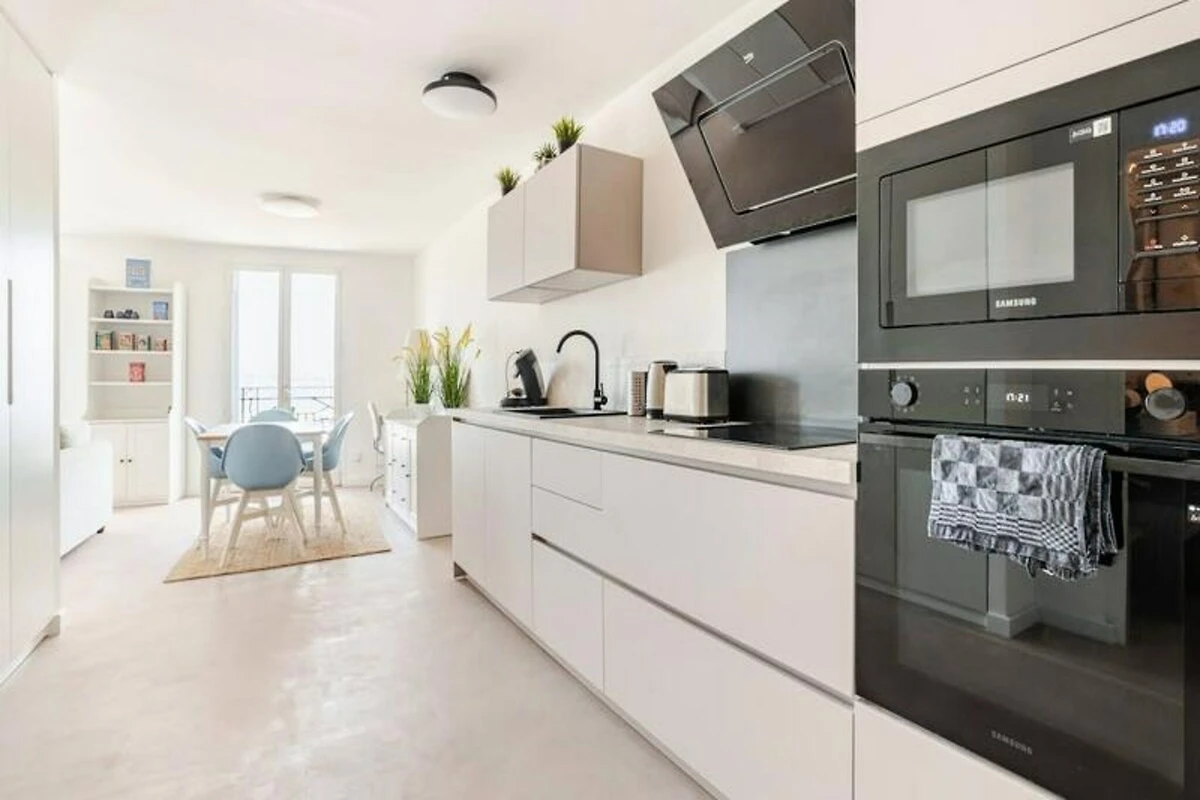 Das Innere der Wohnung ist durchdacht gestaltet und bietet Komfort und Bequemlichkeit. Der helle Wohnbereich öffnet sich zum Balkon und lädt Sie ein, Ihren Morgenkaffee mit Aussicht zu genießen. Die voll ausgestattete Küche eignet sich perfekt für die Zubereitung von Mahlzeiten mit lokalen Zutaten vom Markt unten. Das Gebäude spiegelt zwar den Charme seines Erbes wider, bitte beachten Sie jedoch, dass es keinen Aufzug gibt, was das authentische Erlebnis eines Aufenthalts in dieser malerischen Umgebung noch verstärkt. Eine private Garage, die nur fünf Gehminuten entfernt liegt, sorgt für stressfreies Parken in dieser fußgängerfreundlichen Gegend.