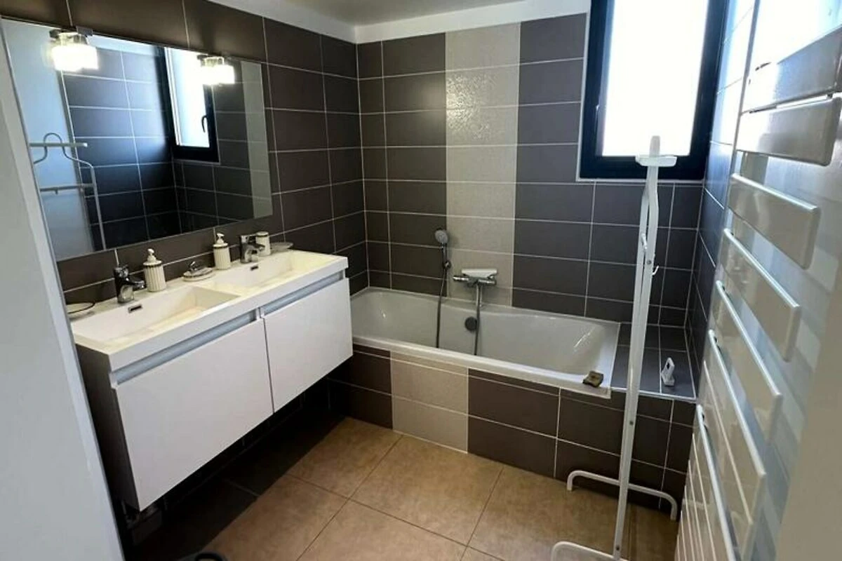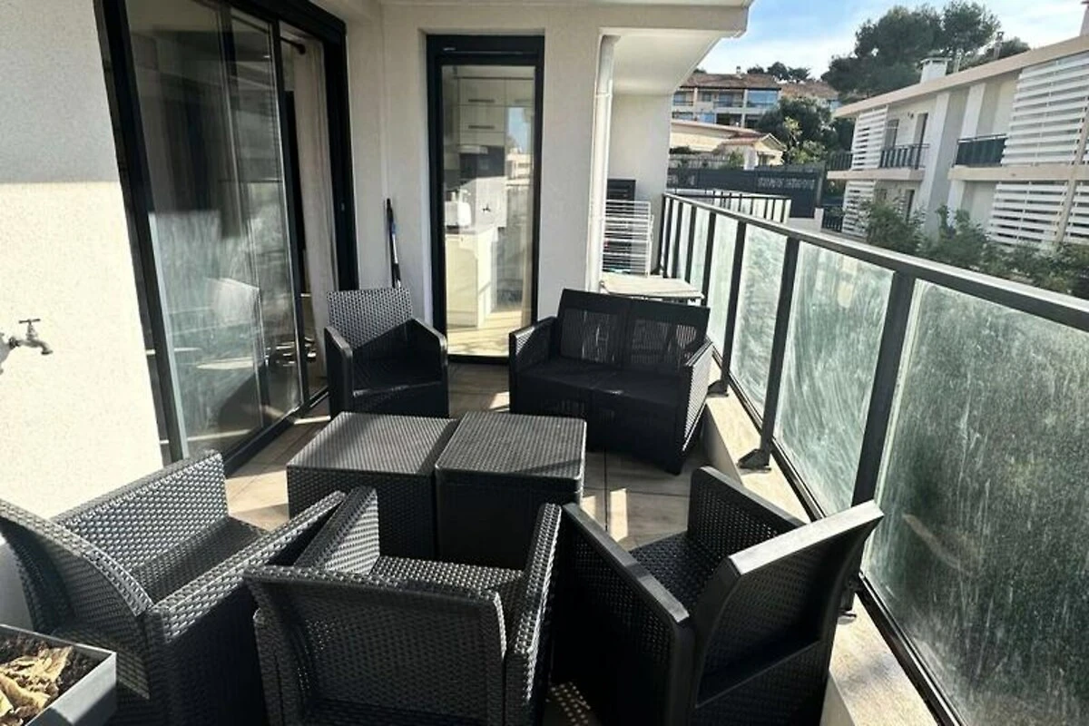 Erwecken Sie Ihre Sinne mit der sanften Meeresbrise und dem beruhigenden Rauschen der Wellen in diesem charmanten Apartment, ideal gelegen für einen erholsamen Urlaub an der Küste der Provence. Nur wenige Schritte vom Sandstrand entfernt bietet diese Unterkunft einen ruhigen Rückzugsort für alle, die Entspannung und Abenteuer am Mittelmeer suchen. Der lebhafte provenzalische Markt von Sanary, das charmante Bandol und die berühmten Calanques sind bequem zu erreichen – jeder Tag verspricht neue Entdeckungen in dieser bezaubernden Region. \n\nDas geräumige Dreizimmerapartment ist komfortabel und praktisch eingerichtet. Das Wohnzimmer mit gemütlichem Schlafsofa lädt zum Entspannen nach einem erlebnisreichen Tag ein. Eine voll ausgestattete Küche erwartet Hobbyköche, während die Master-Suite über ein eigenes Badezimmer mit Badewanne und WC für mehr Privatsphäre verfügt. Ein zweites Schlafzimmer mit Doppelbett, ein separates Badezimmer mit Badewanne und Dusche sowie ein zusätzliches WC bieten ausreichend Platz für Familien oder Gruppen. Genießen Sie ruhige Momente unter der provenzalischen Sonne auf der einladenden Terrasse und profitieren Sie von zwei Tiefgaragenstellplätzen. Außerhalb der Wohnung selbst erwarten Sie unzählige Attraktionen in der Umgebung. Schlendern Sie durch die malerischen Gassen von Sanary-sur-Mer, genießen Sie die regionalen Köstlichkeiten in den renommierten Weingütern von Bandol oder unternehmen Sie einen Ausflug zu den Inseln Embiez und Bendor. Naturliebhaber werden von den imposanten Klippen der Calanques und den unberührten Stränden von Porquerolles begeistert sein. Ob Surfen, Sonnenbaden oder einfach nur die Schönheit der Küste des Var genießen – diese Lage ist Ihr Tor zu den schönsten Seiten der Provence. Buchen Sie noch heute Ihren Aufenthalt und tauchen Sie ein in den zeitlosen Charme des Mittelmeers. Mit seiner idyllischen Lage und den durchdachten Annehmlichkeiten ist diese Wohnung Ihr perfektes Zuhause fernab von Zuhause für einen erholsamen und abwechslungsreichen Urlaub am Meer.
