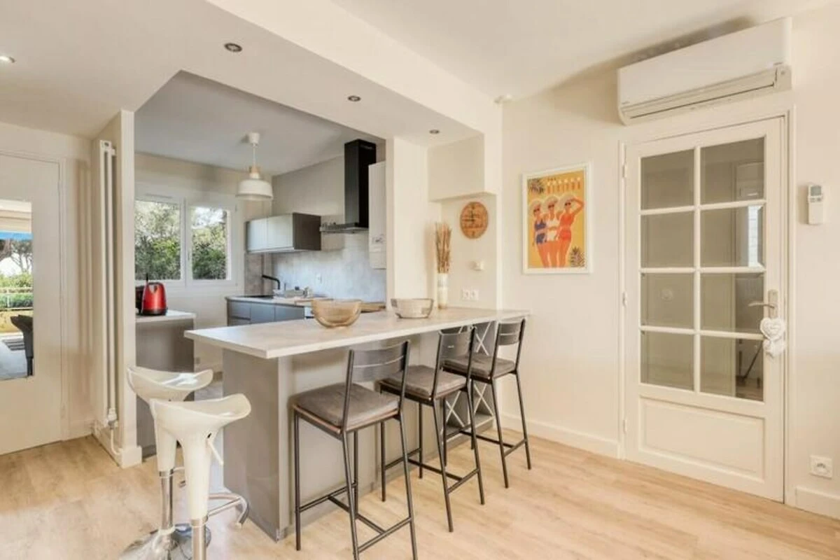 Stellen Sie sich vor, Sie wachen zum sanften Rauschen der Wellen und dem Duft der Pinien auf. Dieses kürzlich renovierte Apartment mit zwei Schlafzimmern liegt inmitten eines üppigen Waldparks und bietet Ihnen einen ruhigen Rückzugsort mit freiem Panoramablick auf das Meer. Die elegante und komfortable Eckwohnung lädt zum Entspannen und Auftanken ein, nur 500 Meter von den Sandstränden und den lebhaften Geschäften von La Favière entfernt. Ob Sie eine Auszeit in der Natur suchen oder einen Ausgangspunkt für Ihre Abenteuer am Meer – diese Unterkunft bietet alles.