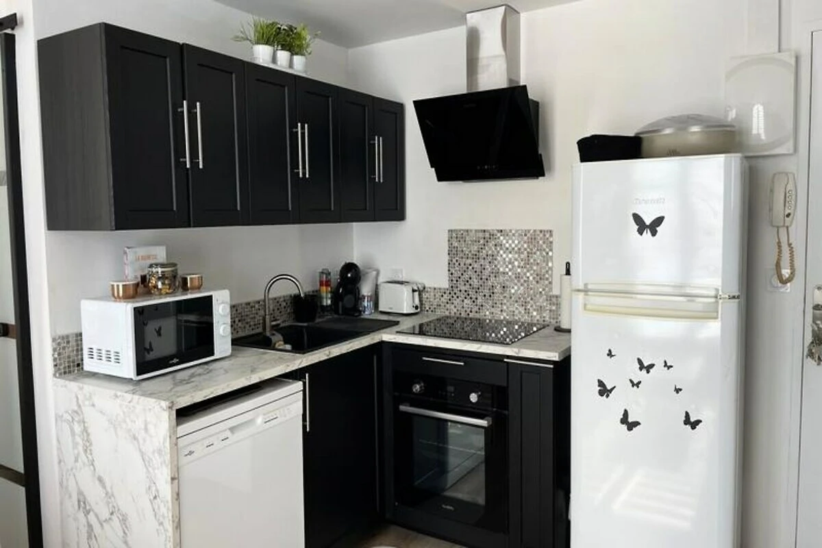 Tauchen Sie ein in eine charmante Oase im pulsierenden Hyères, wo mediterraner Flair auf modernen Komfort trifft. Dieses helle und einladende Apartment im Erdgeschoss ist der perfekte Ausgangspunkt, um die sonnenverwöhnte Küste und die historischen Gassen dieses provenzalischen Juwels zu erkunden. Stellen Sie sich vor, wie Sie Ihren Tag mit einem Kaffee auf dem gemütlichen Balkon beginnen und die warmen Sonnenstrahlen der Côte d’Azur genießen, bevor Sie die nahegelegenen Schätze entdecken. Ob romantischer Kurzurlaub oder Solo-Abenteuer – dieses Apartment verspricht einen entspannten und unvergesslichen Aufenthalt. \n\nIm Inneren erwartet Sie ein durchdacht gestalteter Raum, der Komfort und Funktionalität vereint. Der offene Wohnbereich bietet eine voll ausgestattete Küche mit Geschirrspüler, Backofen, Herd und Kühlschrank, sodass Sie Ihre Lieblingsgerichte ganz einfach zubereiten können. Der Wohnbereich mit bequemem Sofa und Fernseher lädt zum Entspannen nach einem erlebnisreichen Tag ein. Das Schlafzimmer, das nahtlos in den Wohnbereich übergeht, verfügt über ein Queensize-Bett für erholsame Nächte, und das moderne Duschbad ist mit einer Waschmaschine ausgestattet. Nur wenige Schritte vom Herzen von Hyères entfernt, genießen Sie bequemen Zugang zu öffentlichen Verkehrsmitteln, kostenlosen Parkplätzen und dem pulsierenden Stadtzentrum. Schlendern Sie über charmante Plätze, besuchen Sie lokale Märkte oder unternehmen Sie Ausflüge zu den traumhaften Stränden und Inseln, die diese Region so besonders machen. Vom goldenen Sandstrand von Almanarre bis zu den atemberaubenden Îles d'Or – die natürliche Schönheit der Gegend wird Sie verzaubern. Mit einem Concierge-Service, der Ihnen sieben Tage die Woche zur Verfügung steht, und allen Annehmlichkeiten für einen komfortablen Aufenthalt ist dieses Apartment Ihr Tor zum bezaubernden Charme von Hyères. Lassen Sie sich von der mediterranen Brise und dem provenzalischen Charme zu unvergesslichen Erinnerungen verhelfen.